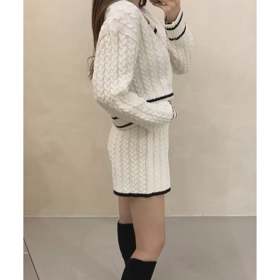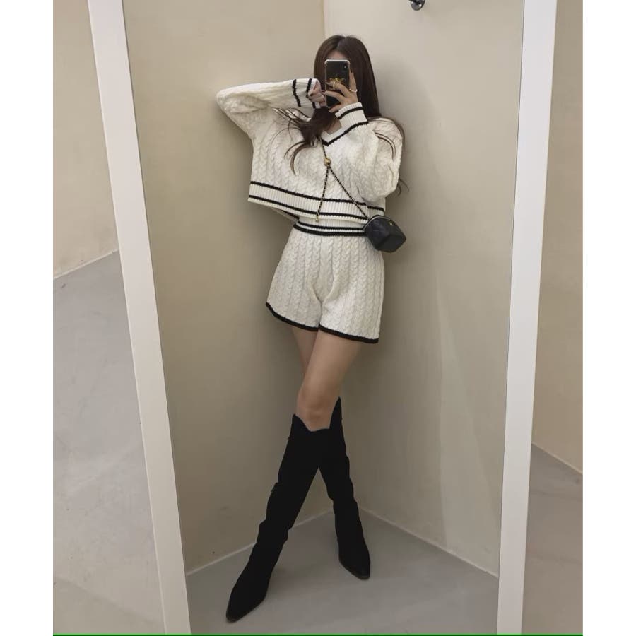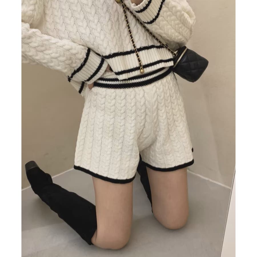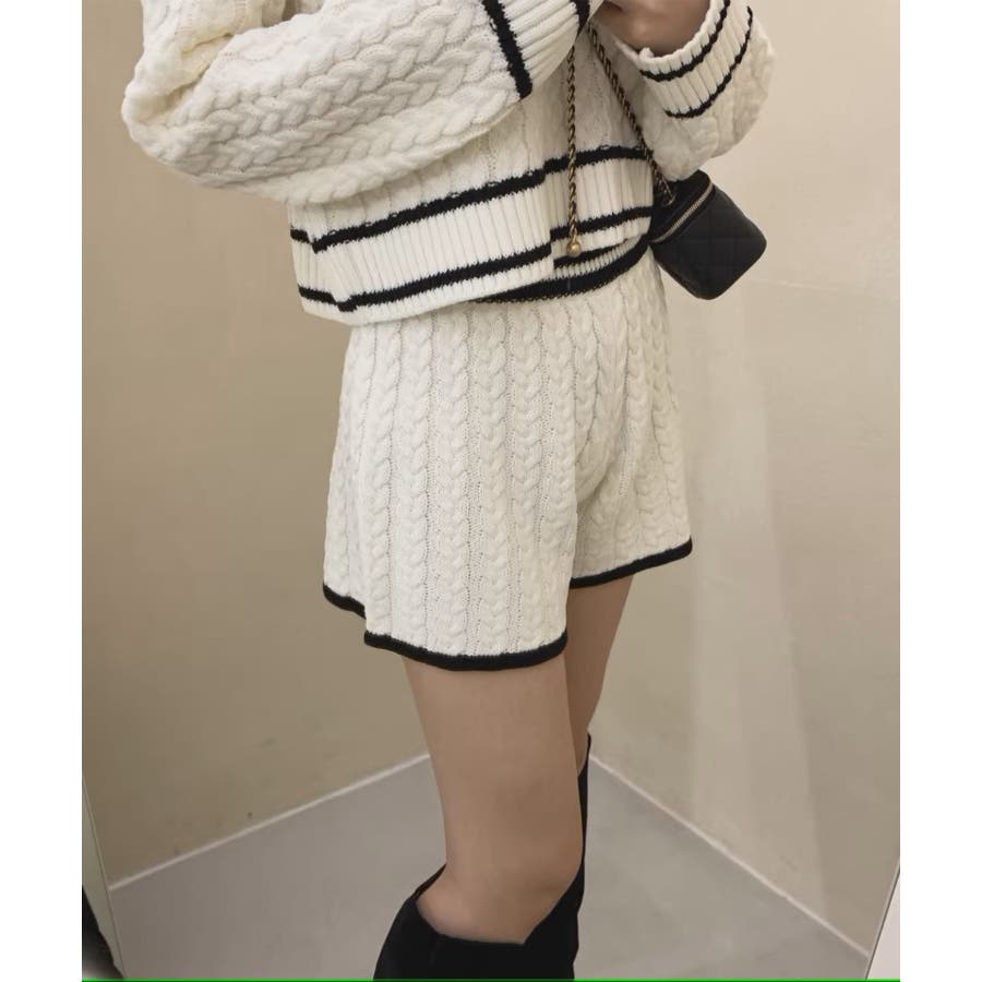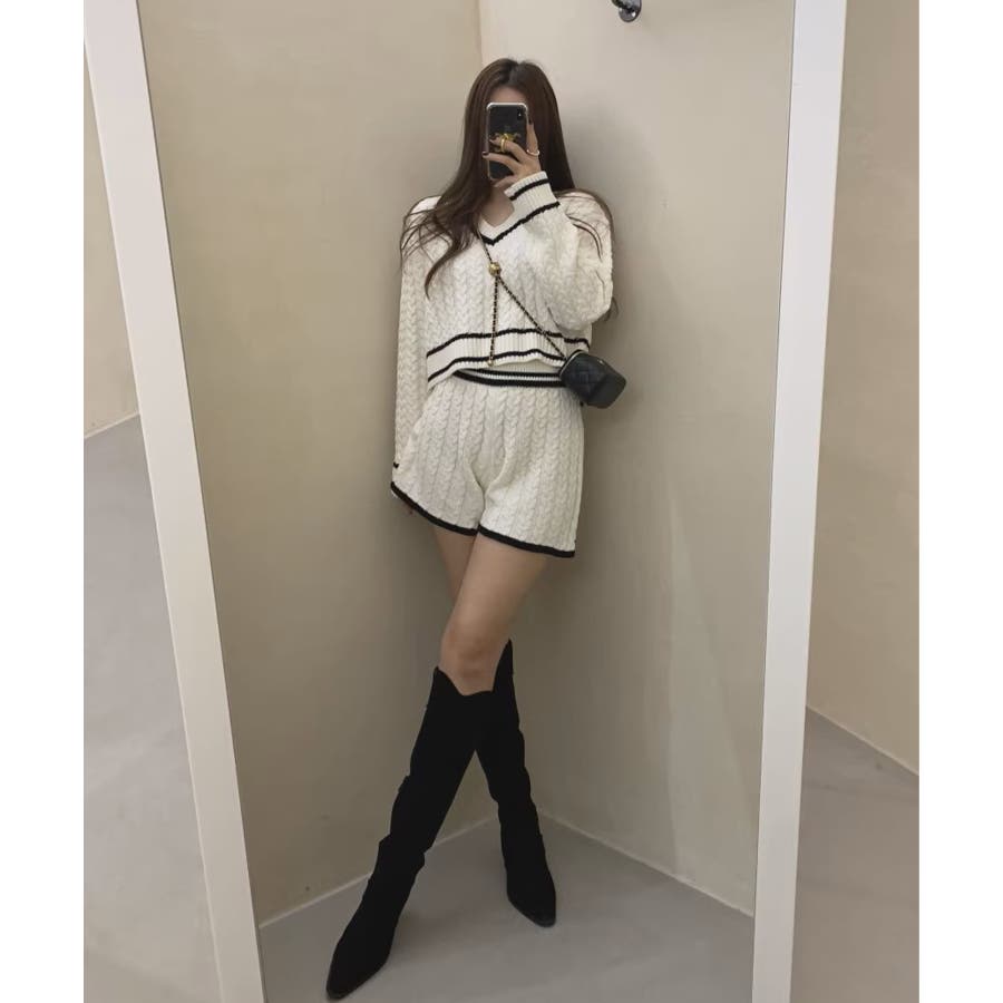 【Jasmine】セットアップ Vネックニットプルオーバー+ニットショートパンツ…