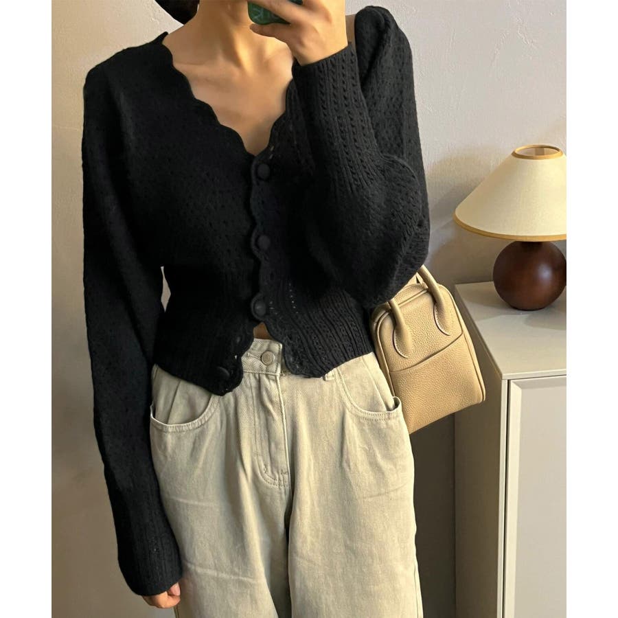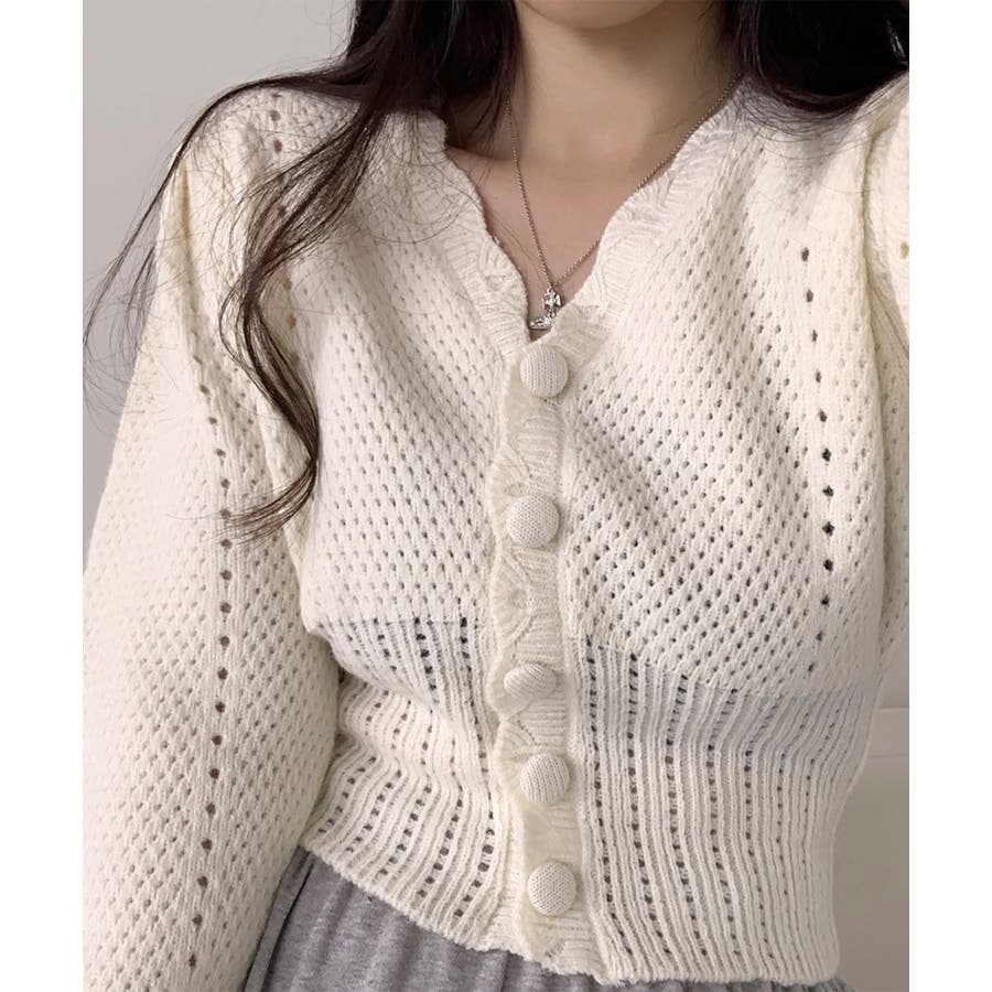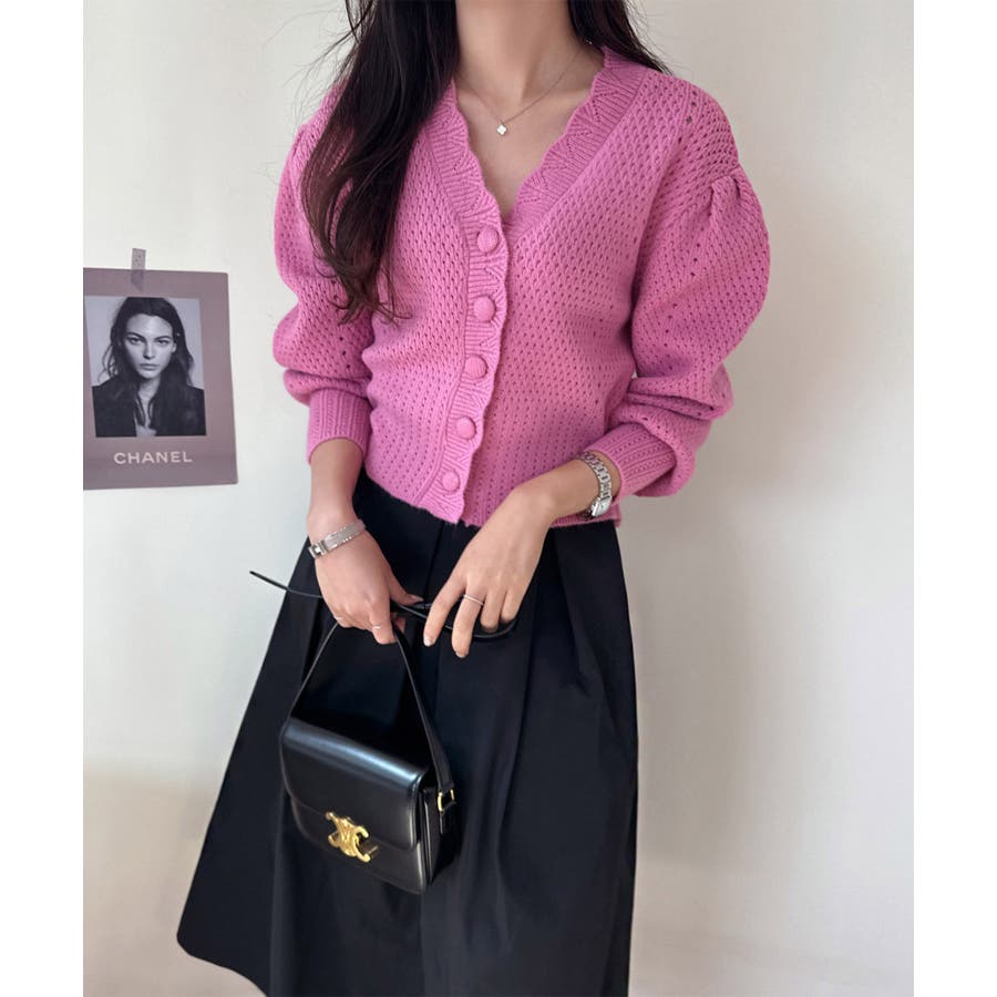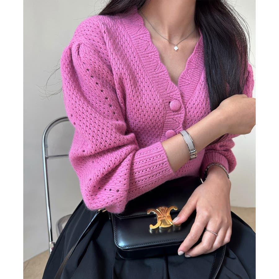 程よい透かし編みニットでトレンドライクに仕上げたカーディガン。?Point
