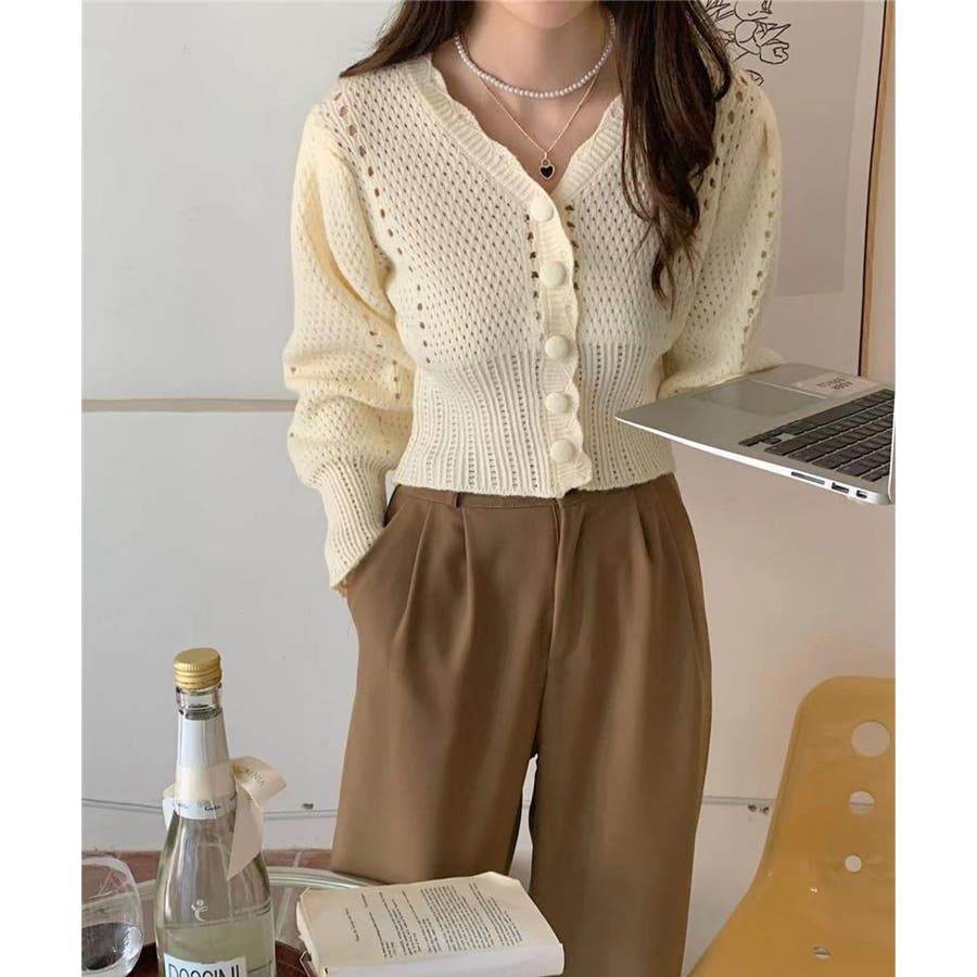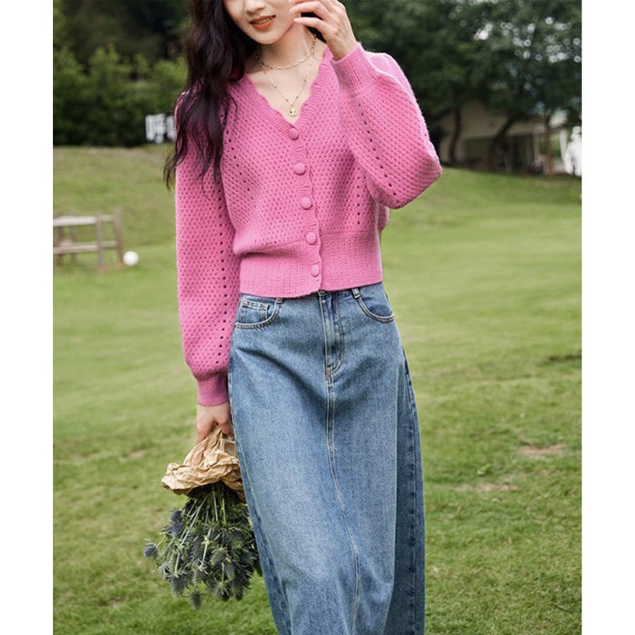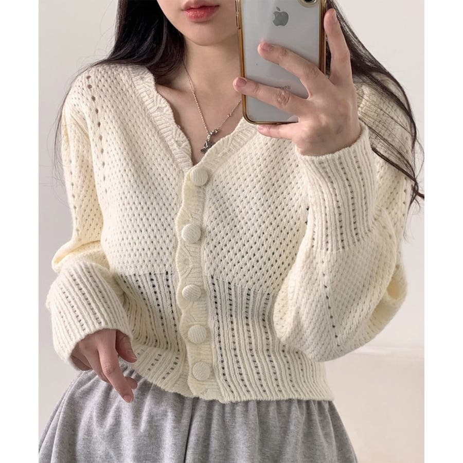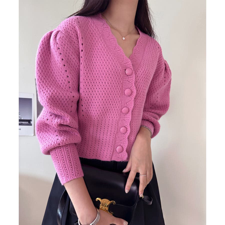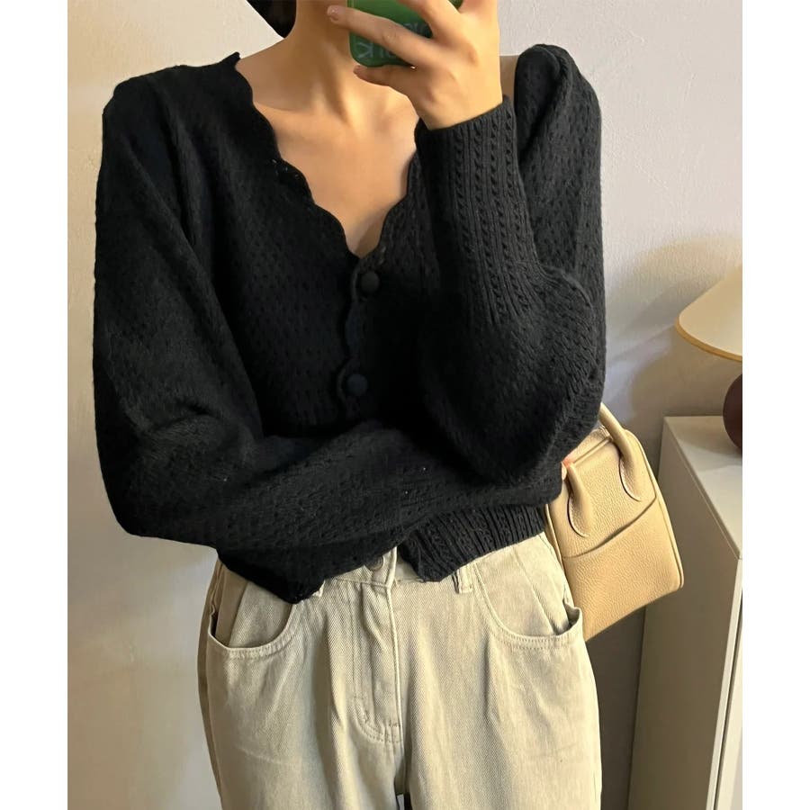 程よい透かし編みニットでトレンドライクに仕上げたカーディガン。?Point