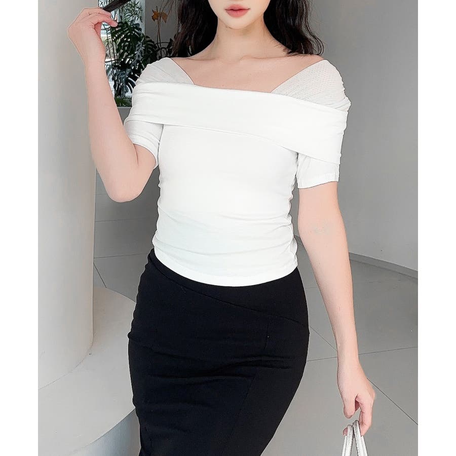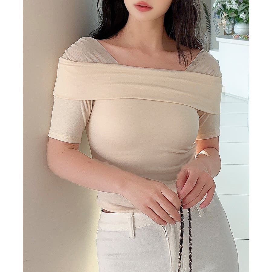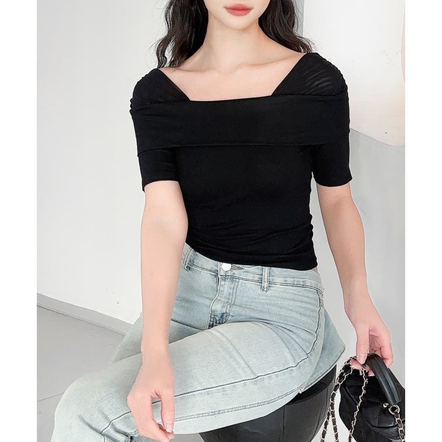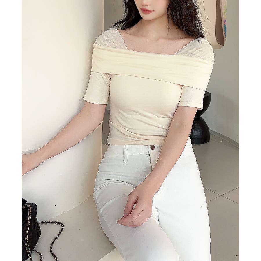 【Jasmine】メッシュ切り替えオフショルTシャツ