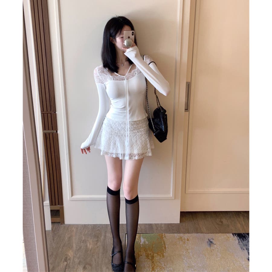 【Jasmine】レースドッキングスリムTシャツ