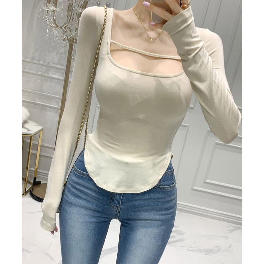 ハイウエストパンツやスカートと合わせて、シンプルでスタイリッシュなデイリースタイルに。 ジャケットやカーディガンを羽織って、オフィスカジュアルにも最適。 トレンドに左右されず、長く愛用できるシンプルな美しい一着。 日常から特別なシーンまで活躍する万能トップスです。