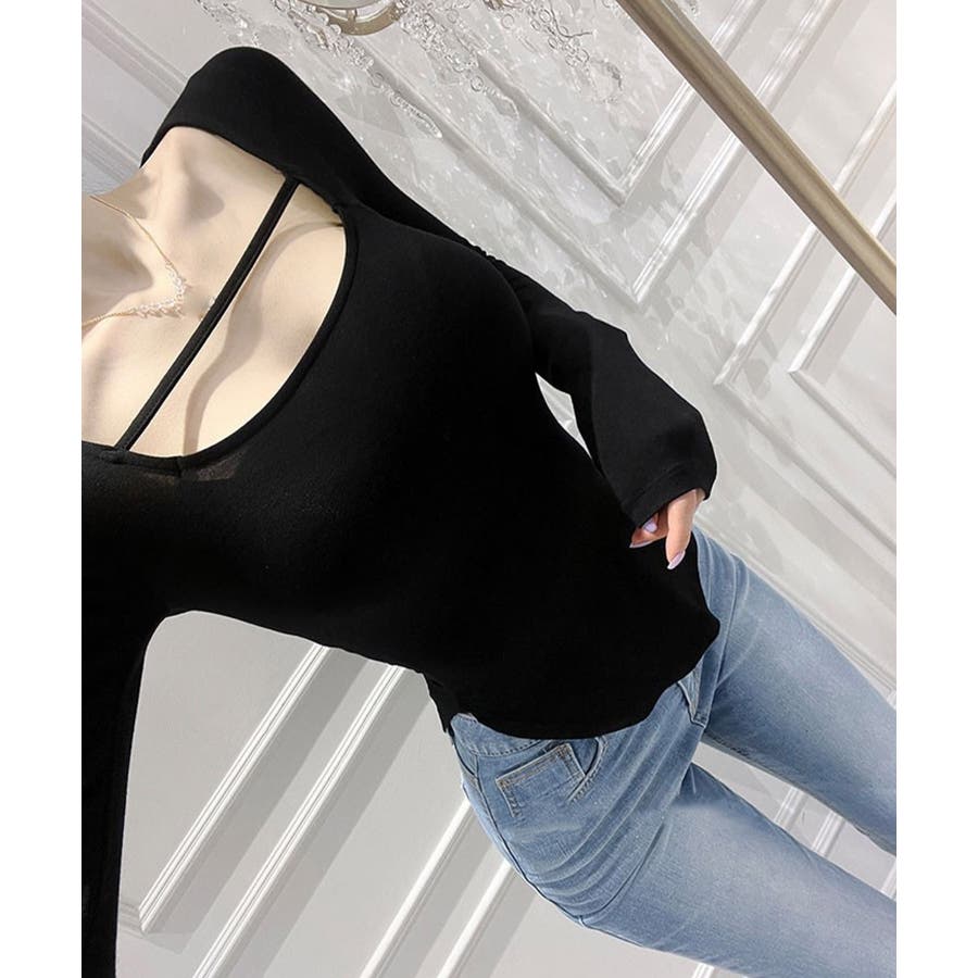 ■POINT ――――――― ・胸元ストラップ:細いストラップがデコルテをを美しく見せ、フェミニンさを引き立てる一着です。 ・フィット感のあるシルエット:ボディラインに程よくフィットし、スタイルアップ効果も◎・柔らかな素材:肌触りが良く、ソフトで着心地抜群。 ・シンプル&エレガント:どんなボトムスとも合わせやすく、カジュアルにもエレガントにも仕上がるアイテム。