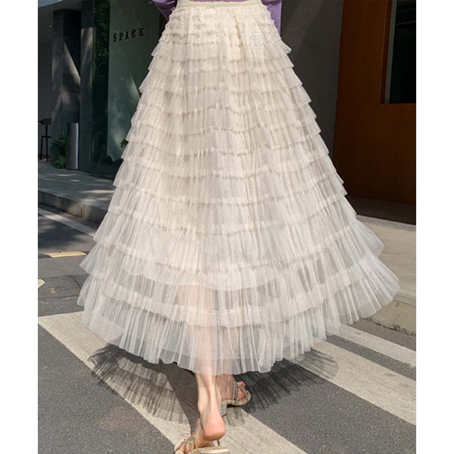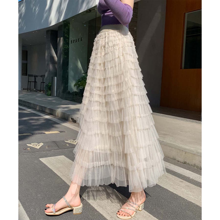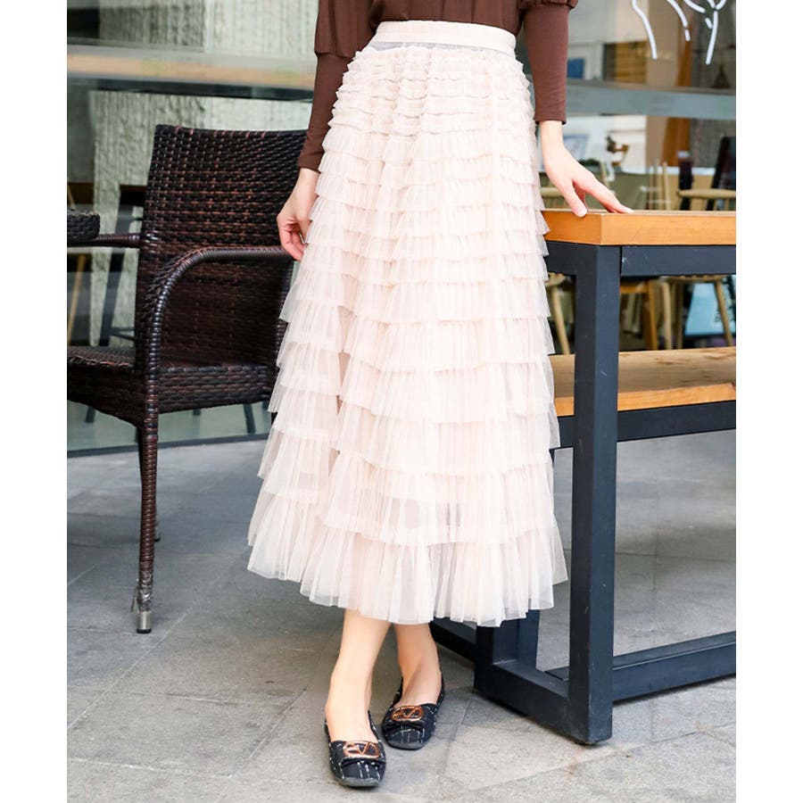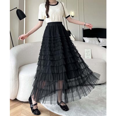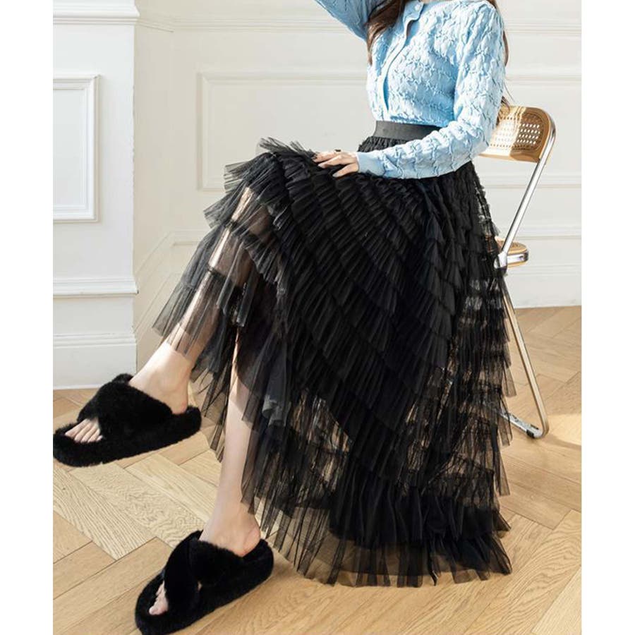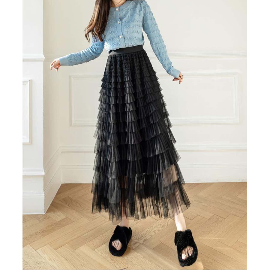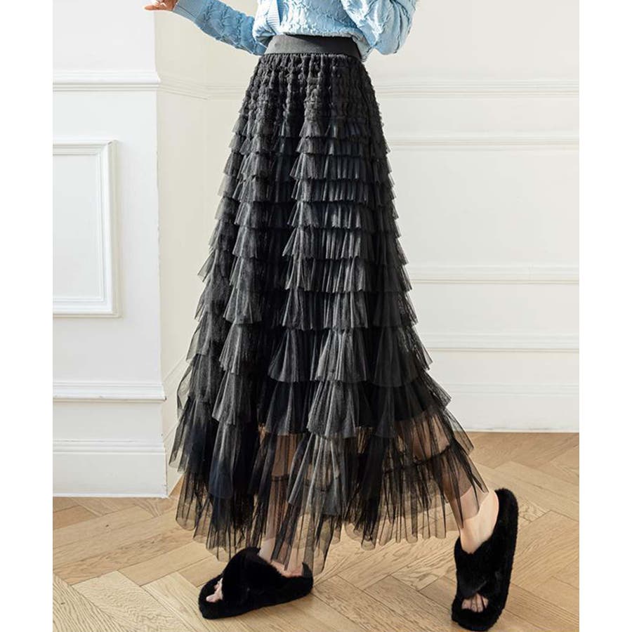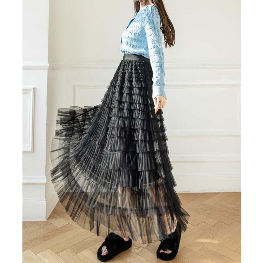 【Jasmine】フリルチュールティアードロングスカート Jasmine Gra…
