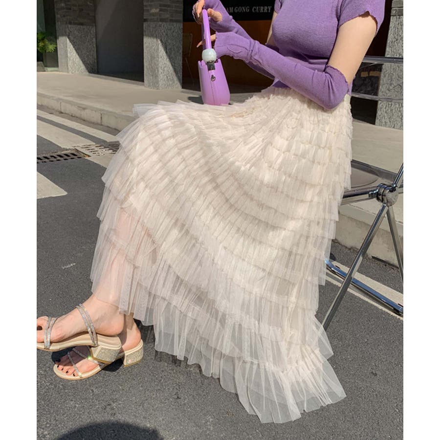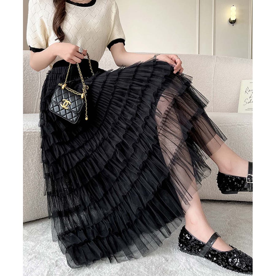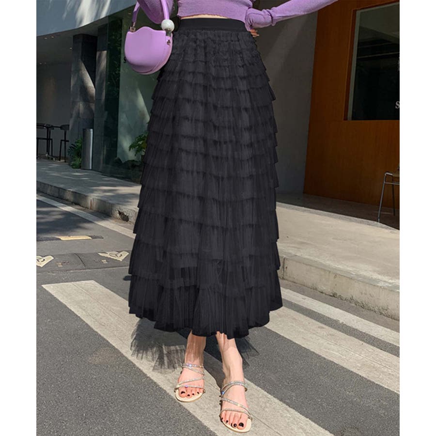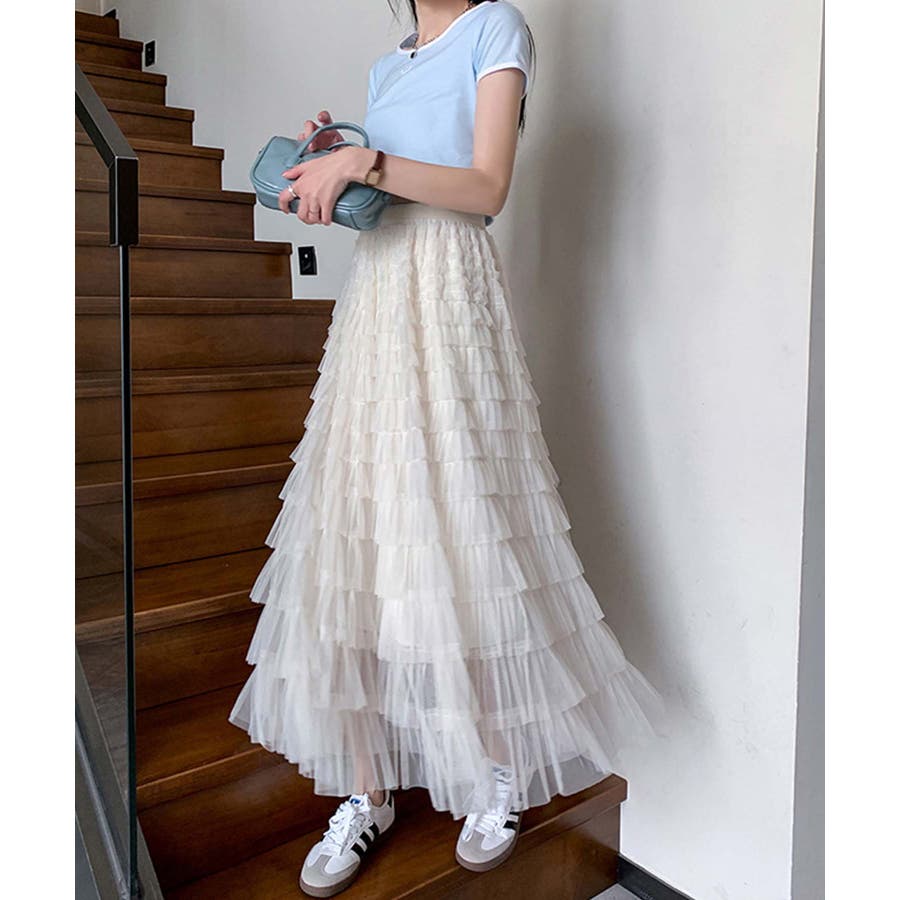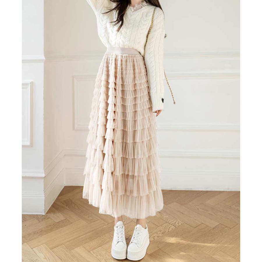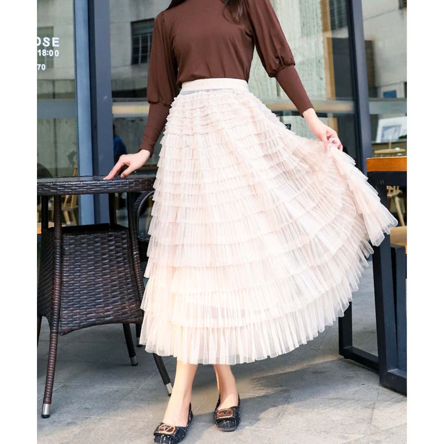 【Jasmine】フリルチュールティアードロングスカート Jasmine Gra…