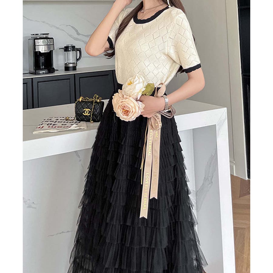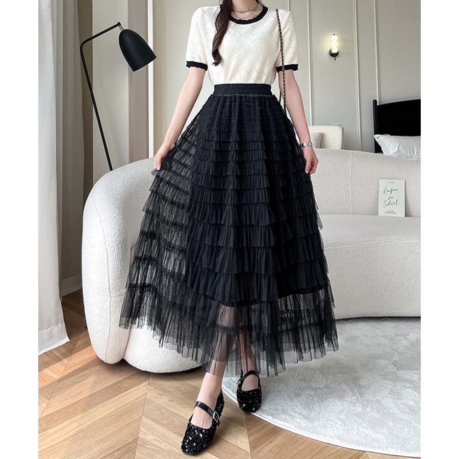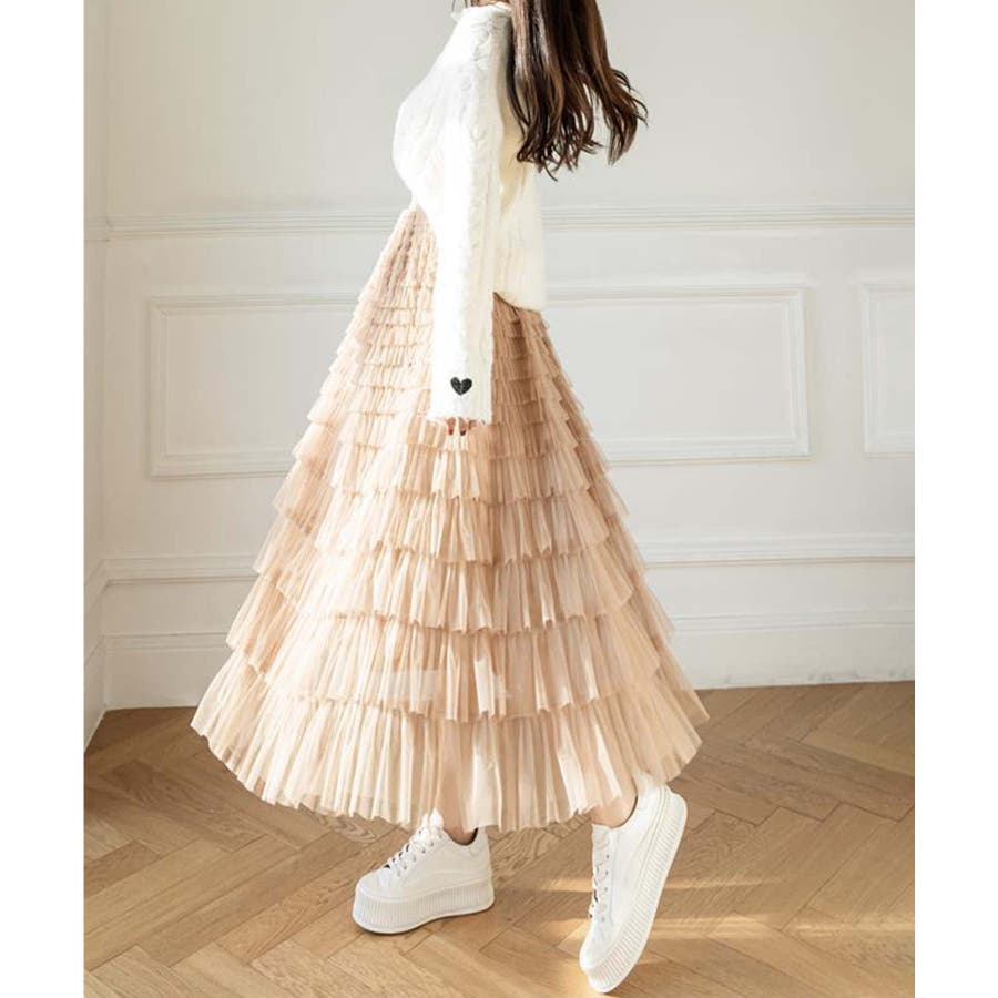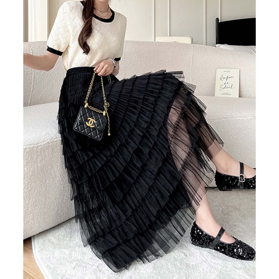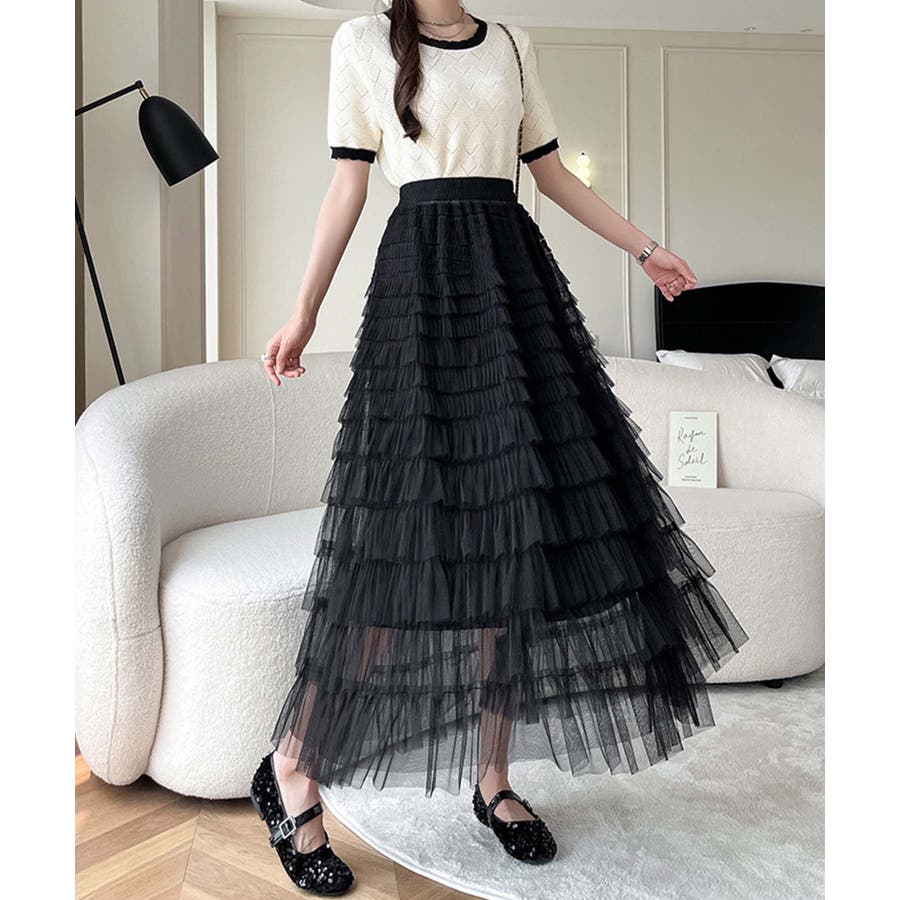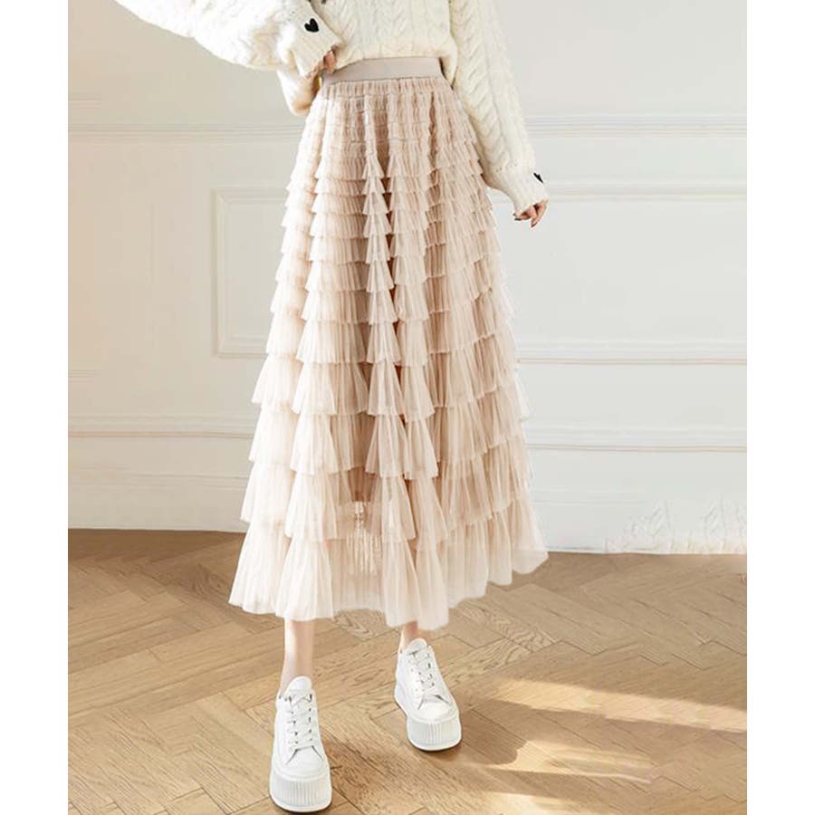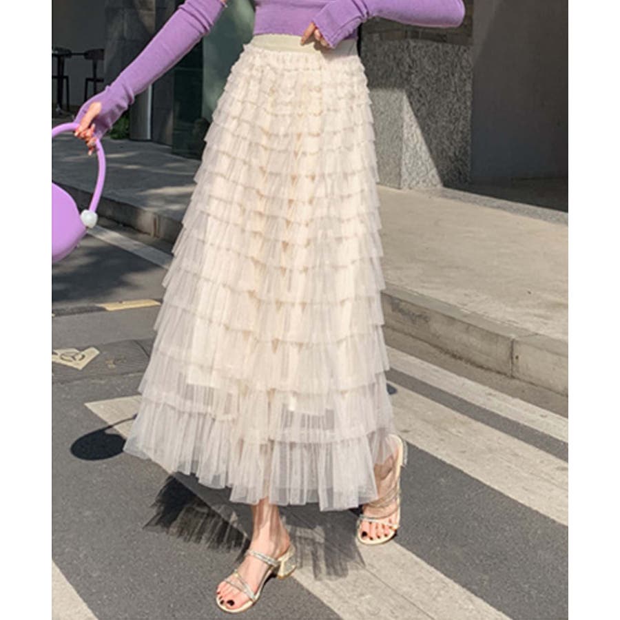 【Jasmine】フリルチュールティアードロングスカート Jasmine Gra…
