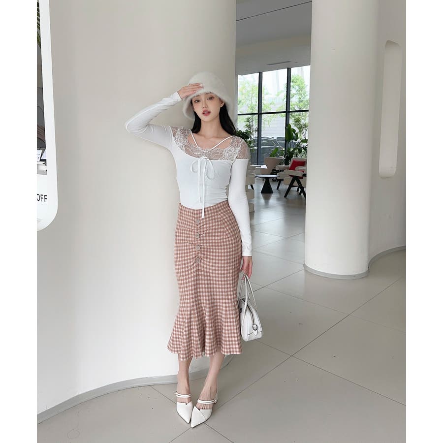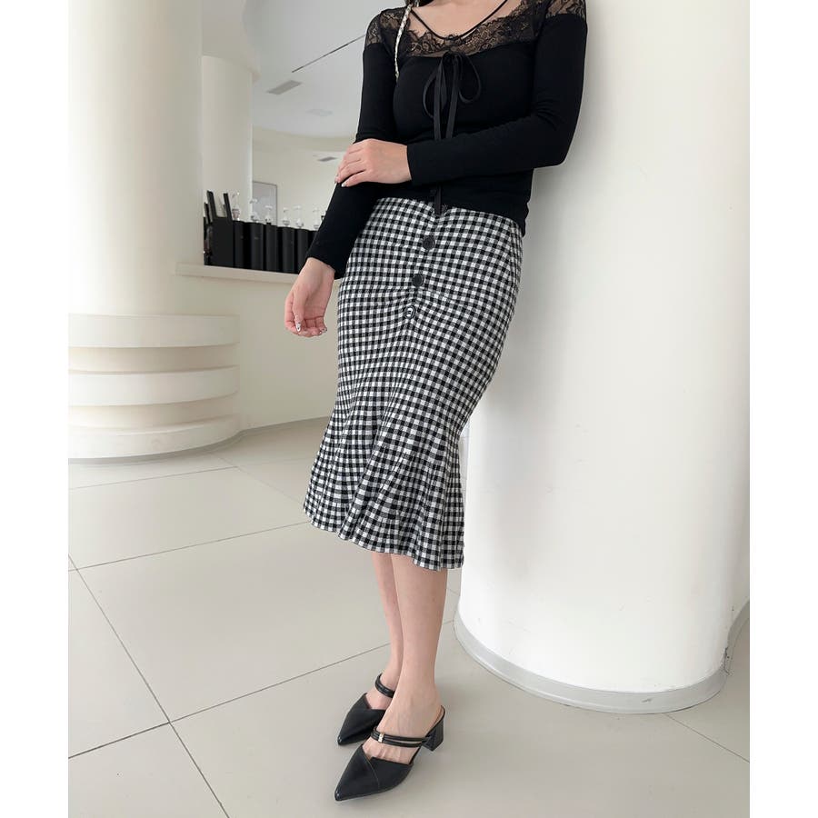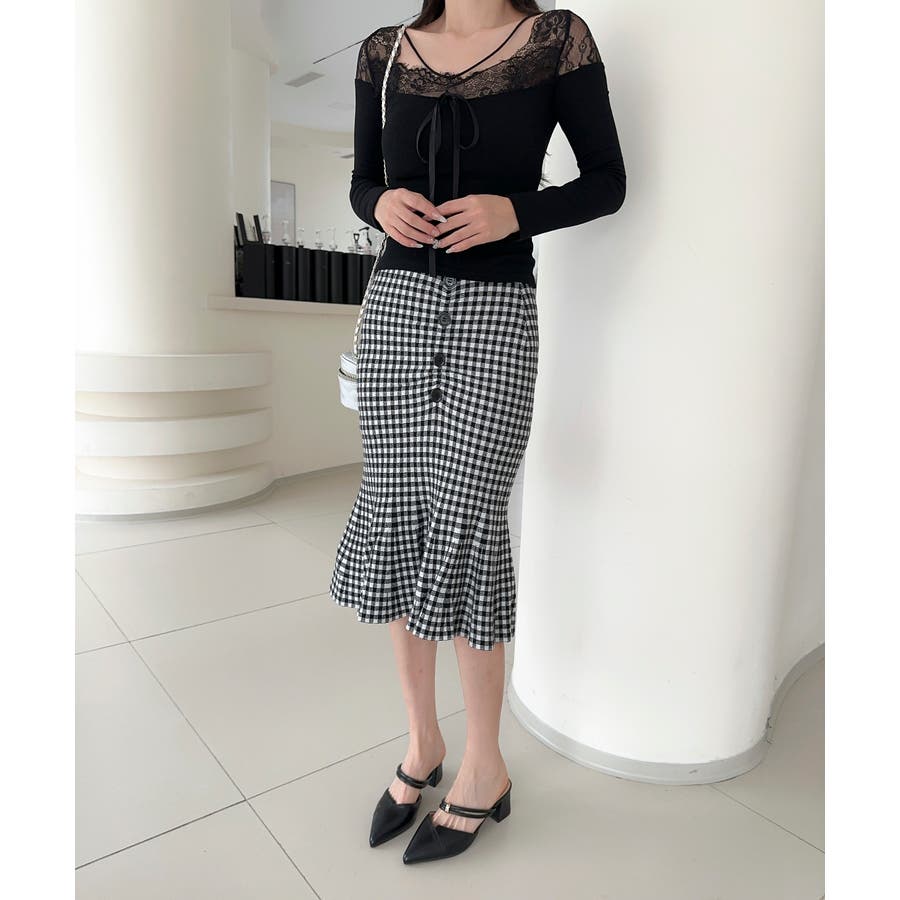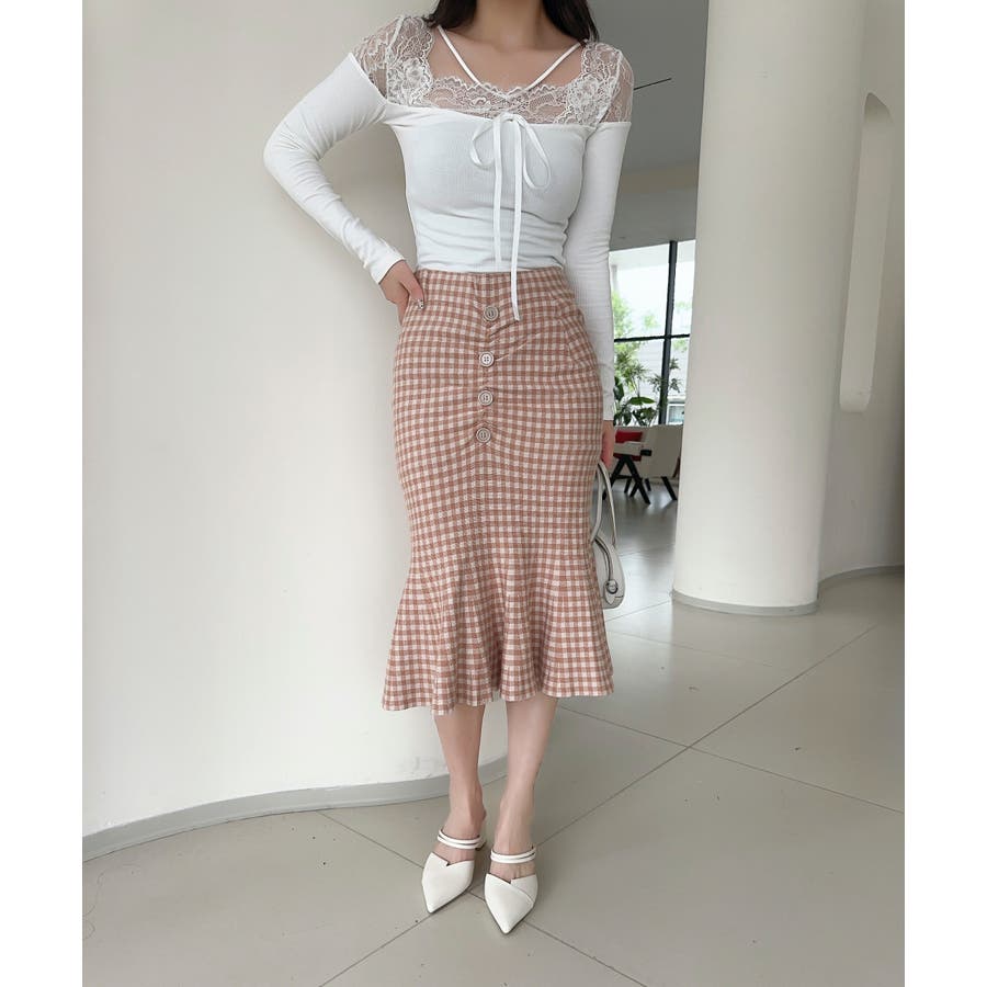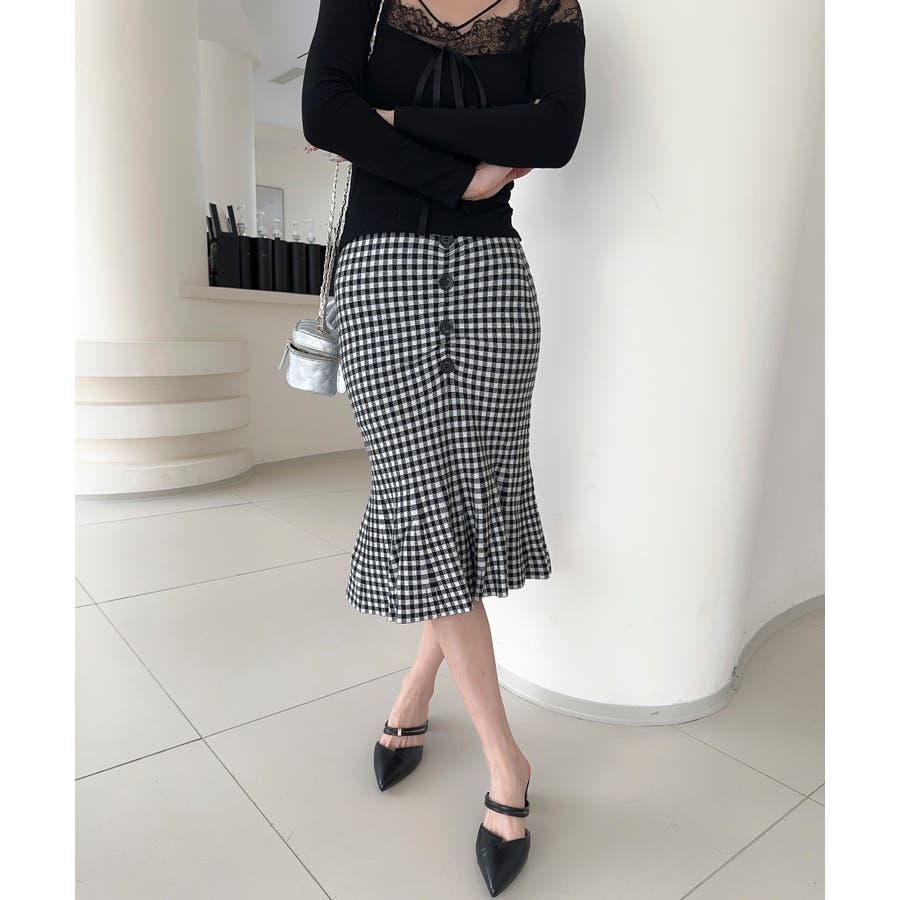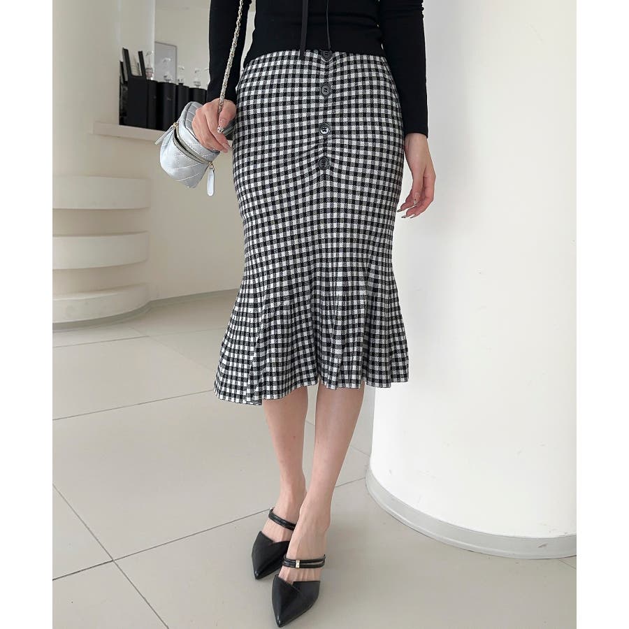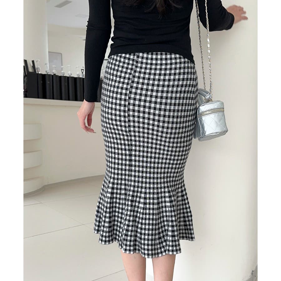 【Jasmine】チェック柄ニットマーメイドスカート Jasmine Grand…