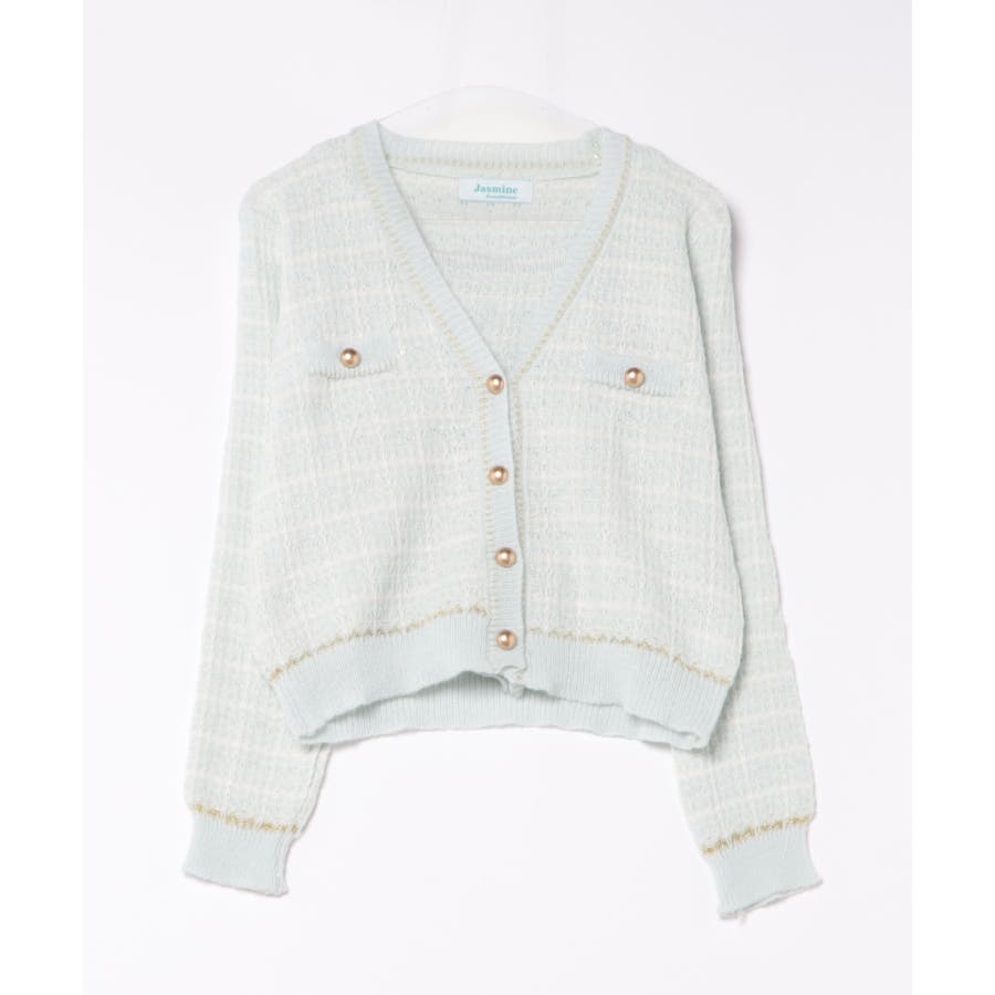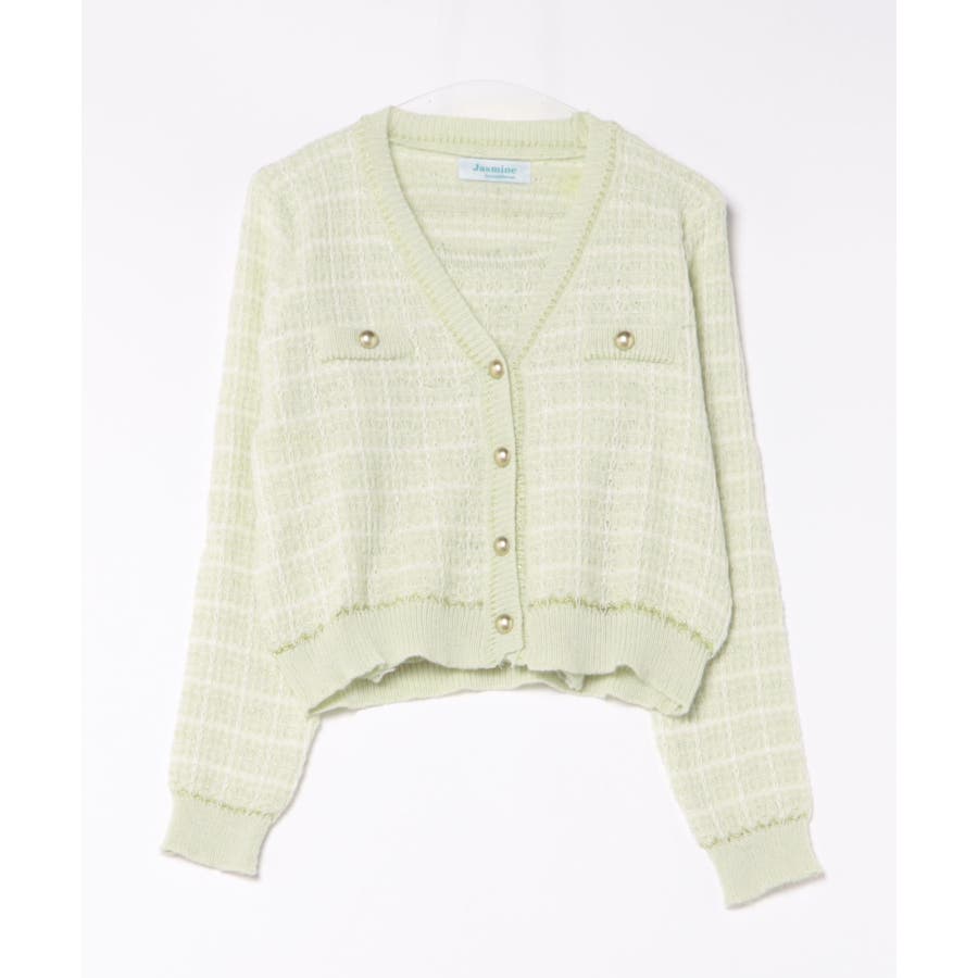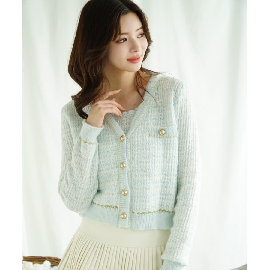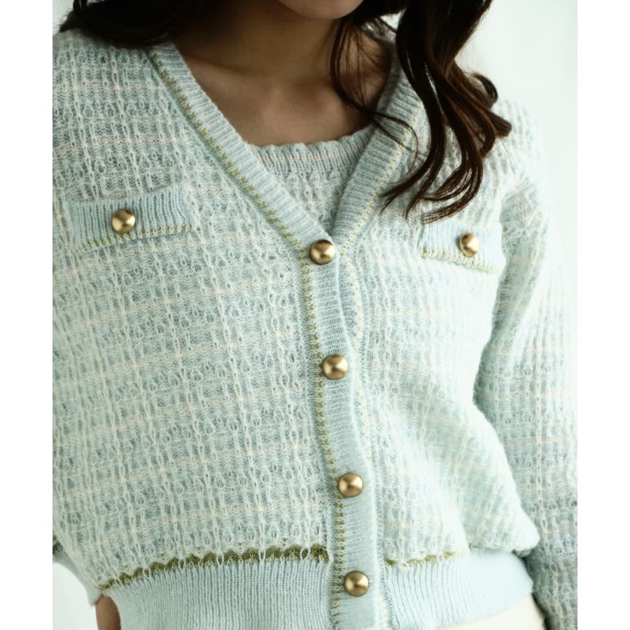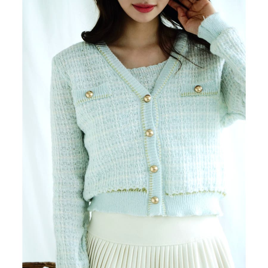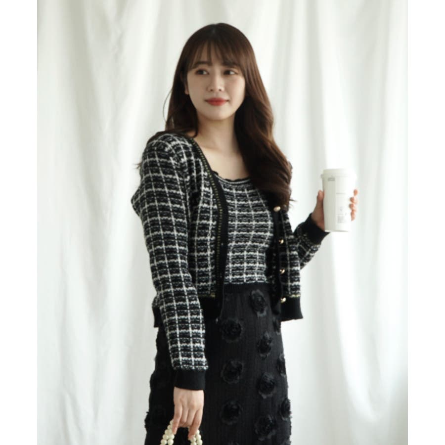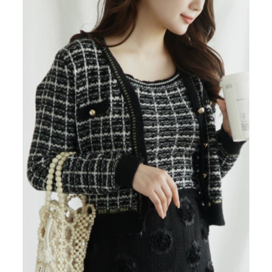 【Jasmine】ツイード風アンサンブル ニットキャミソール+カーディガン
