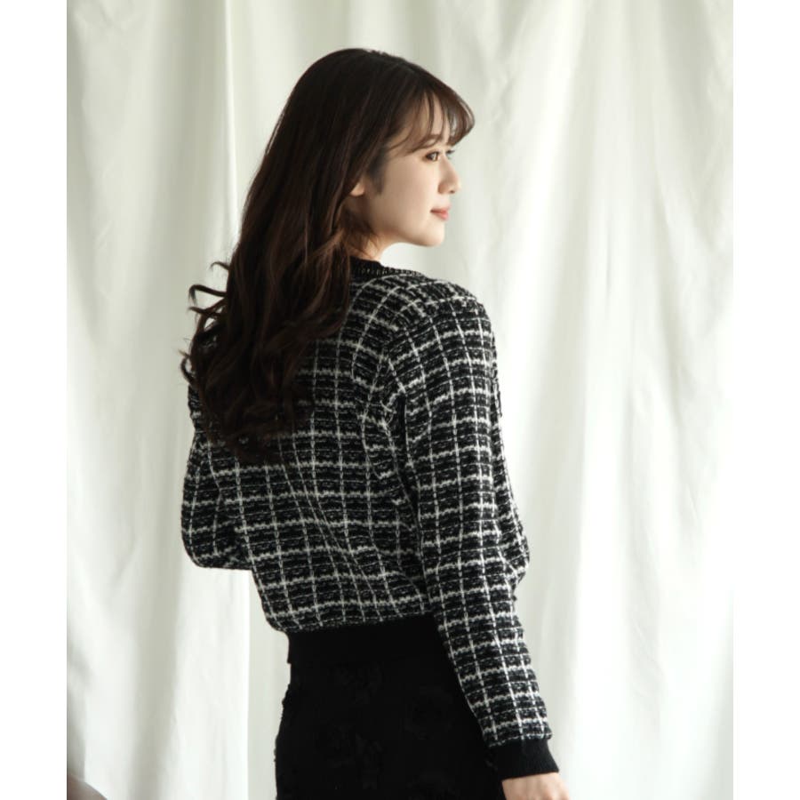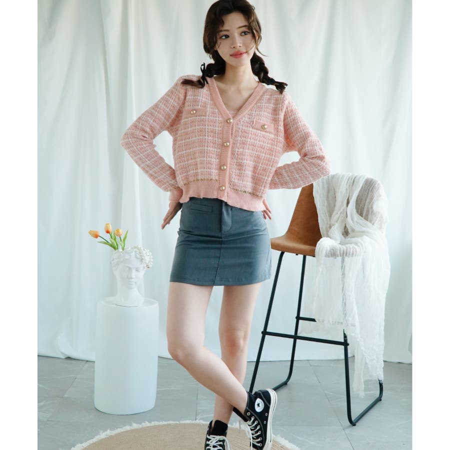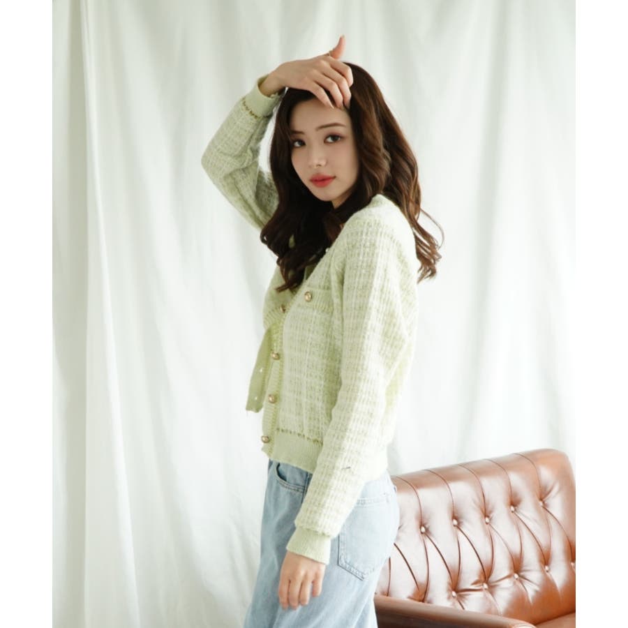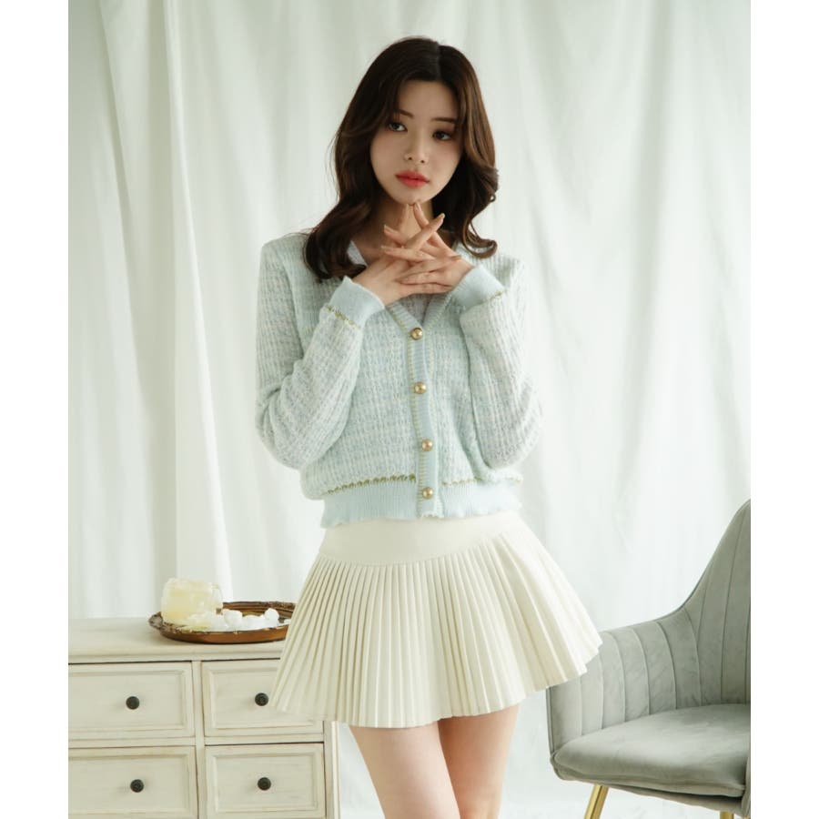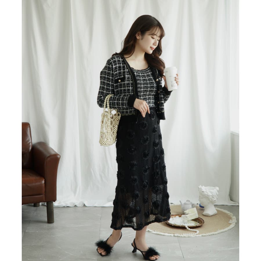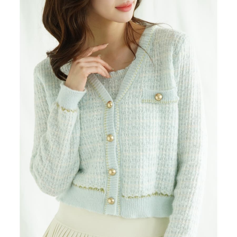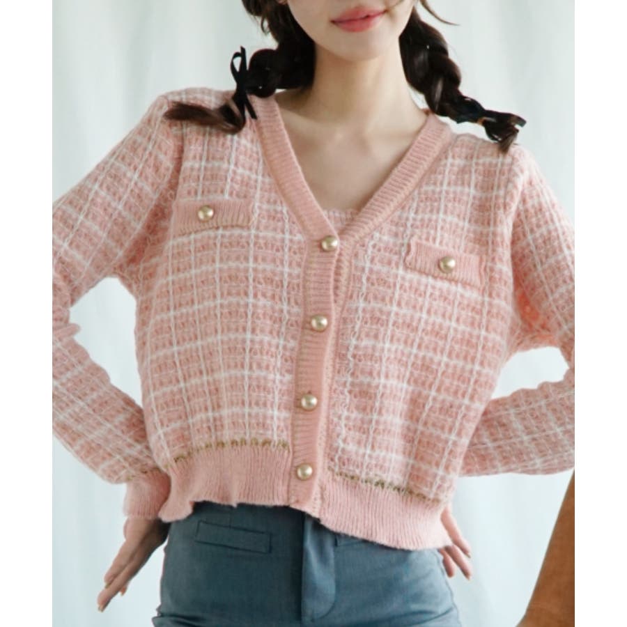 【Jasmine】ツイード風アンサンブル ニットキャミソール+カーディガン