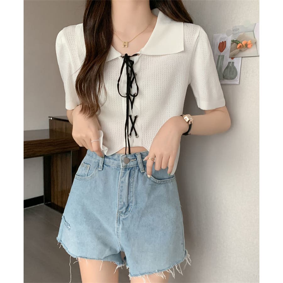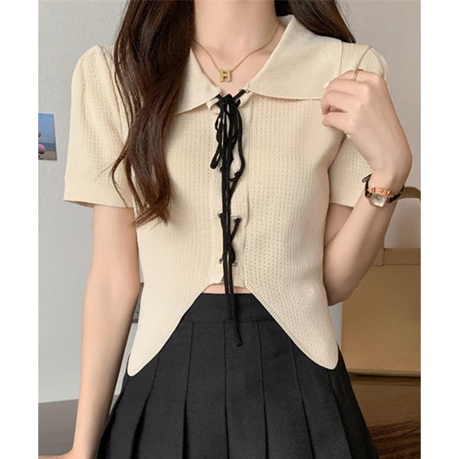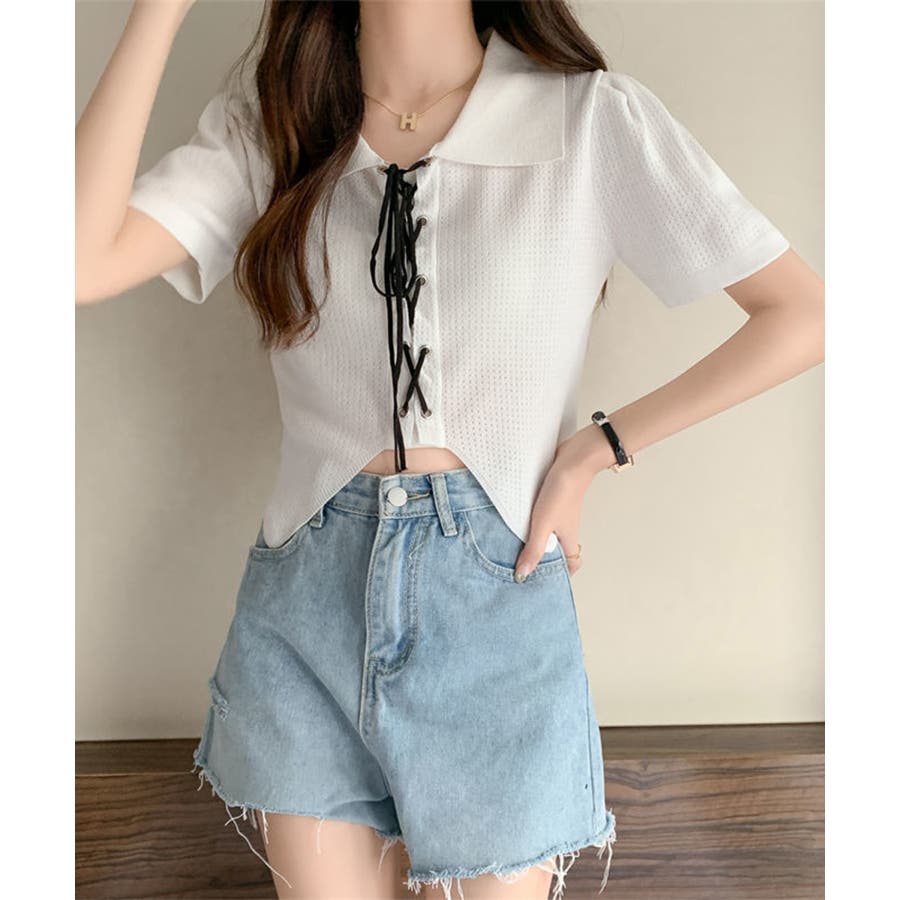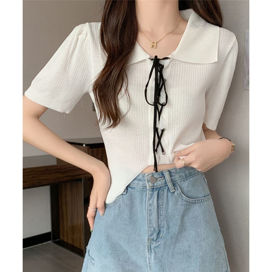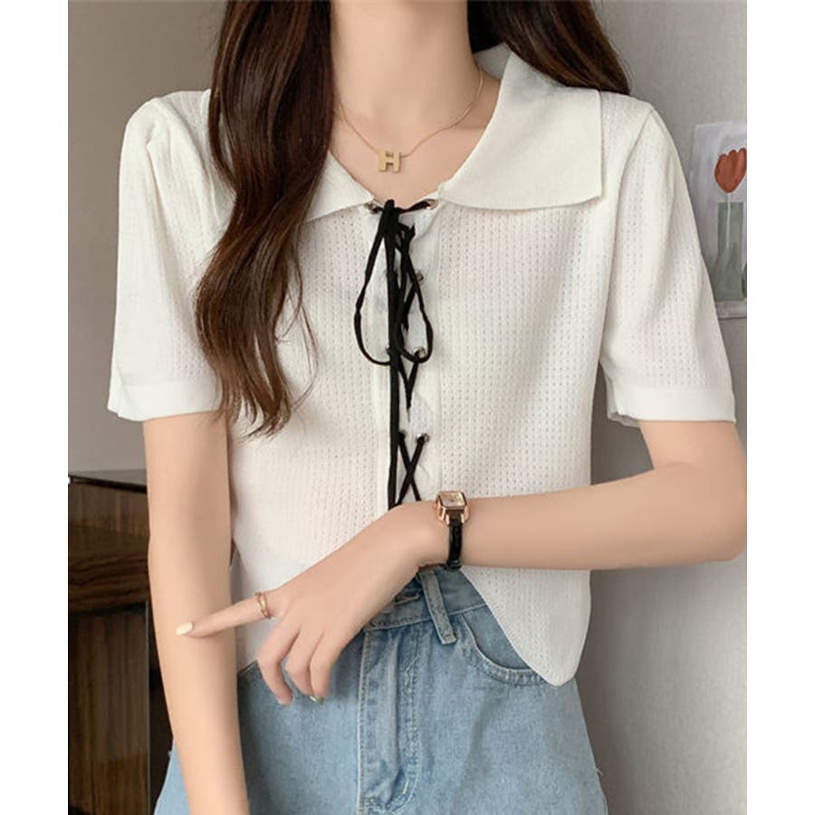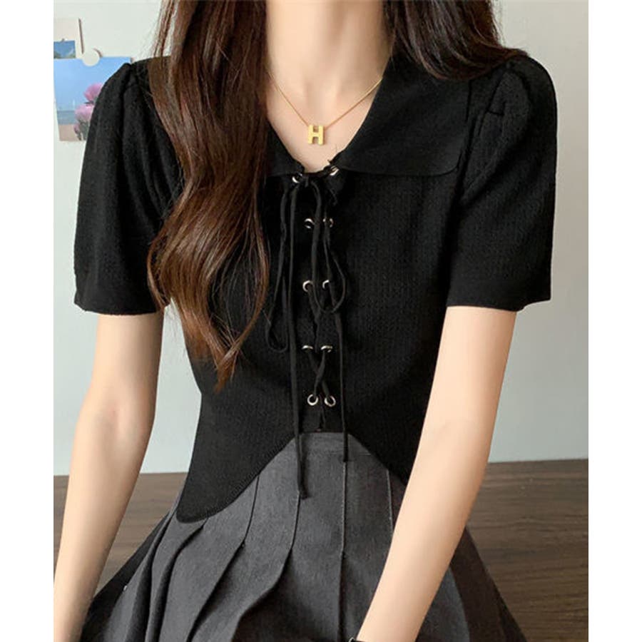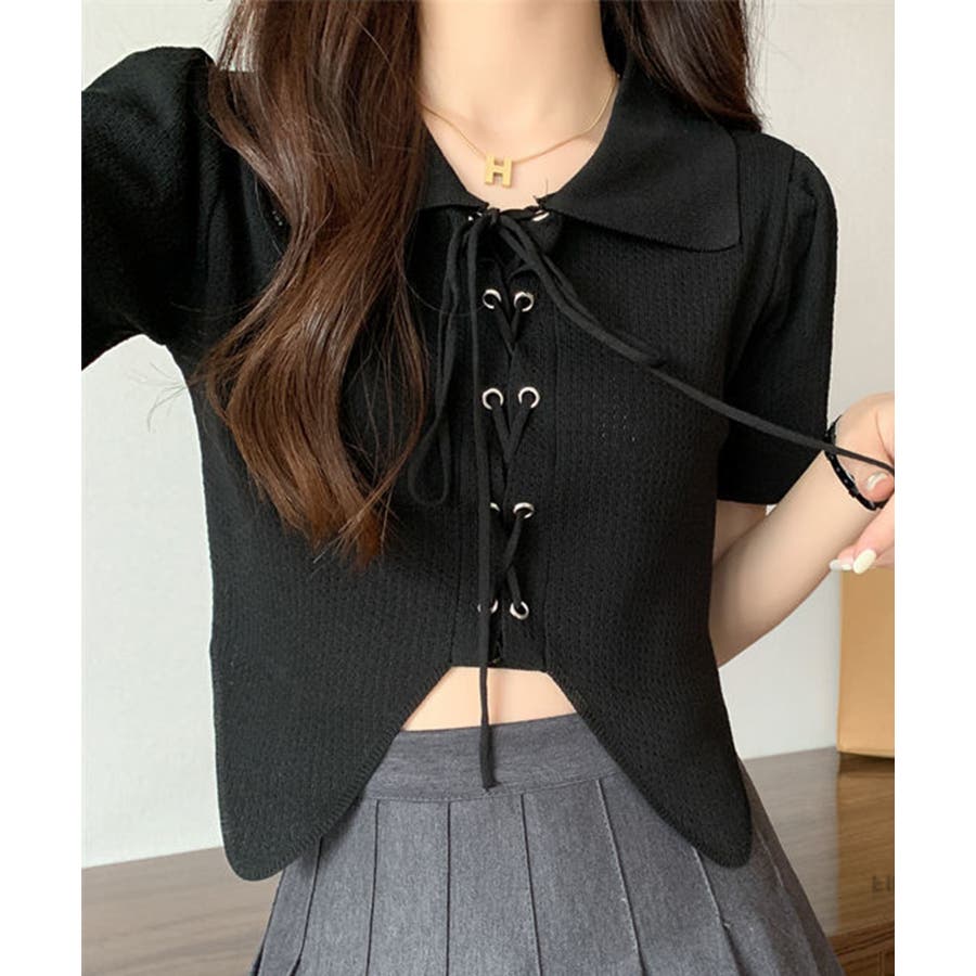 【Jasmine】レースアップショート丈半袖トップス Jasmine Grand…