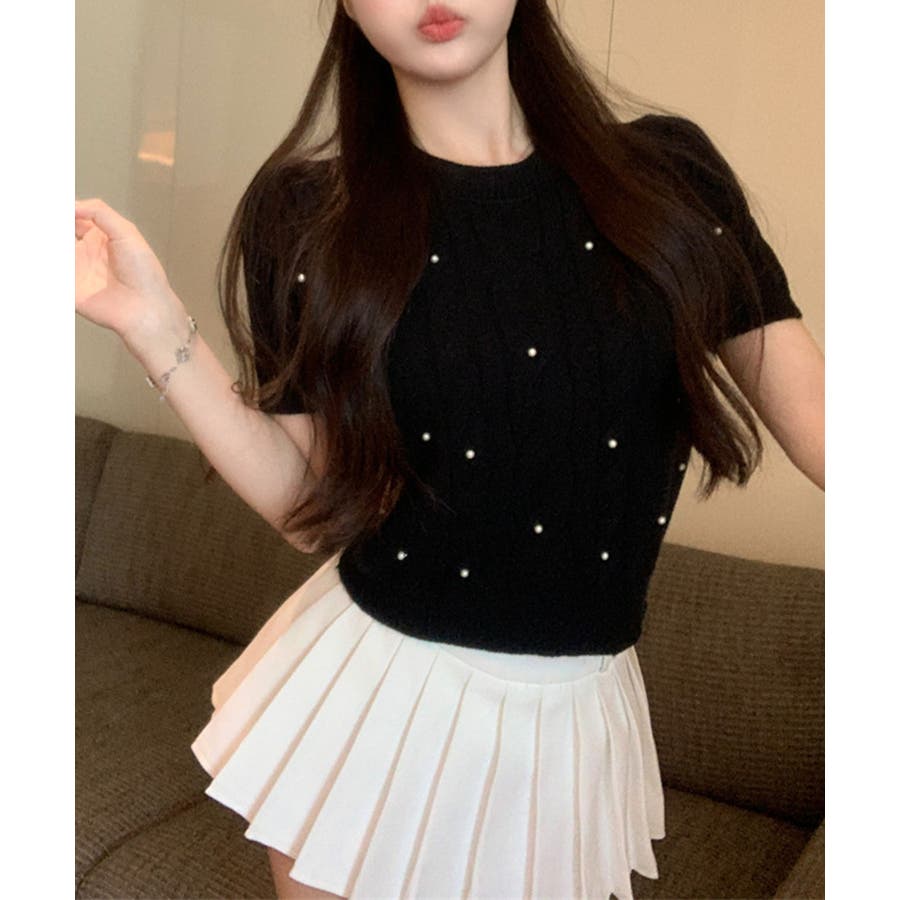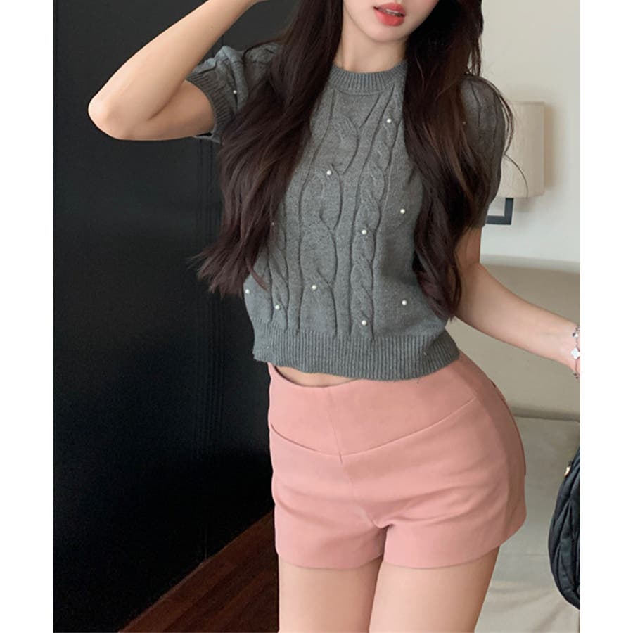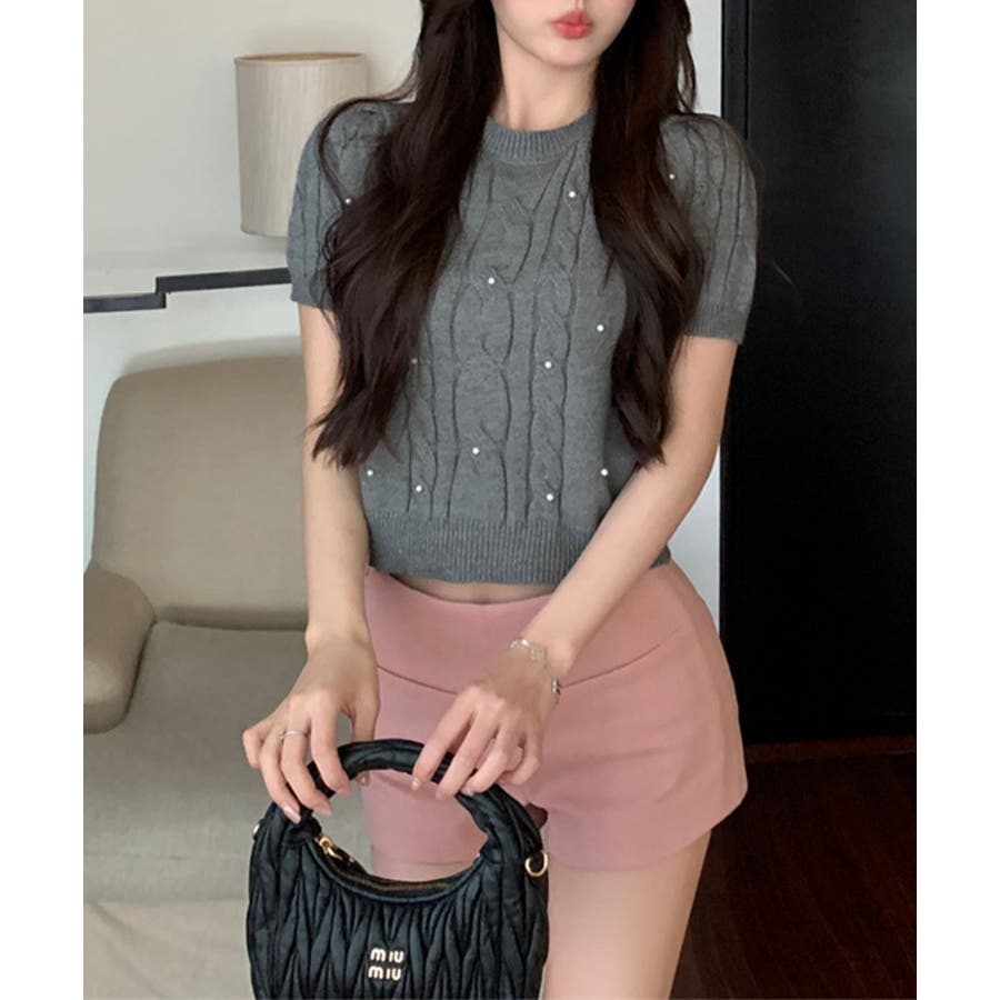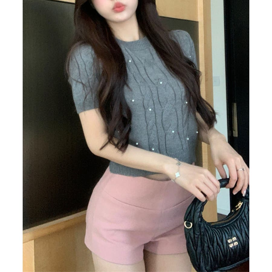 艷やかなパールに目を奪われるレディなプルオーバー。甘さを抑えインナーとのレイヤードをおしゃれに見せる。軽くてドライタッチな快適度抜群のニット生地を使用、ストレスフリーな着心地をもたらす。短丈のシルエットは、こなれた印象を持たせる。