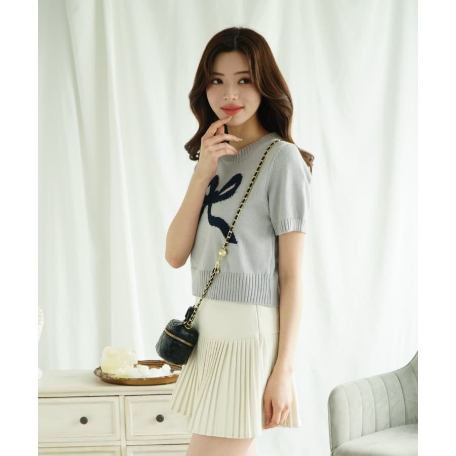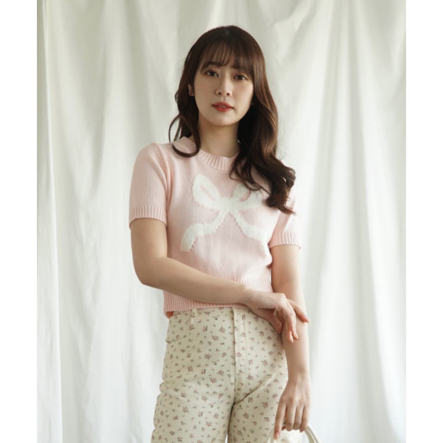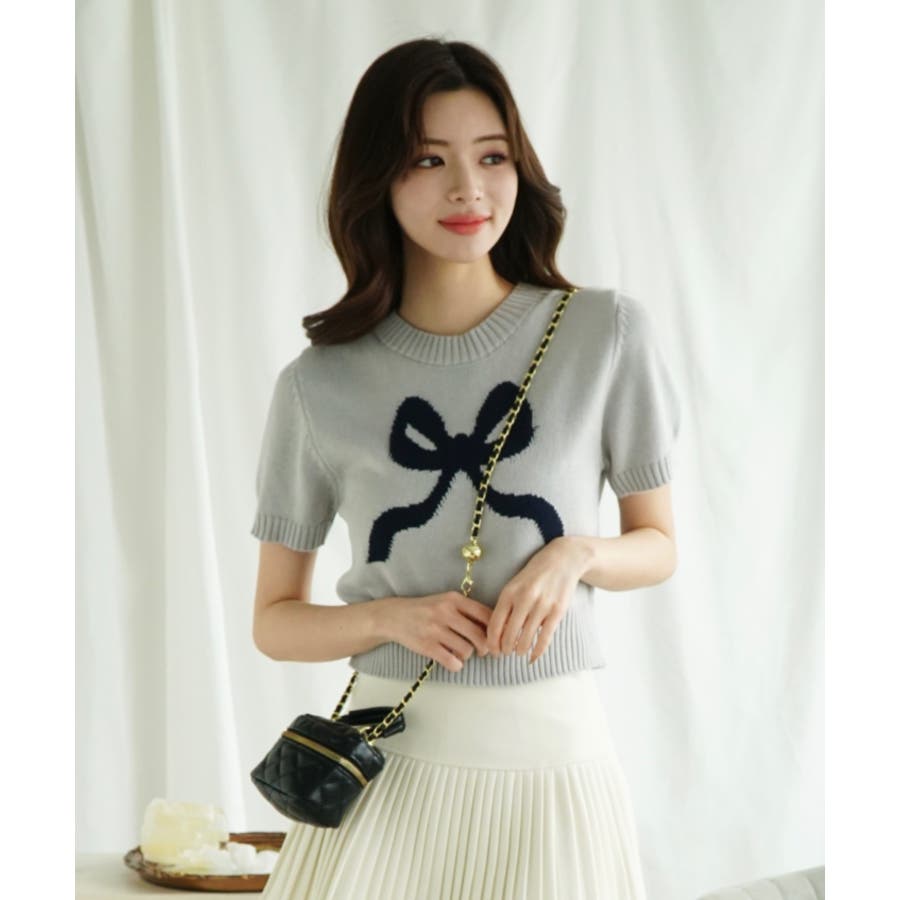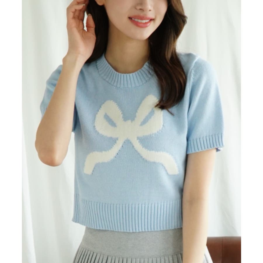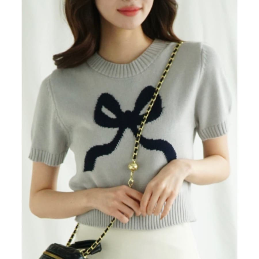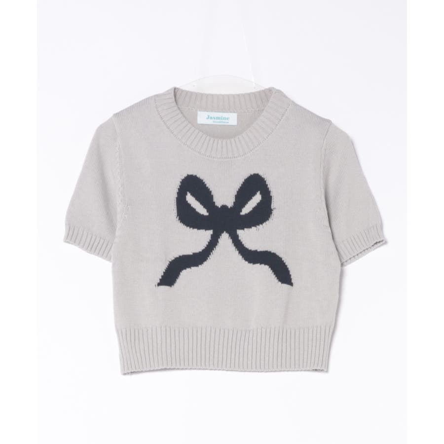「Jasmine」ハーフスリーブリボンニットプルオーバー Jasmine Gra…