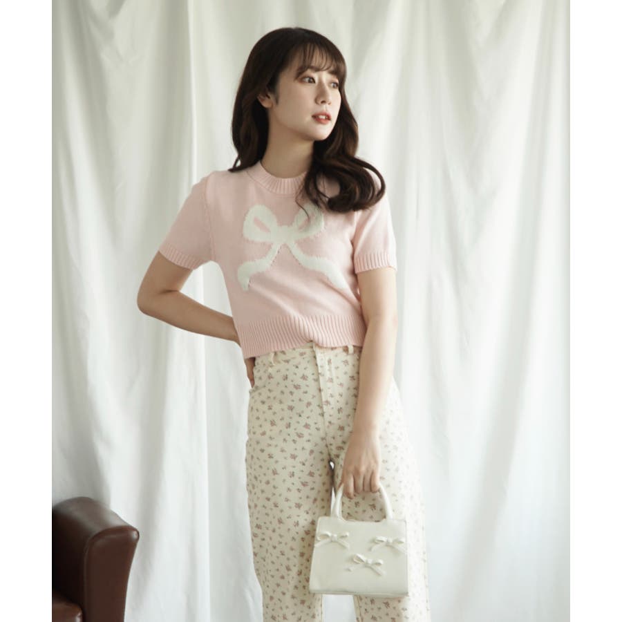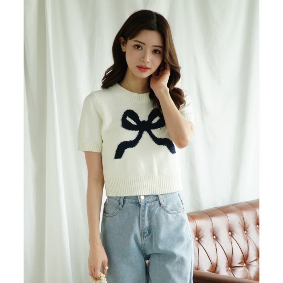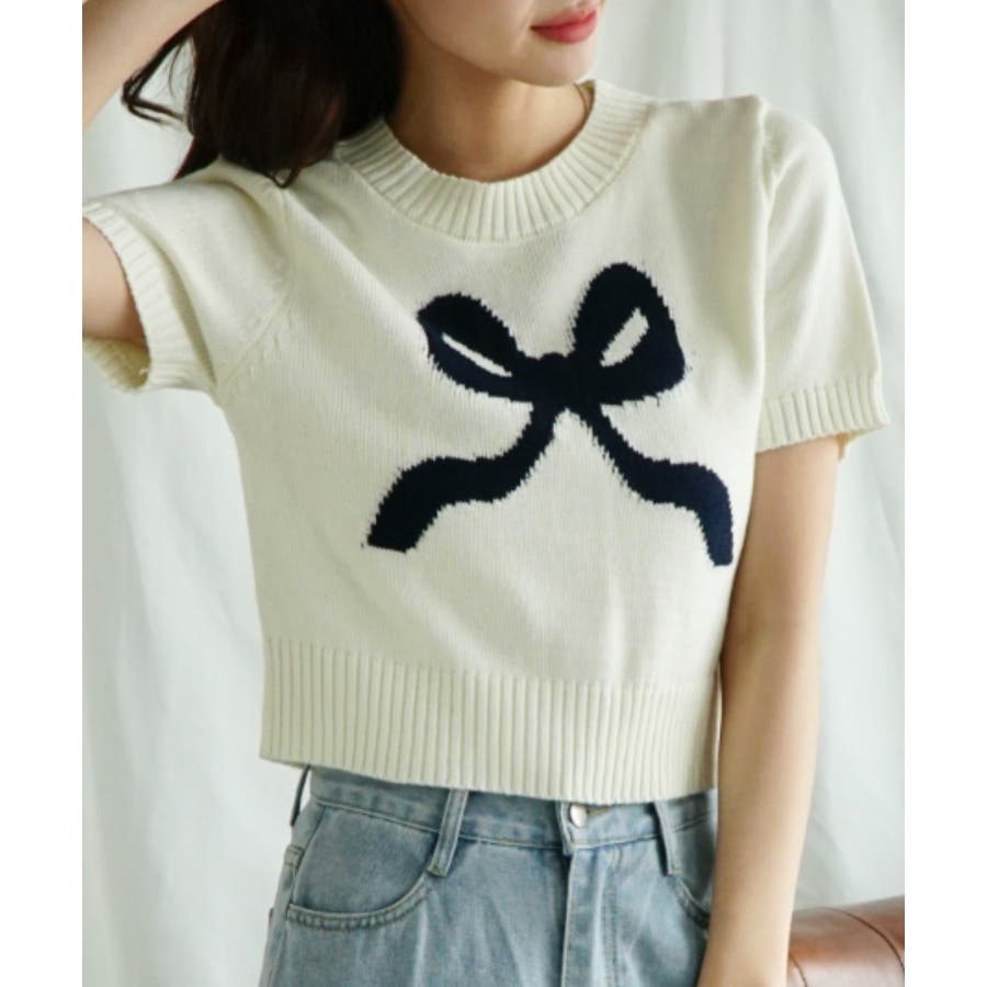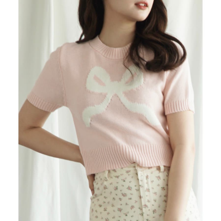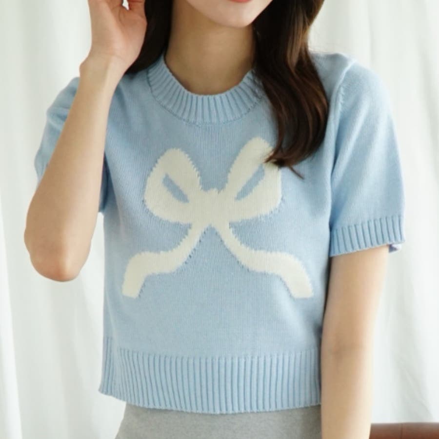 「Jasmine」ハーフスリーブリボンニットプルオーバー Jasmine Gra…