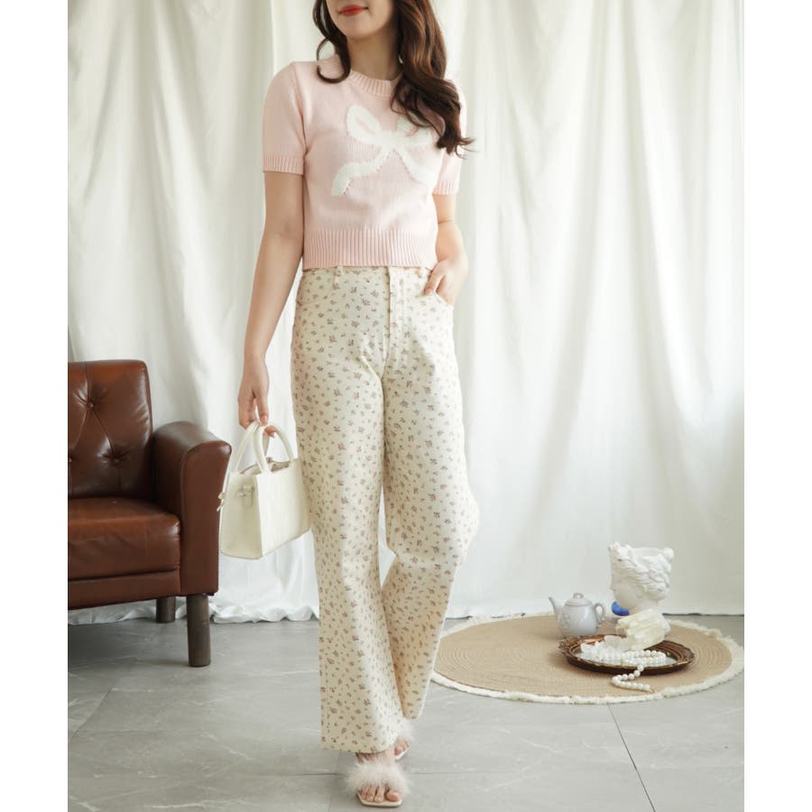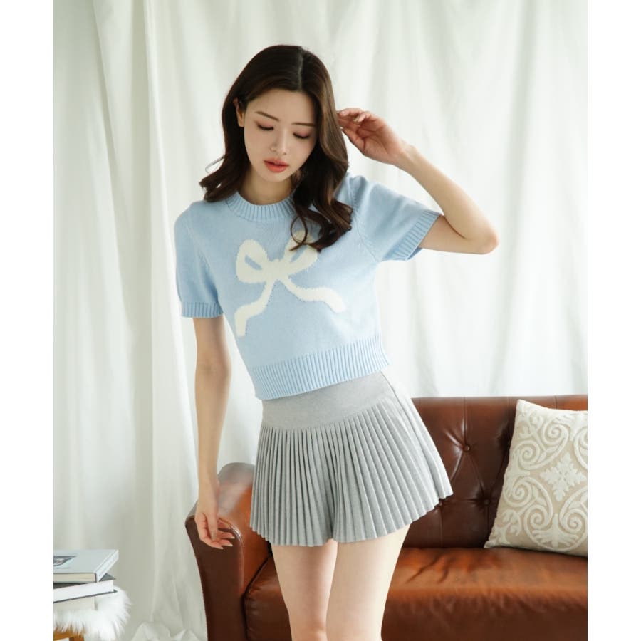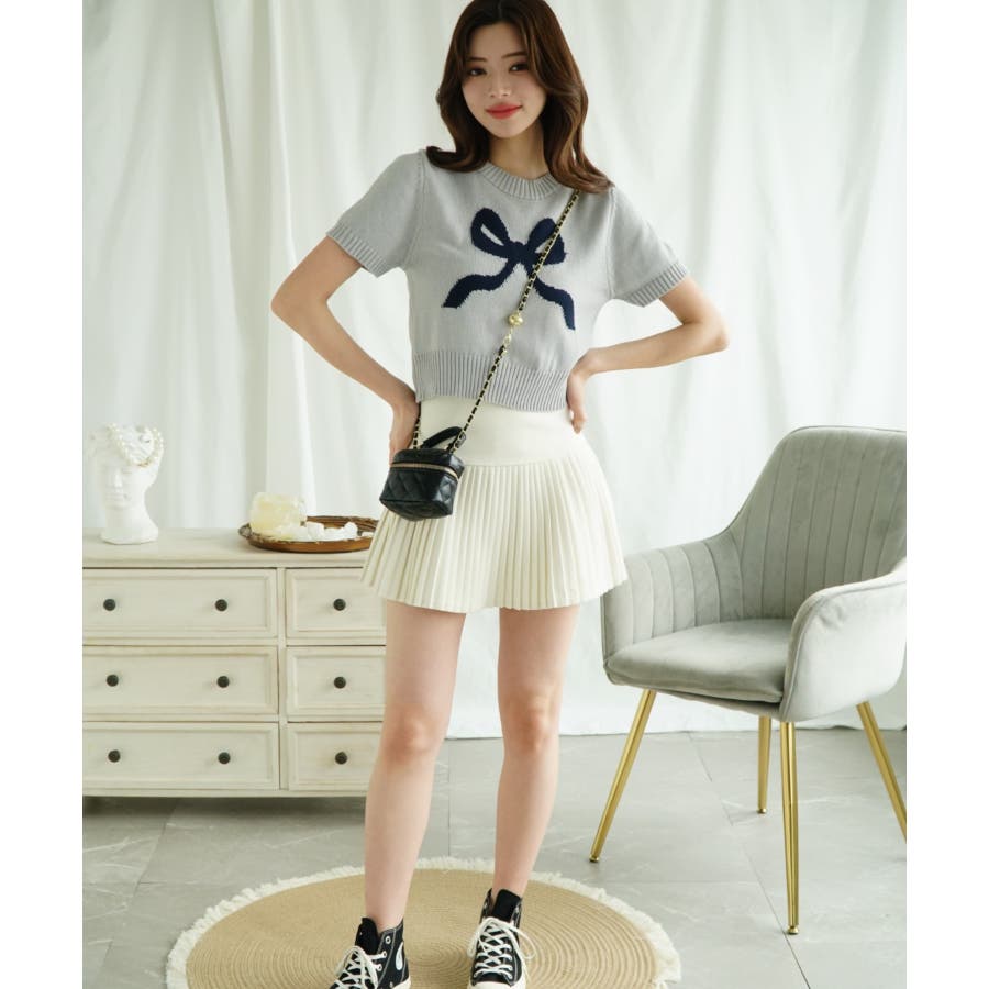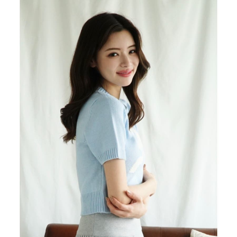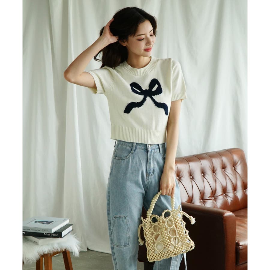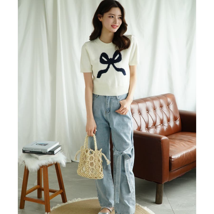 「Jasmine」ハーフスリーブリボンニットプルオーバー Jasmine Gra…