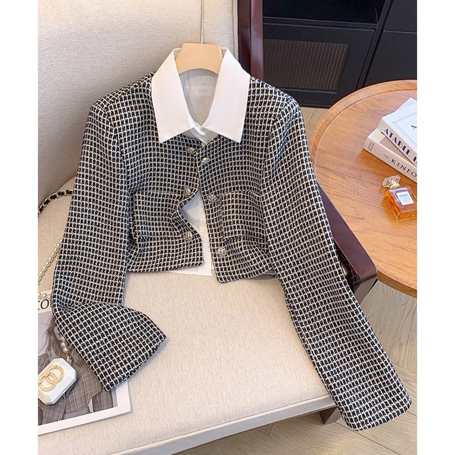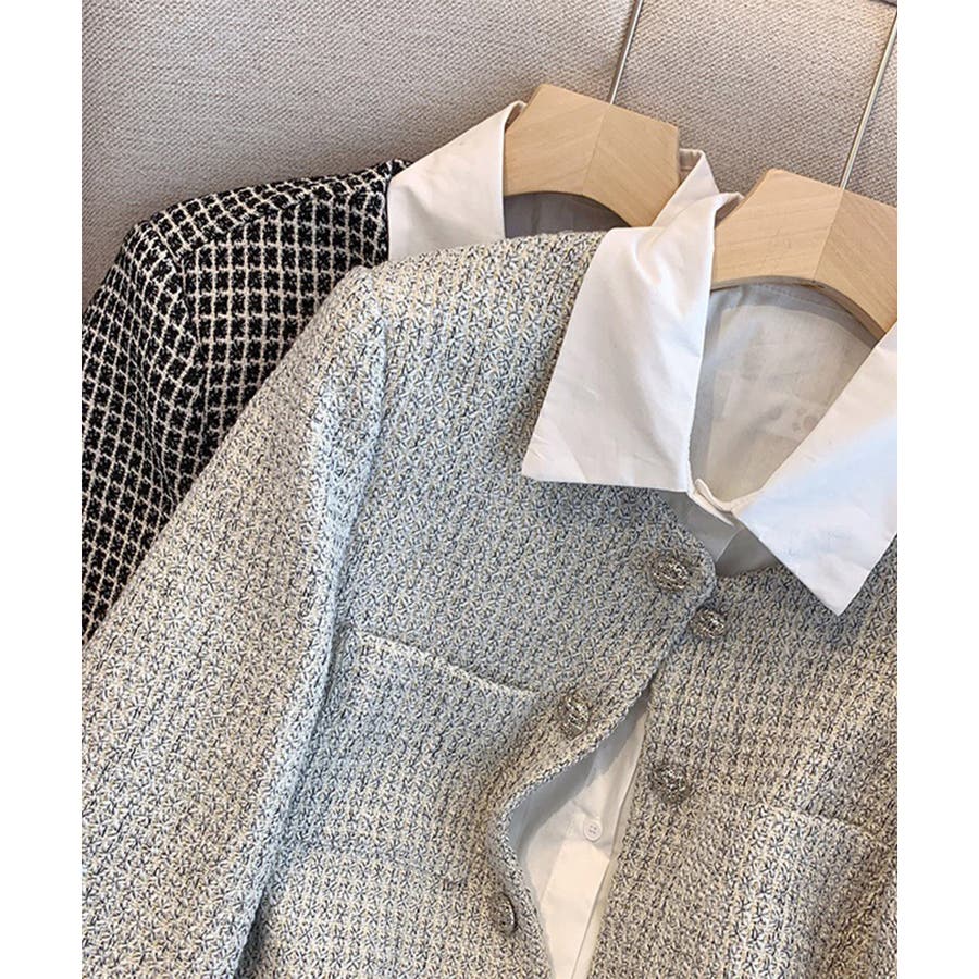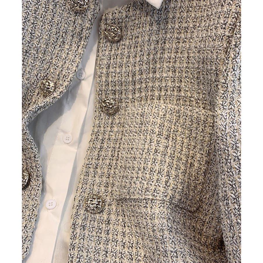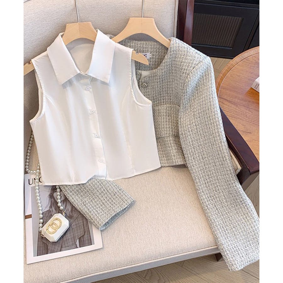 【Jasmine】千鳥柄ノンカラージャケット+グロップドシャツベスト