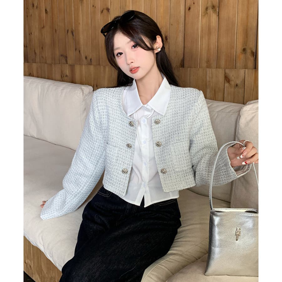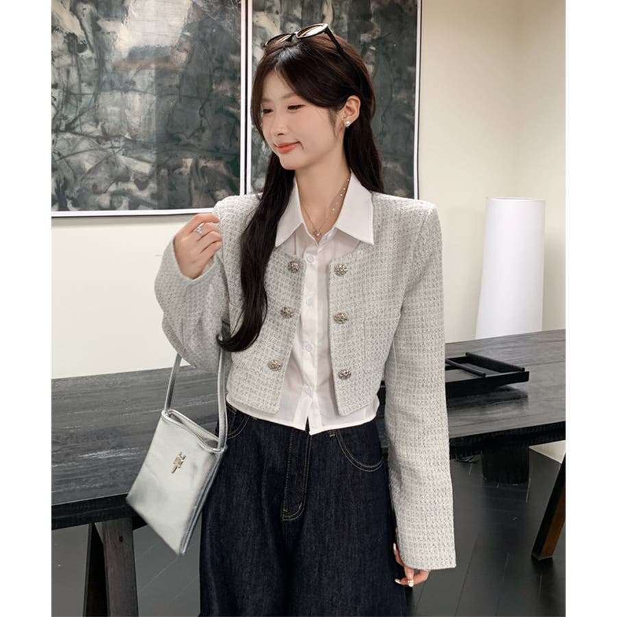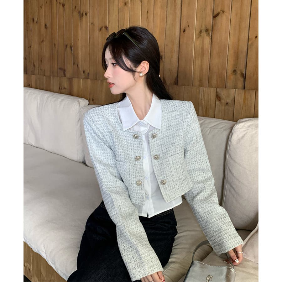 ノンカラー仕様で顔周りがすっきり見え、きちんと感も演出。