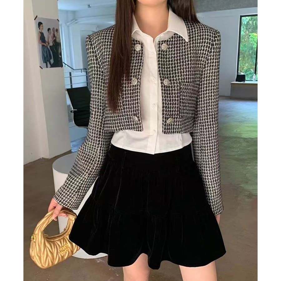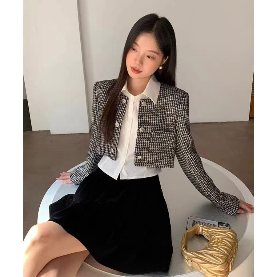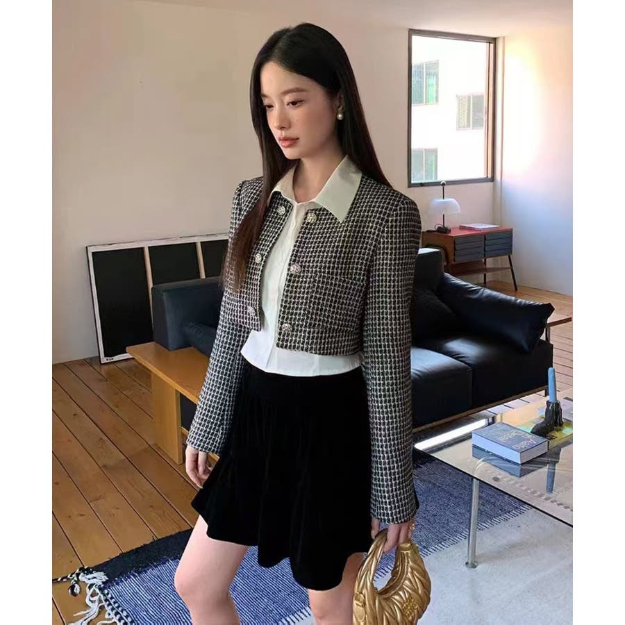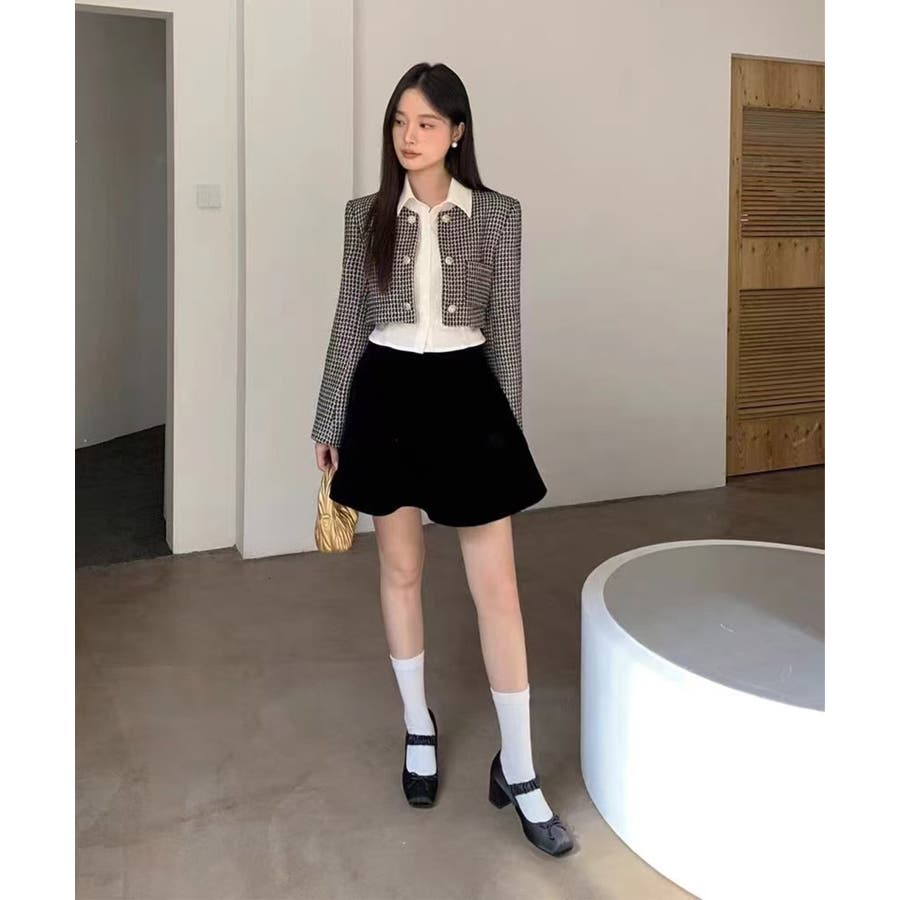 ミニスカートと合わせて、トレンド感あふれるスクールライクな着こなしに。