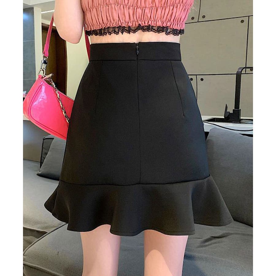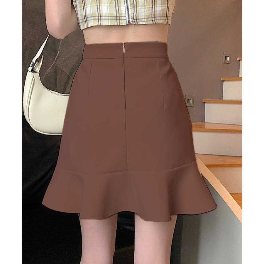 シンプルでありながら、フェミニンさを引き立てる裾フレアデザインが魅力的なミニマーメイドスカート。ボディラインにフィットし、裾に向かって広がるマーメイドシルエットが、どこから見ても美しいスタイルを作り出します。