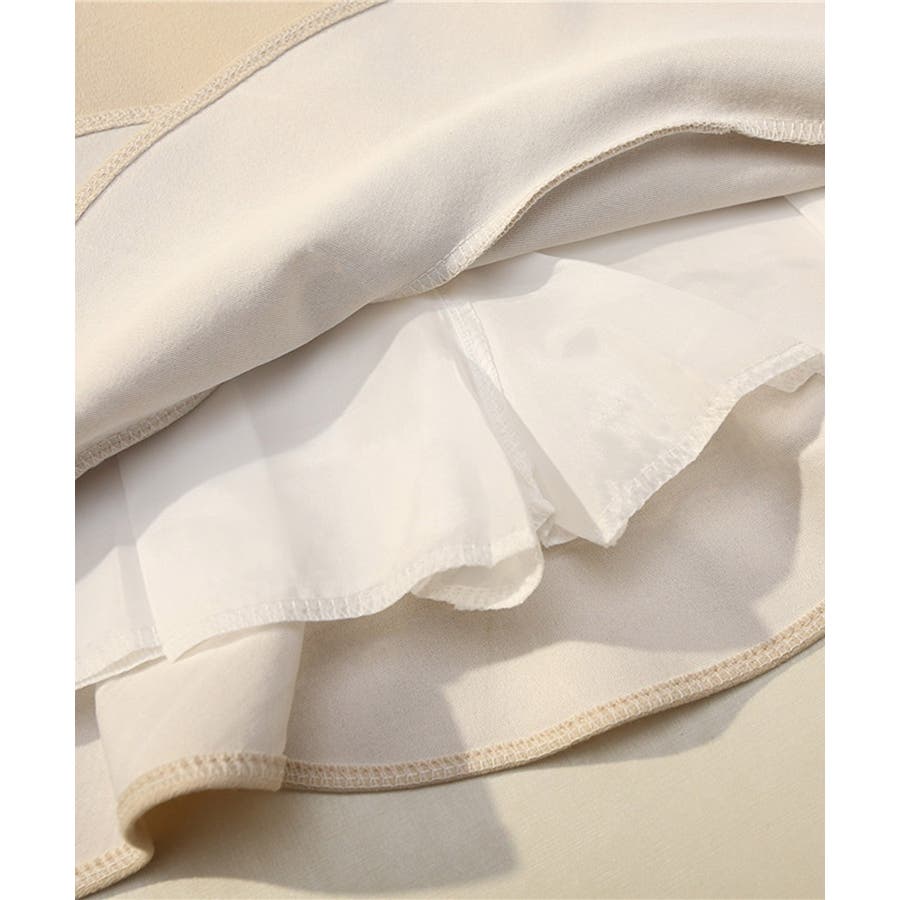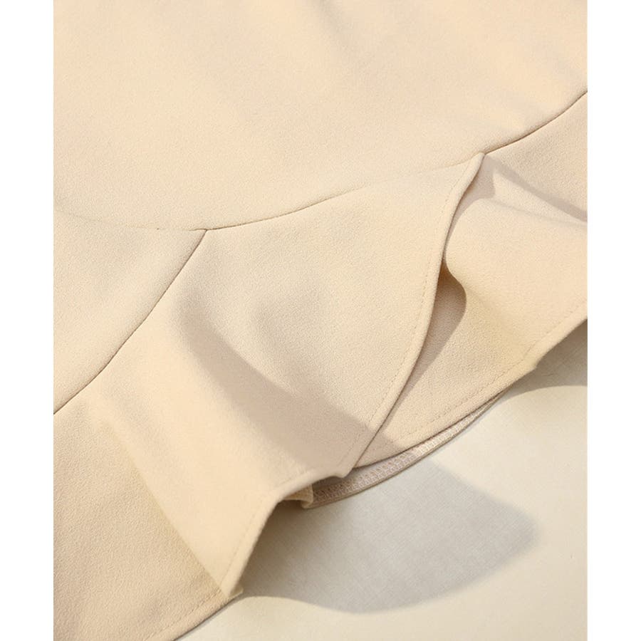 ■POINT―――――――・裾フレア:動きやすく、華やかな印象を与えるフレア裾デザイン。・ミニ丈:脚長効果抜群!スタイルアップ間違いなしのミニ丈。・マーメイドライン:フィット感のあるトップから裾に向かって広がるシルエットが、エレガントでありながらも動きやすい。