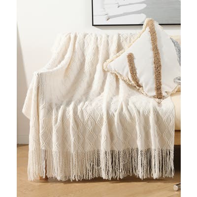 柔らかくてふわふわした秋冬素材です。夏が終わったら、コタツ・ベッド・ソファどれに掛けようか楽しみです。黄色っぽくないオフホワイトで色も可愛いです。