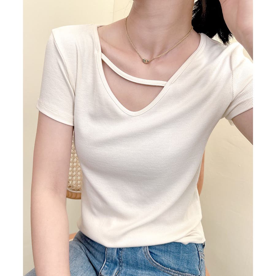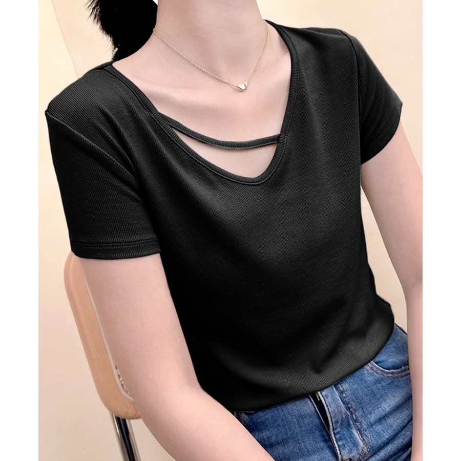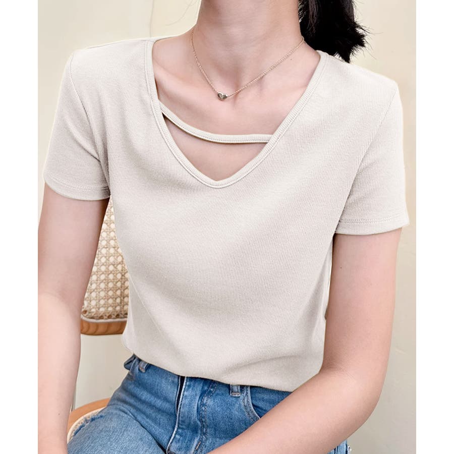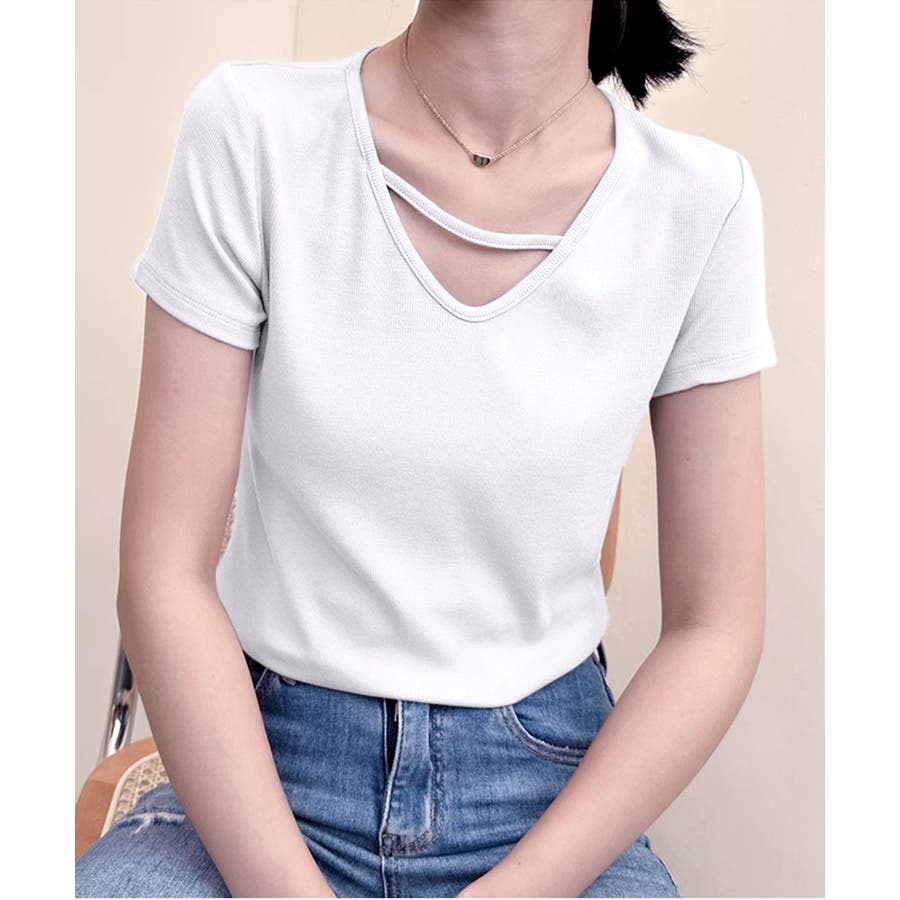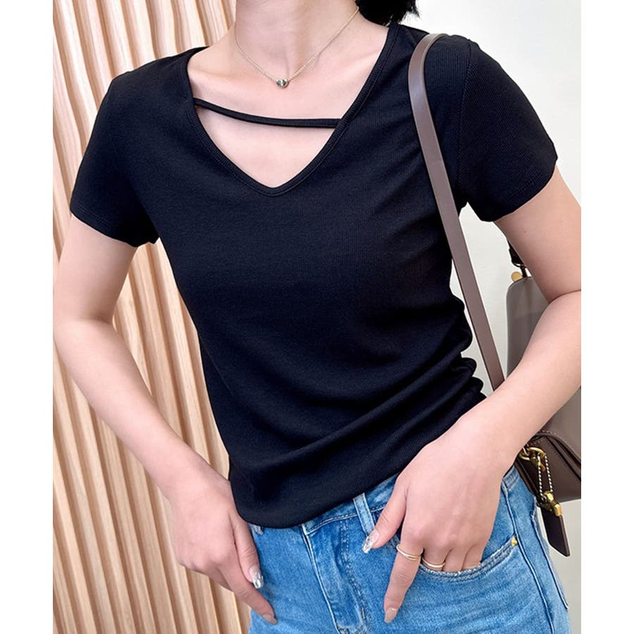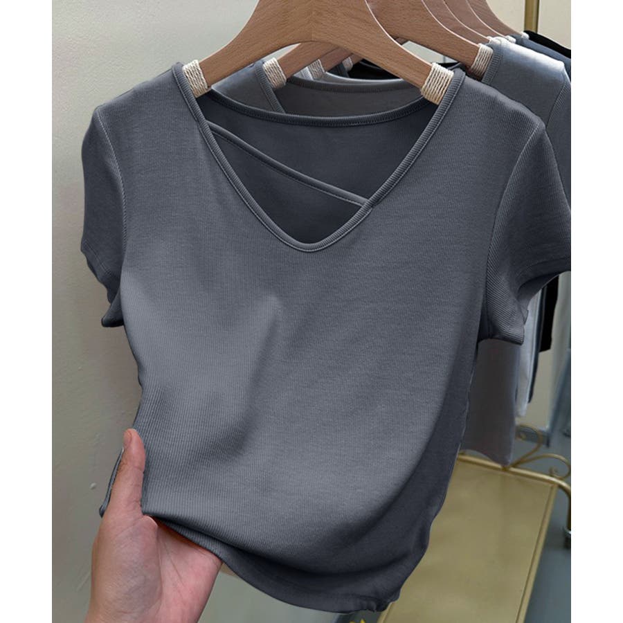 【Banico】クロスデザインVネック半袖トップス