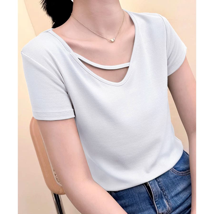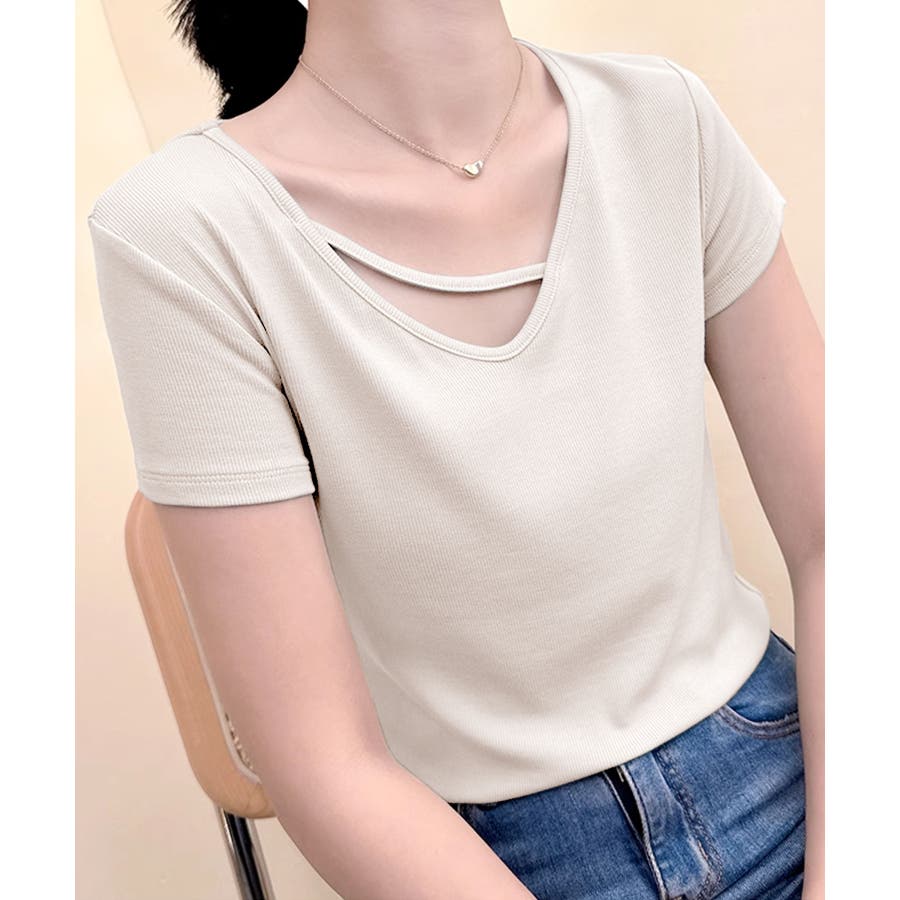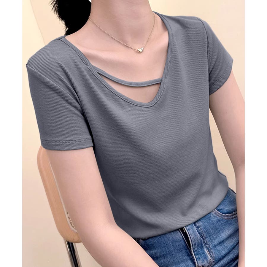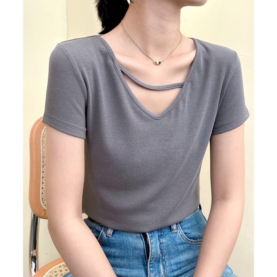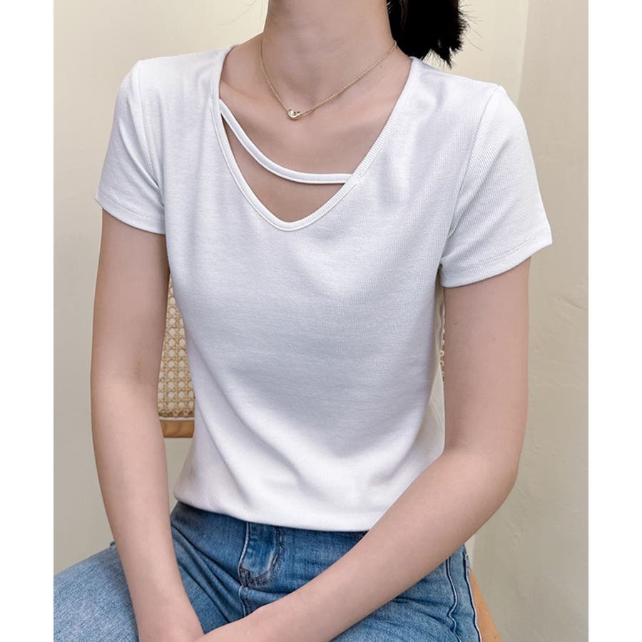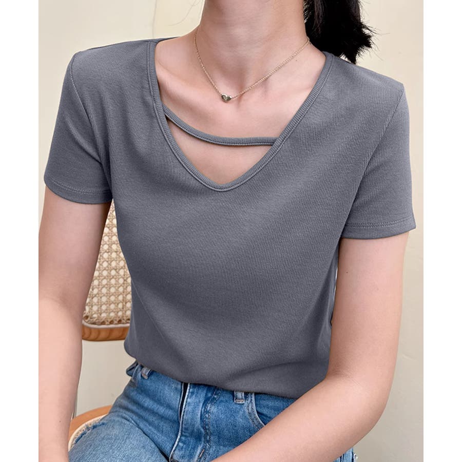 【Banico】クロスデザインVネック半袖トップス