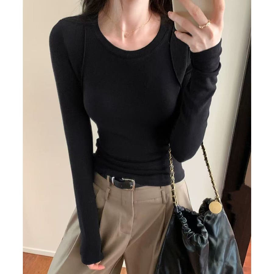 シンプルリブロングスリーブ