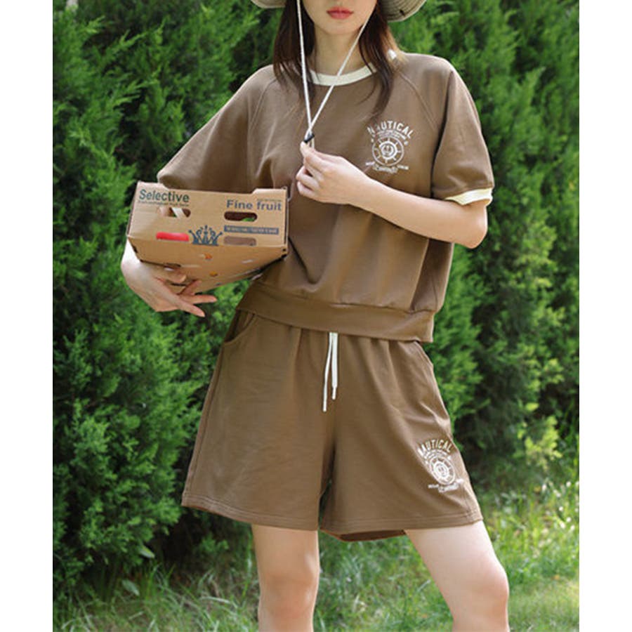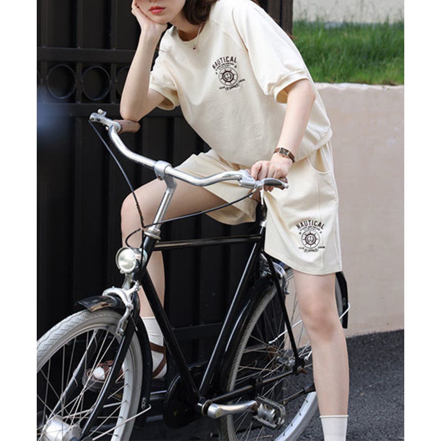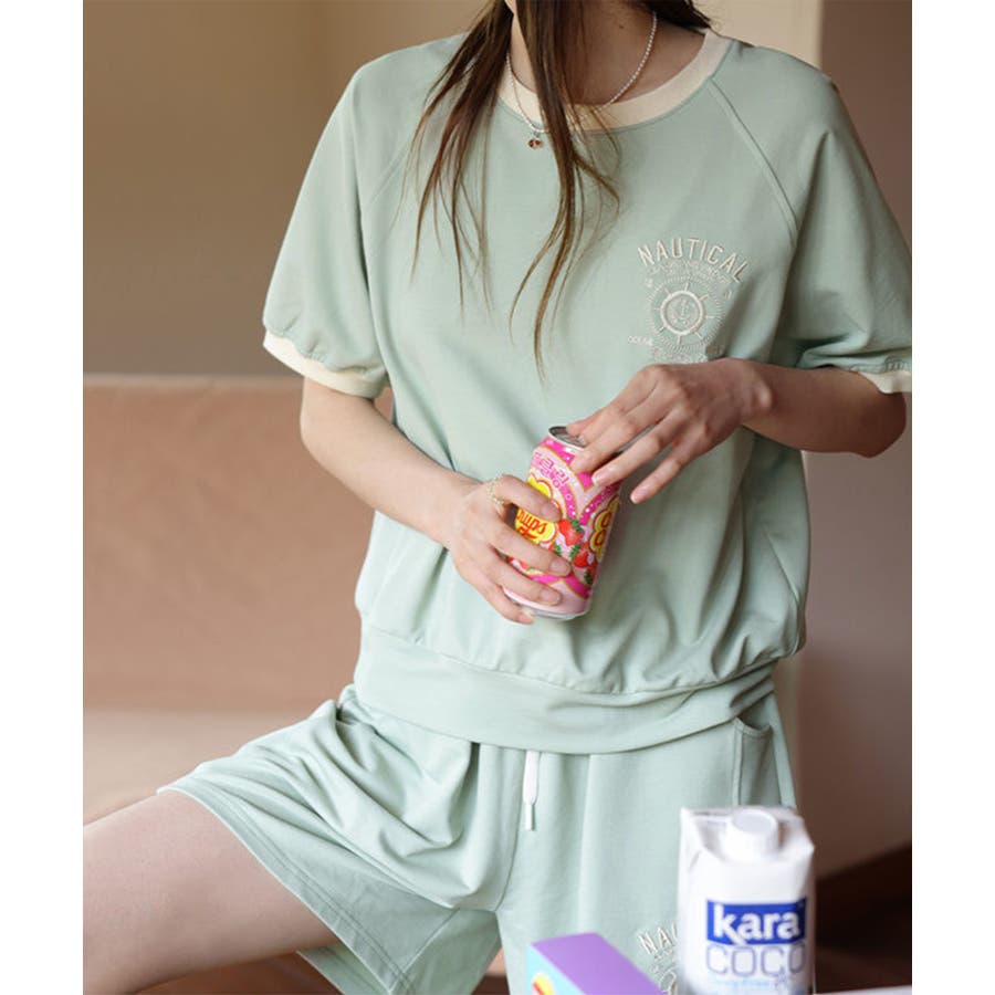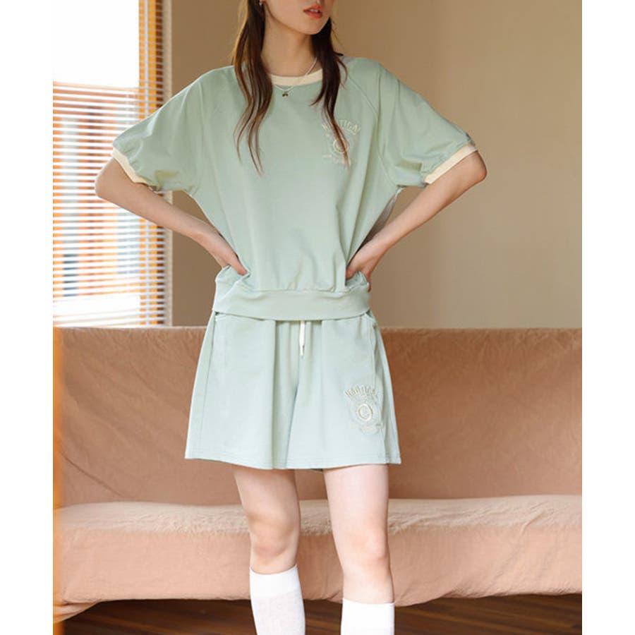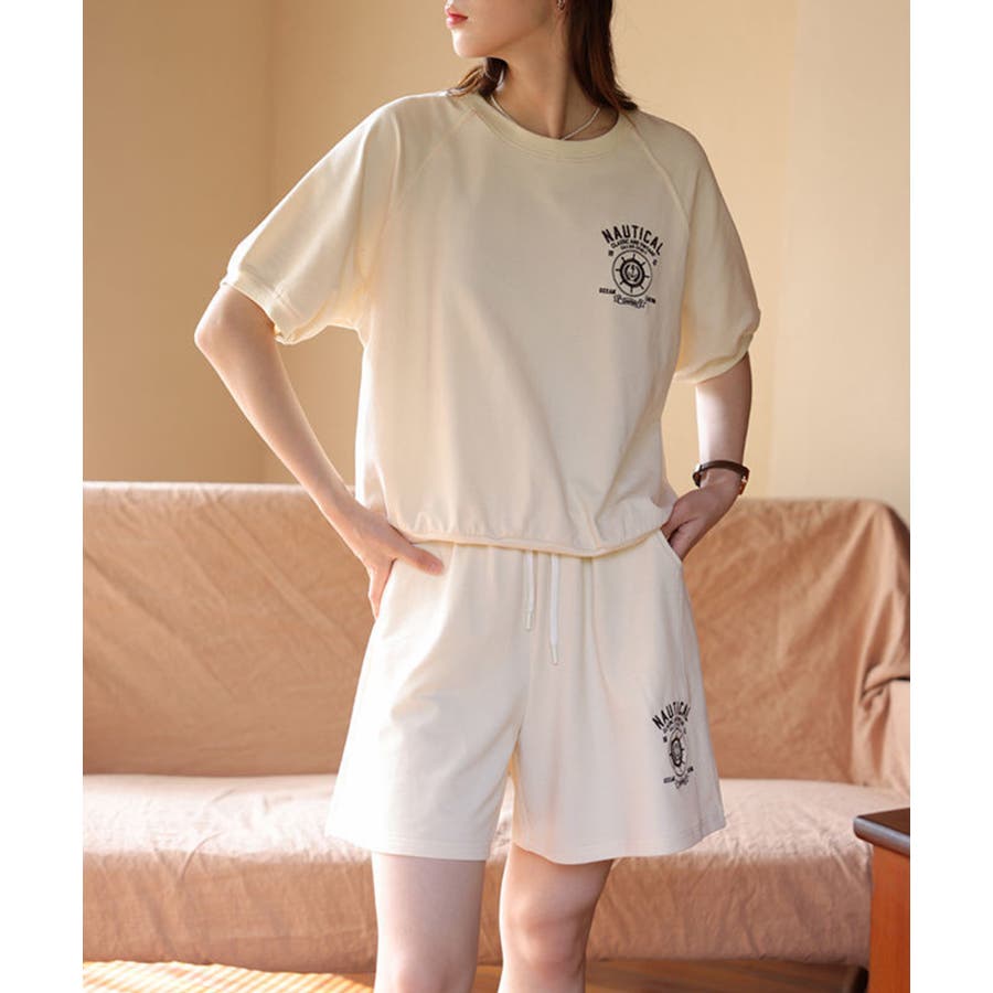 刺繍カットソーTシャツ+ショートパンツ セットアップ ルームウェア