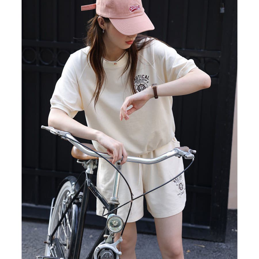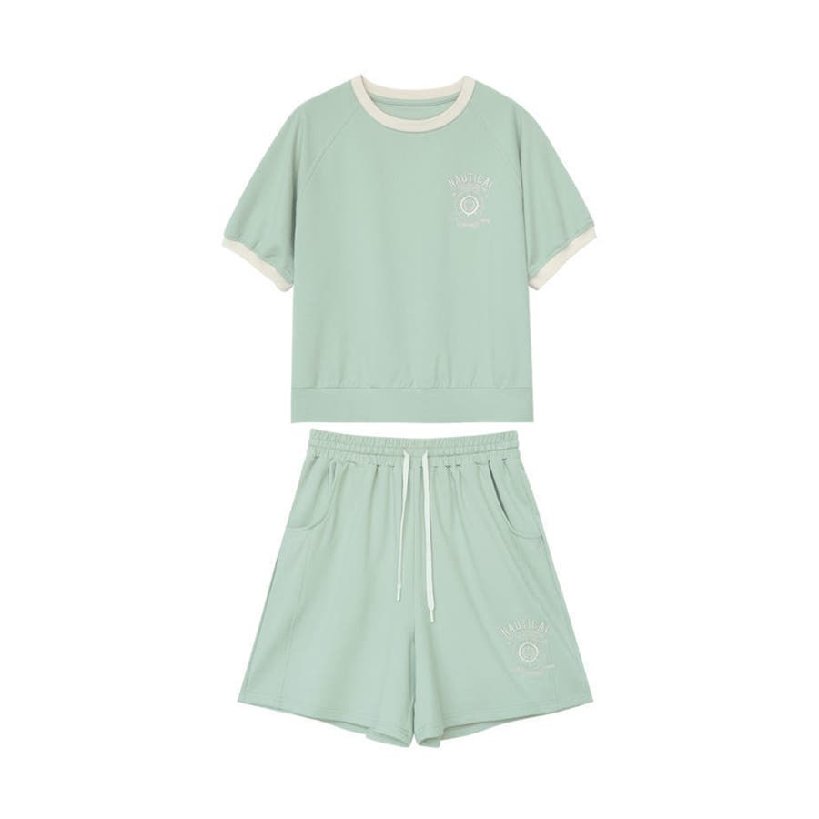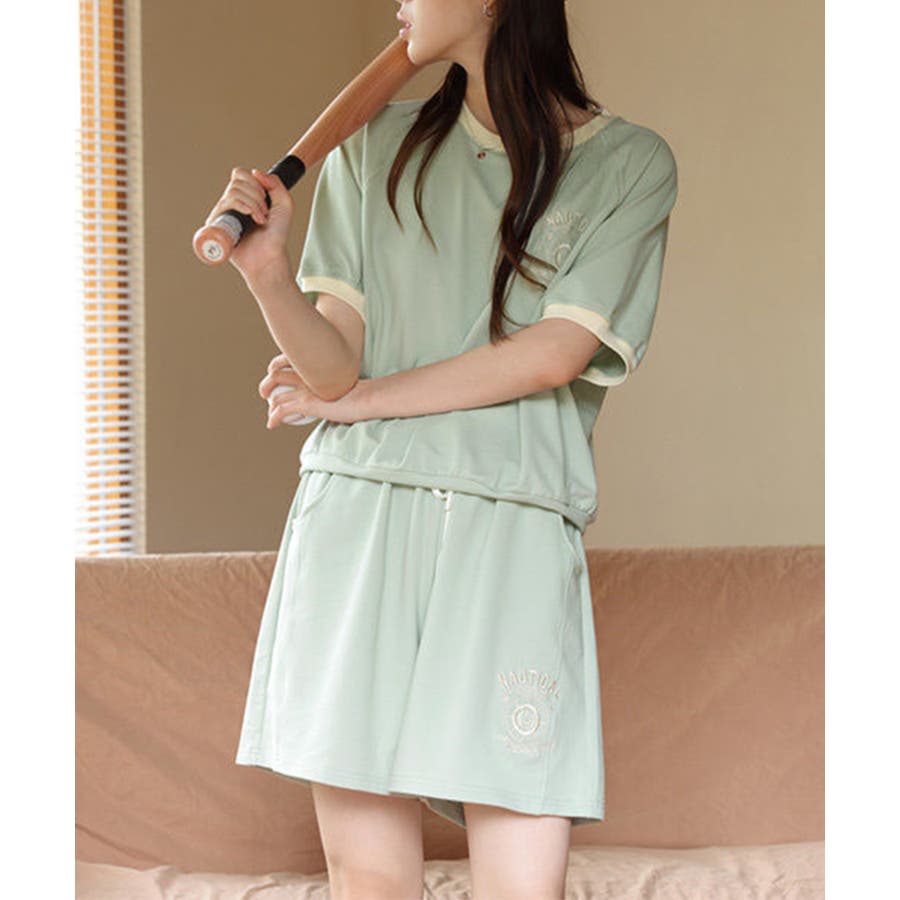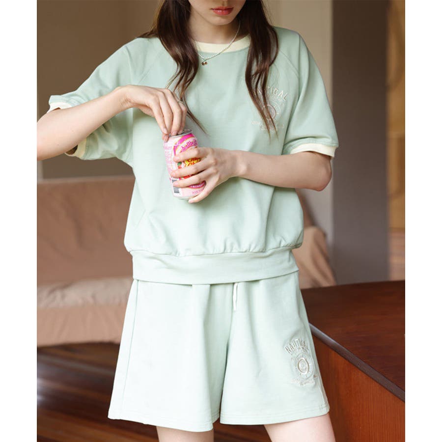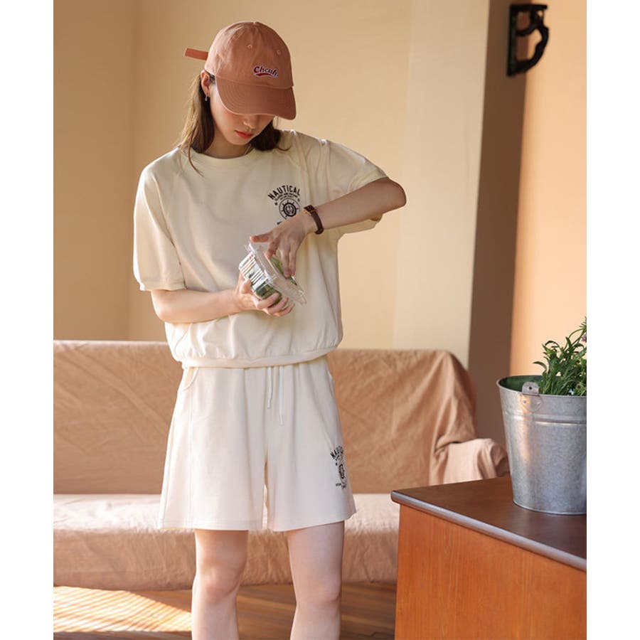 刺繍カットソーTシャツ+ショートパンツ セットアップ ルームウェア