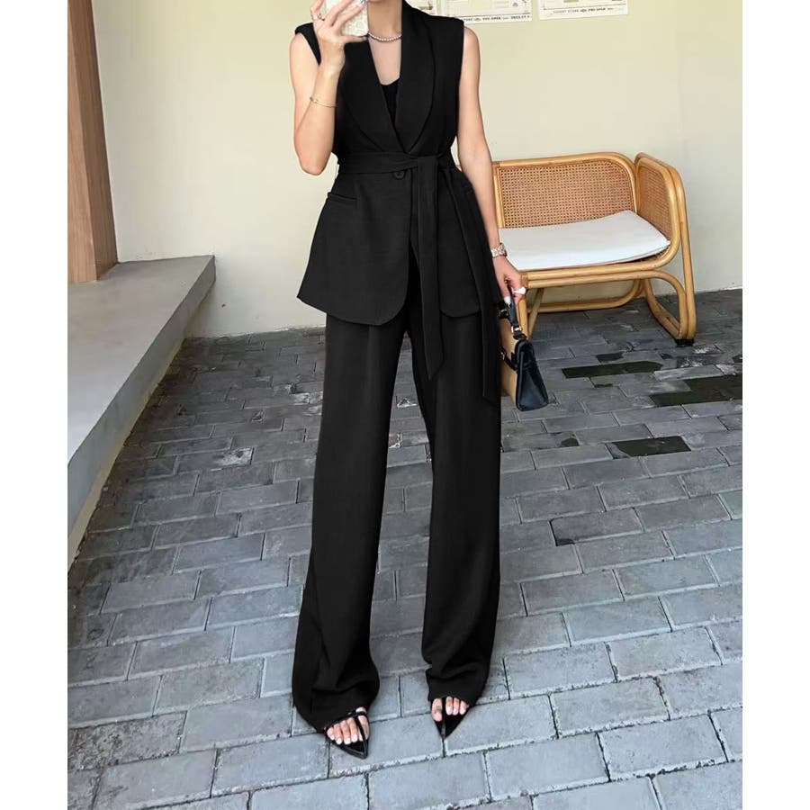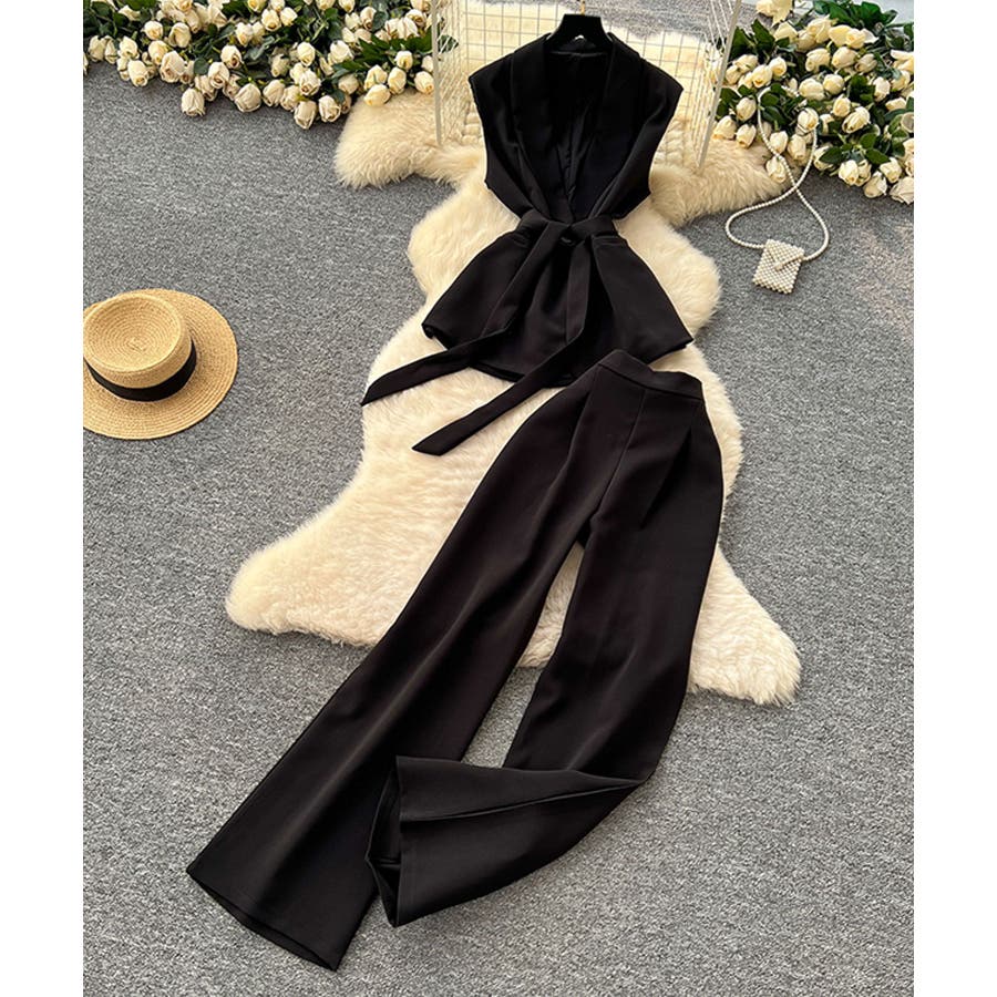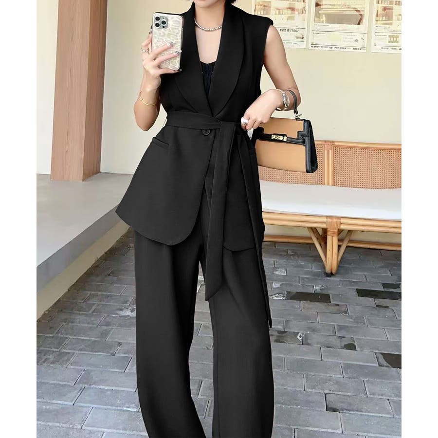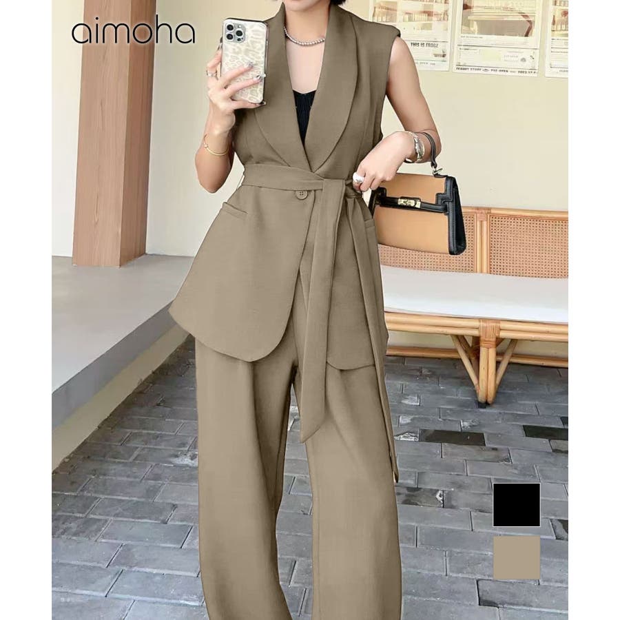 aimoha リボンタイベルトロングジレ+ワイドパンツセットアップ