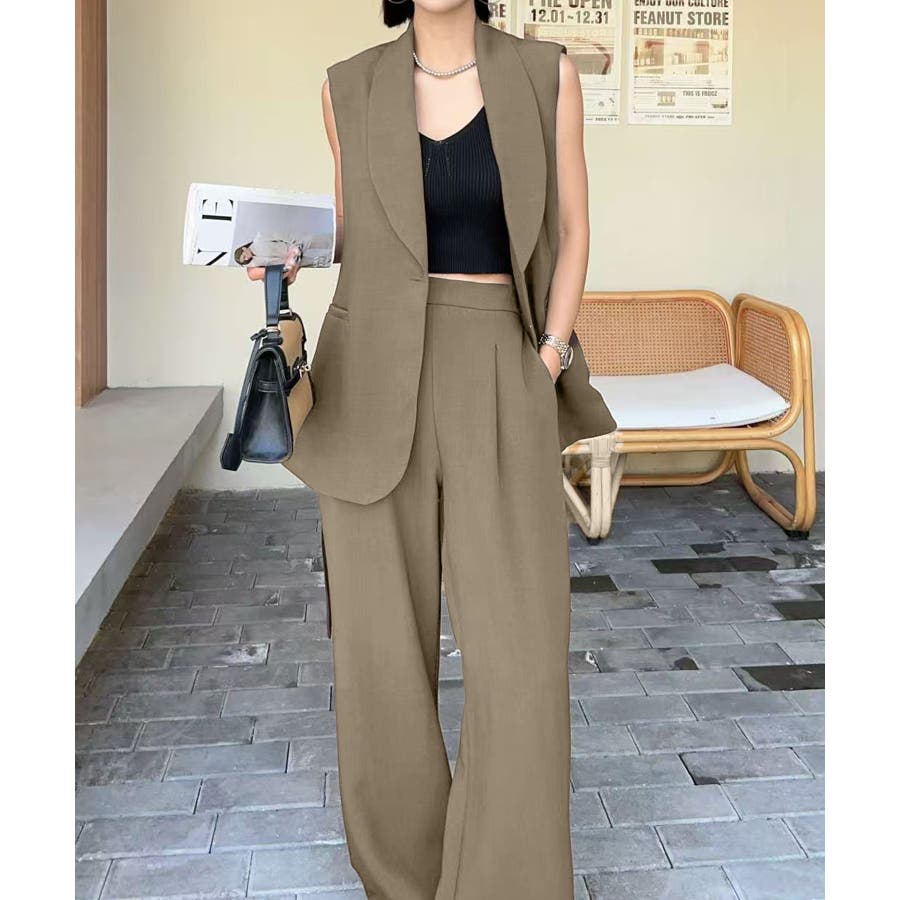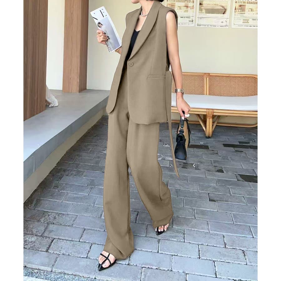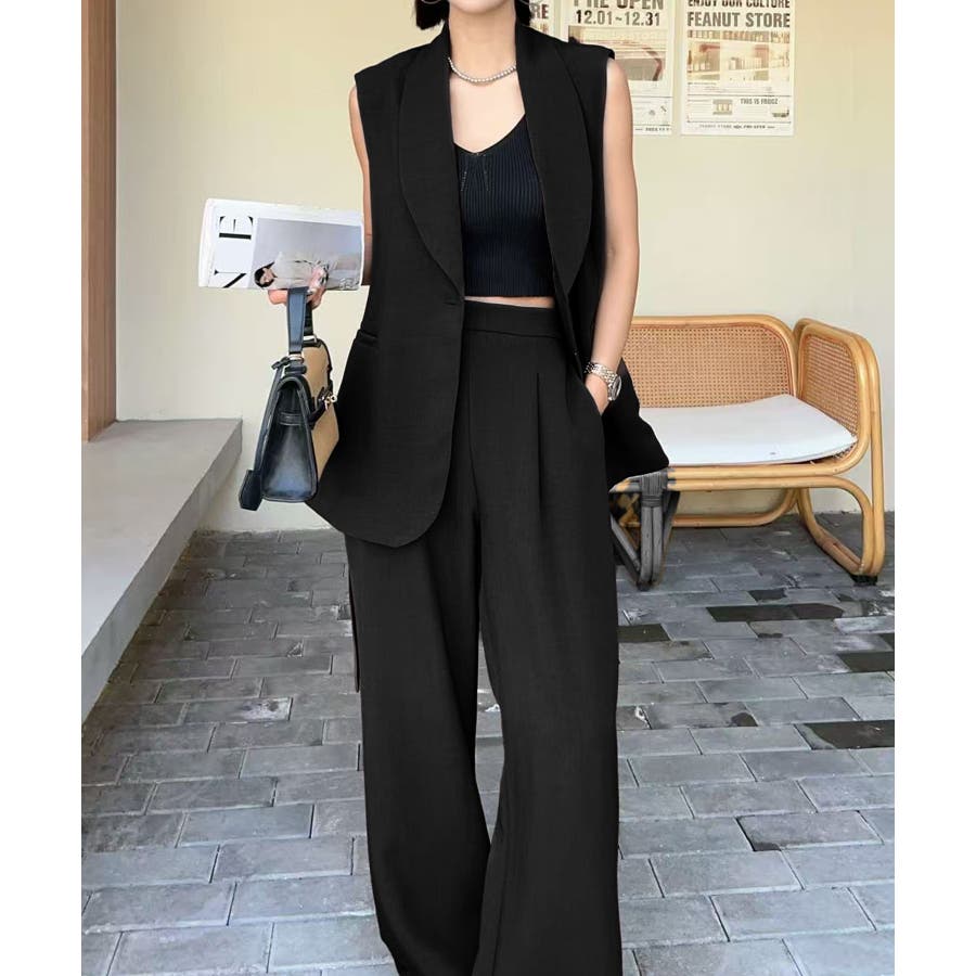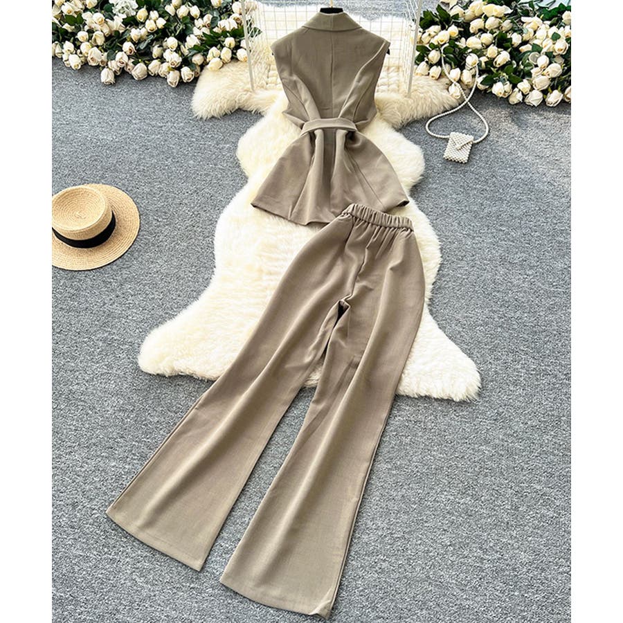 aimoha リボンタイベルトロングジレ+ワイドパンツセットアップ