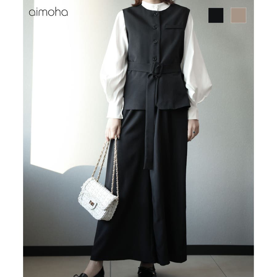 aimoha タイベルトジレ+ワイドパンツセットアップ