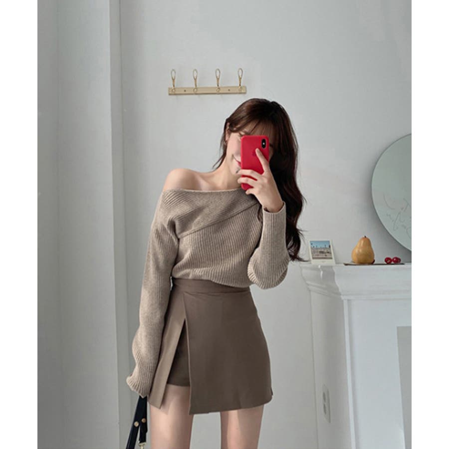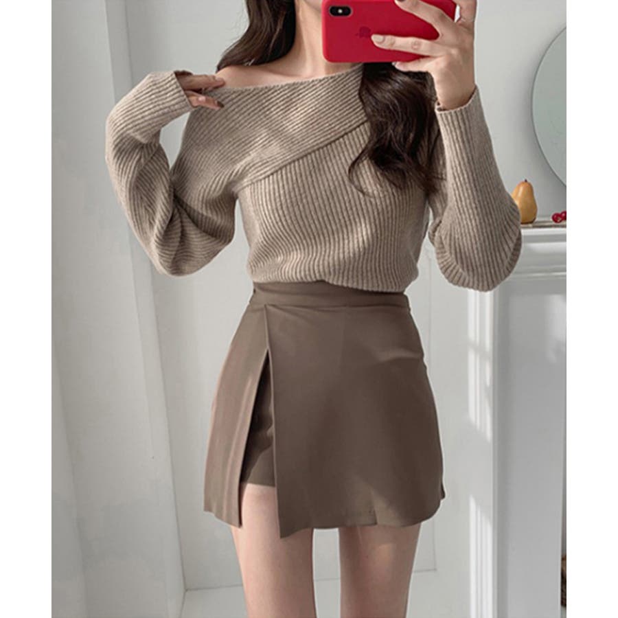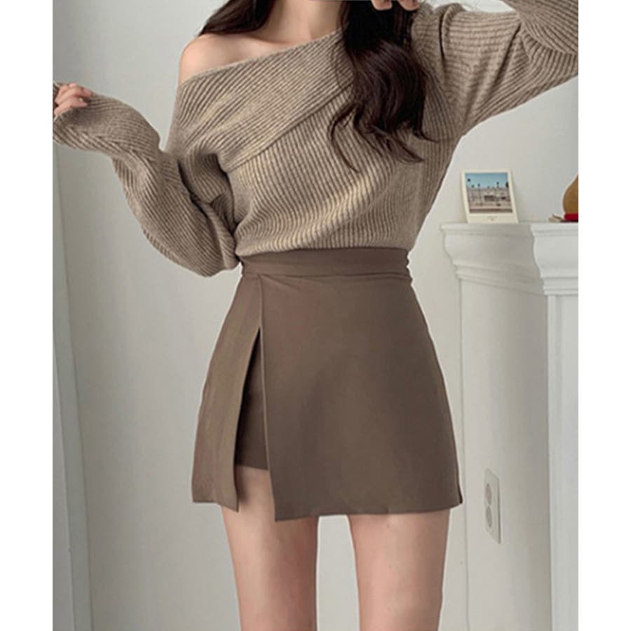 サイドスリットハイウエストミニスカート 韓国ファッション ワンピース