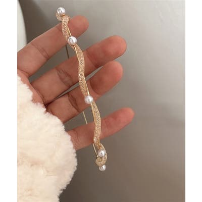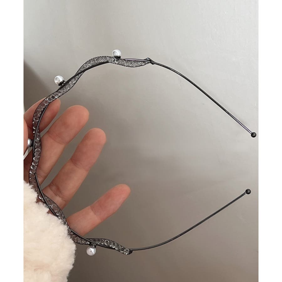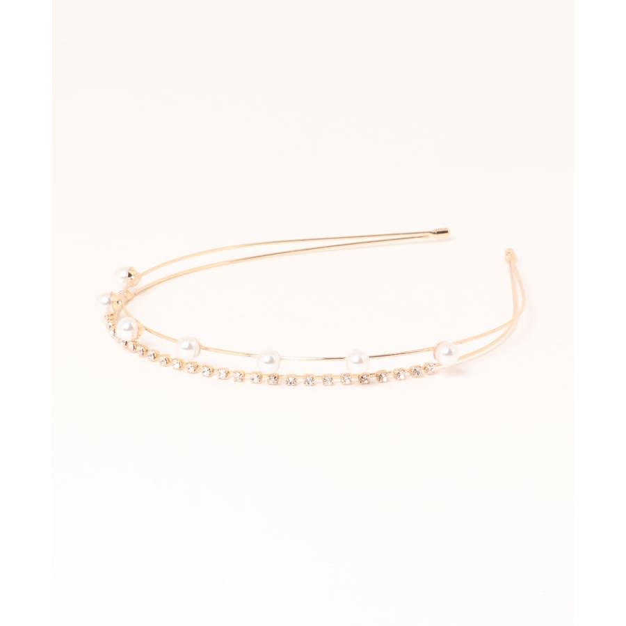 パールとゴールドの華奢カチューシャ 韓国ファッション ハイウエスト