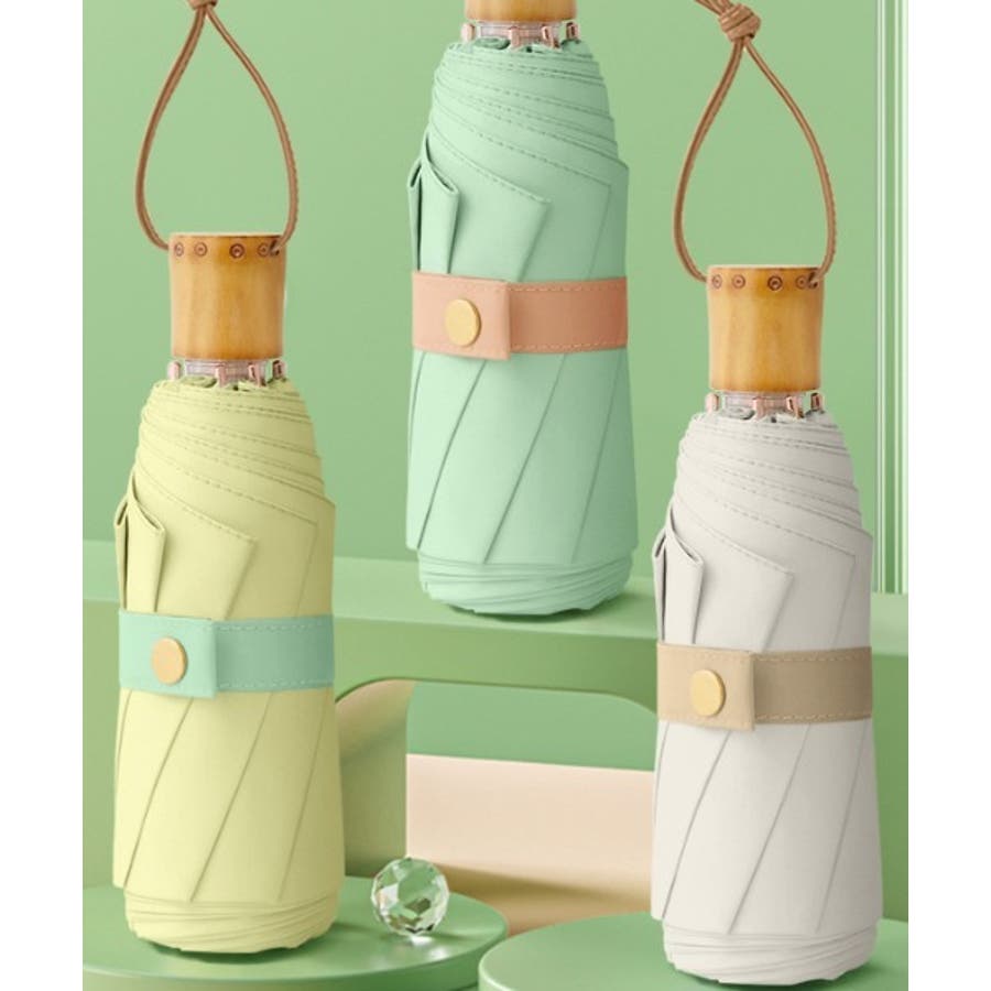 【晴雨兼用】UVカット ミニ 木製持ち手 マカロンカラー折り畳み傘