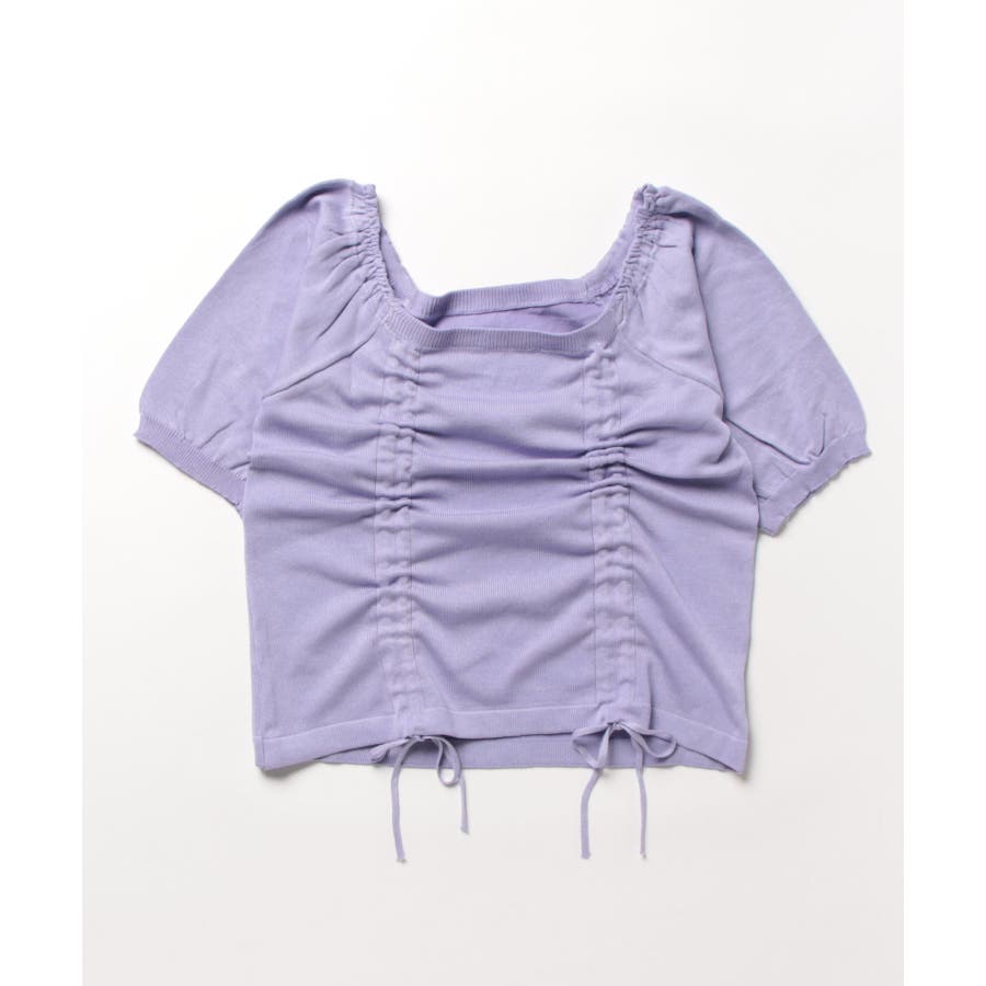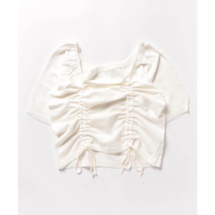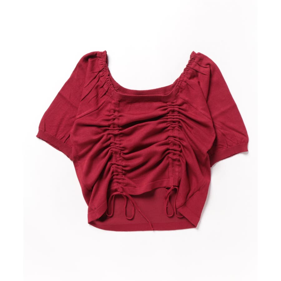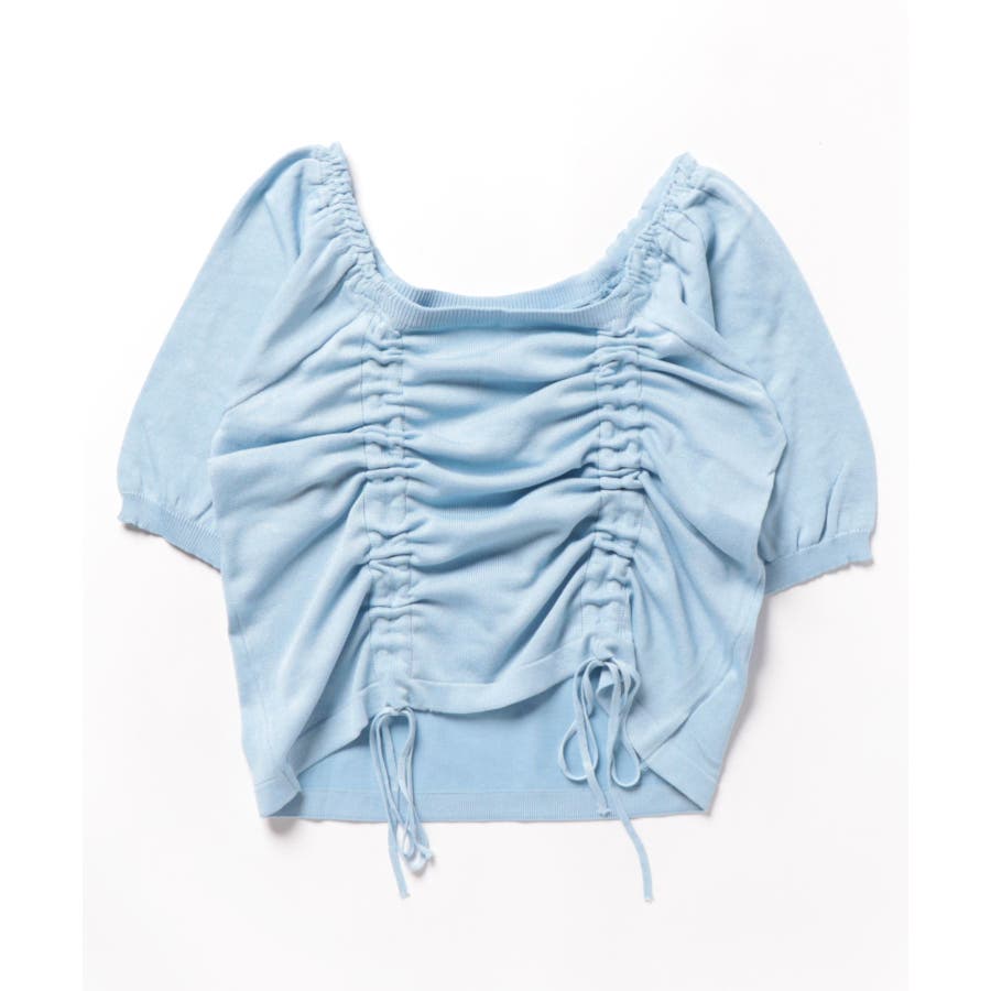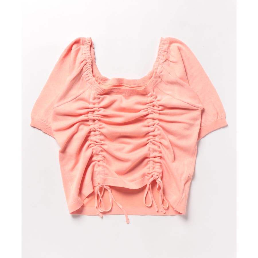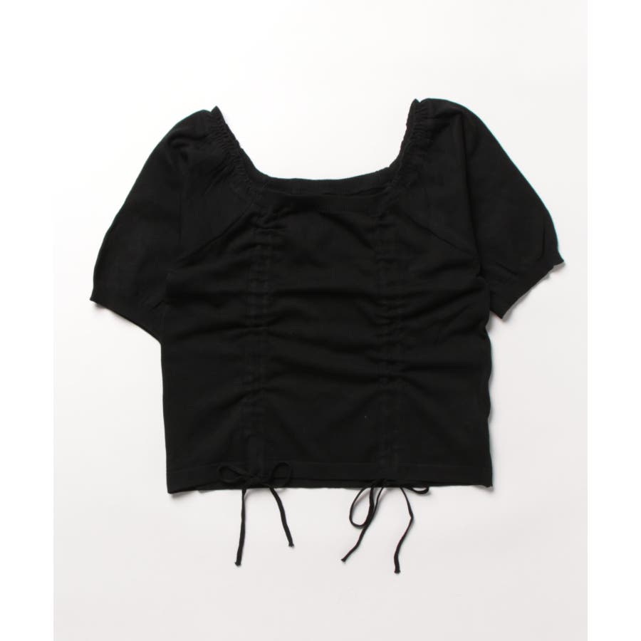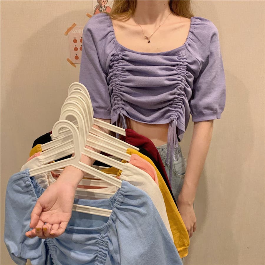 ギャザーストリングスカットソー 韓国ファッション ハイウエスト