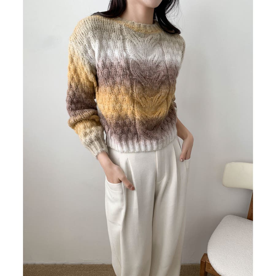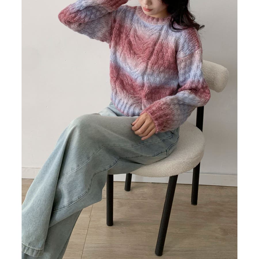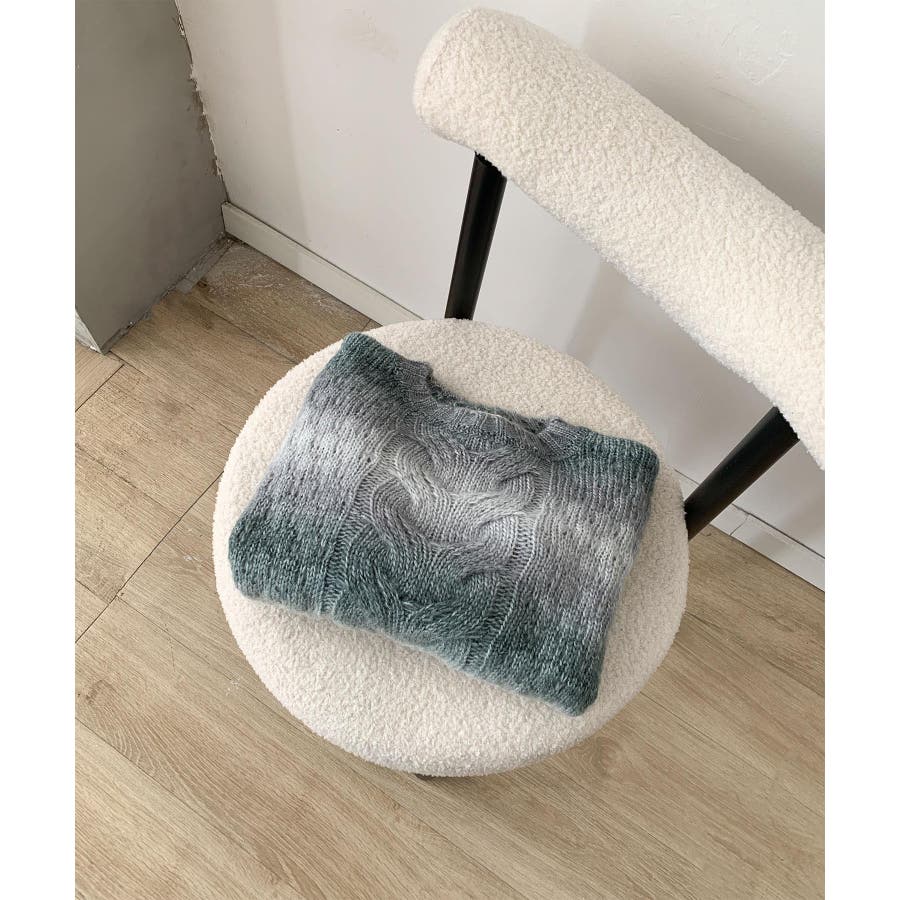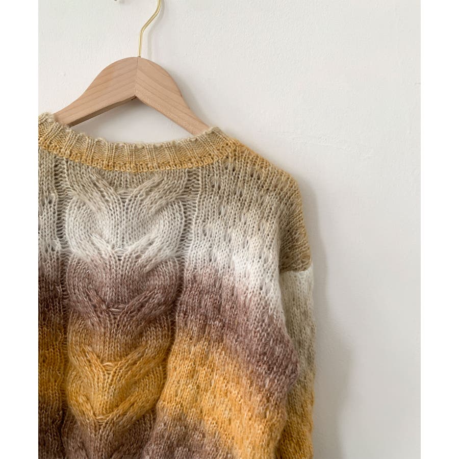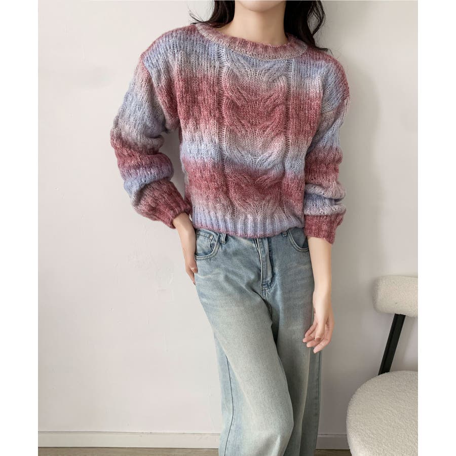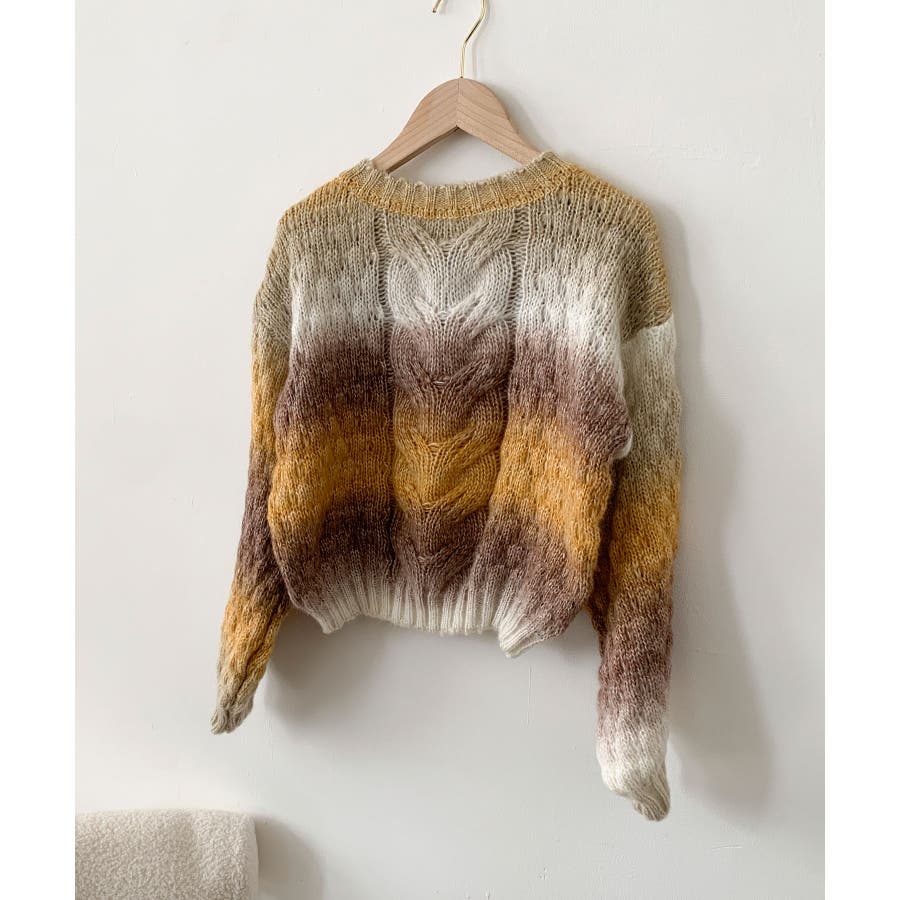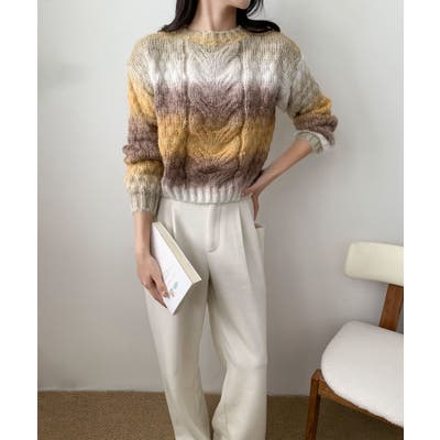グラデーションケーブル編みニットプルオーバー
