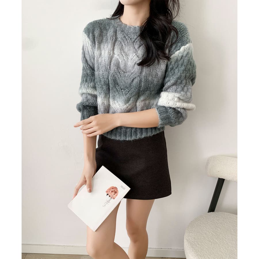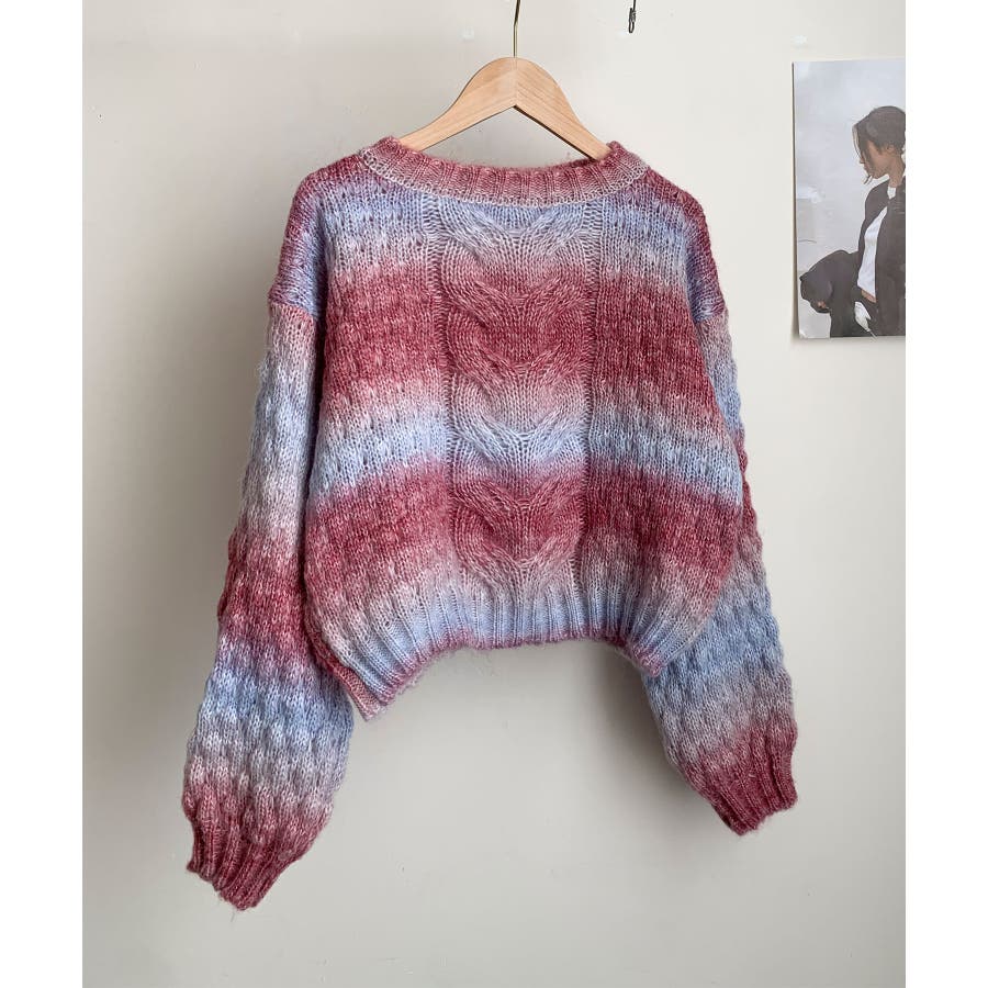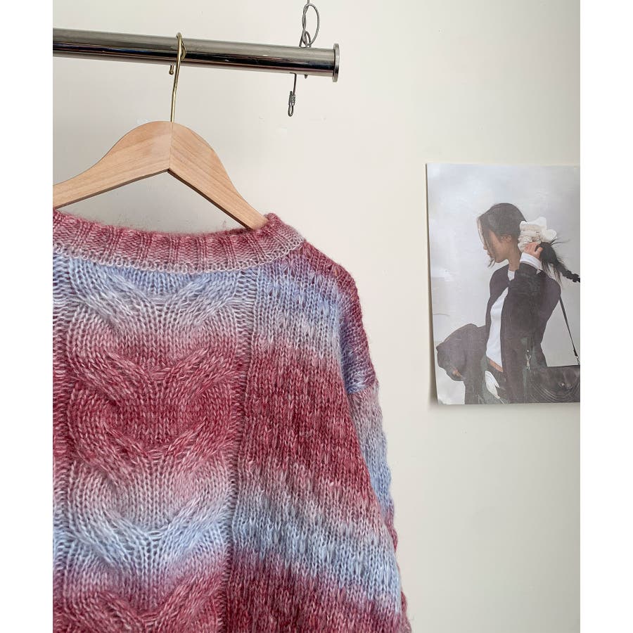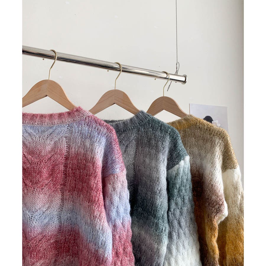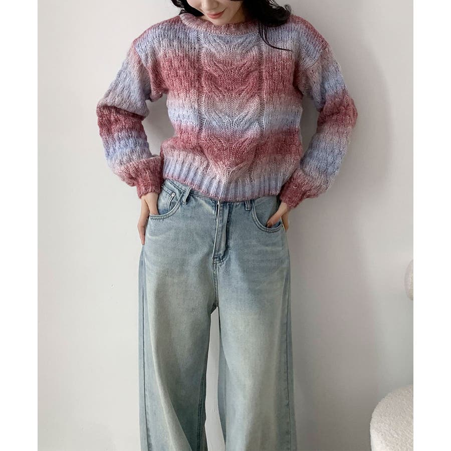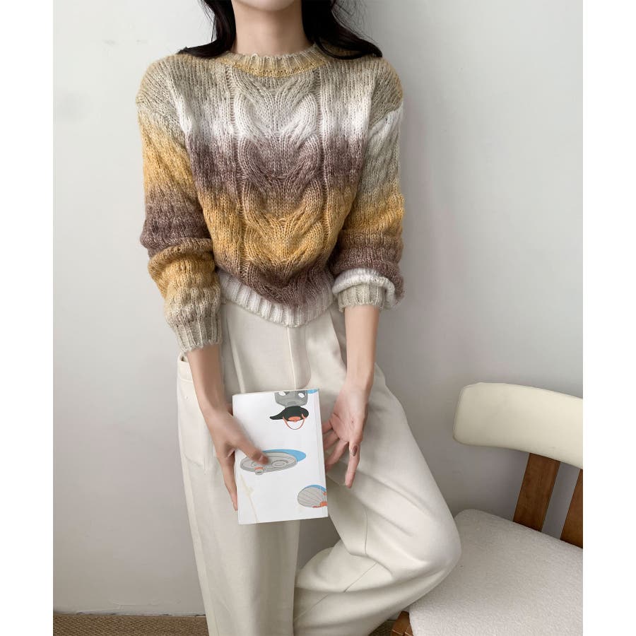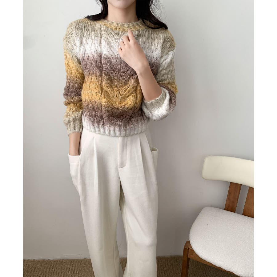 グラデーションケーブル編みニットプルオーバー