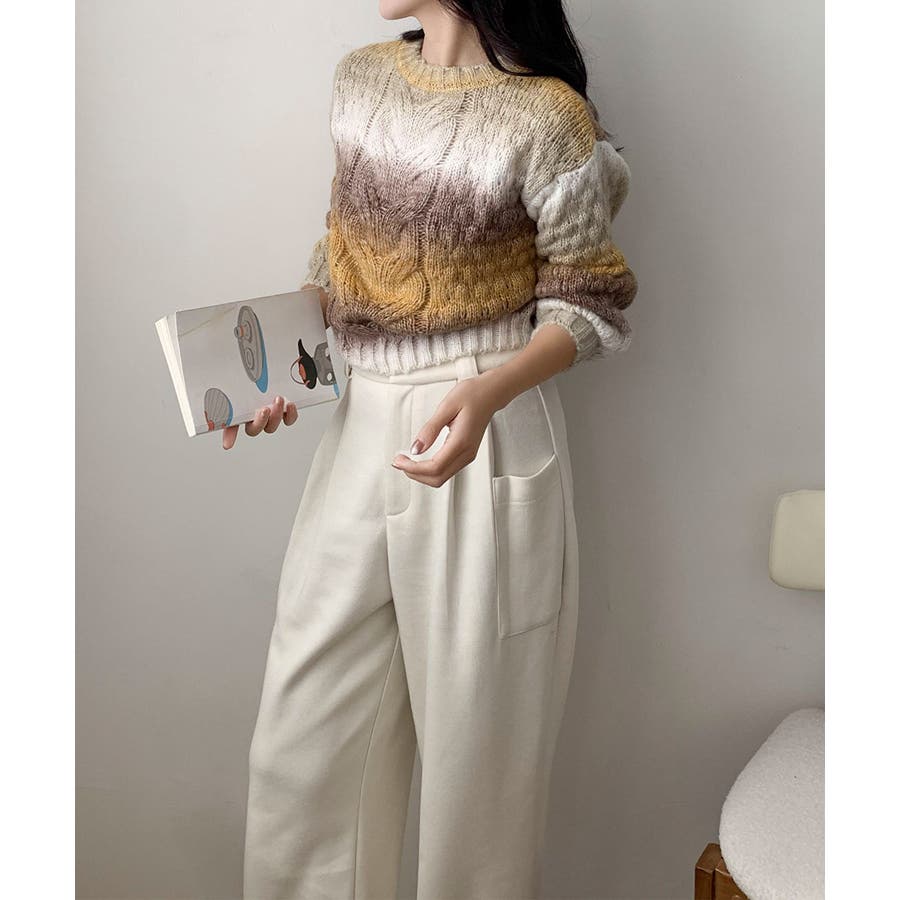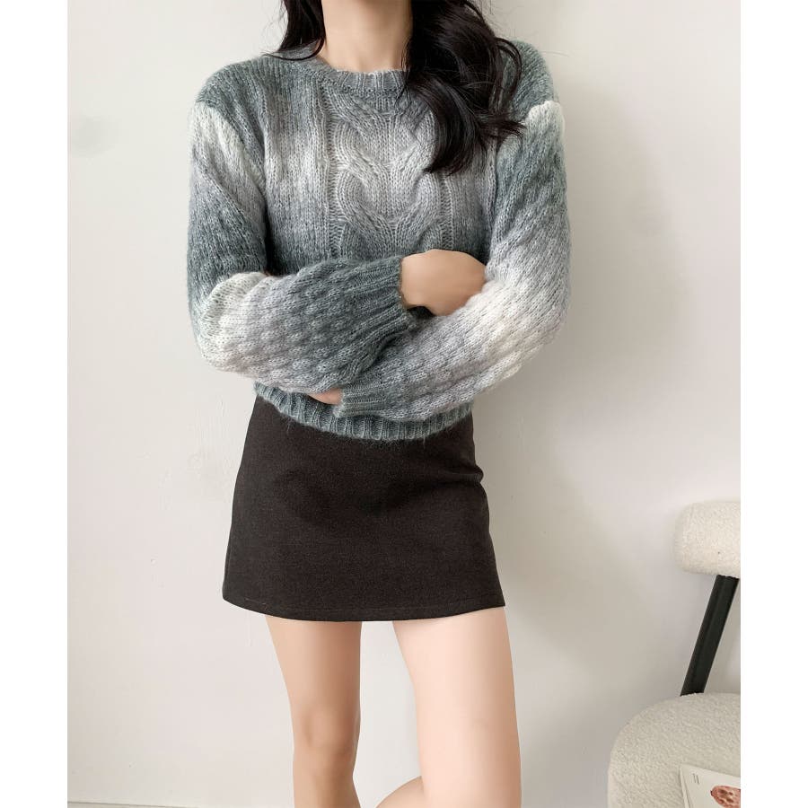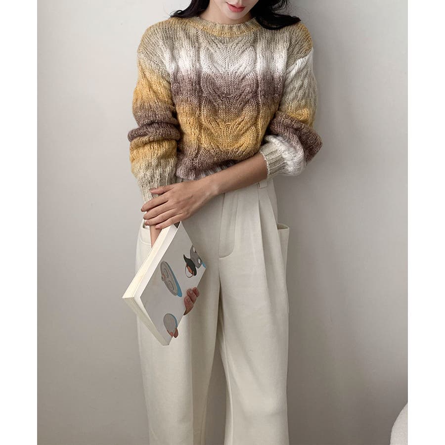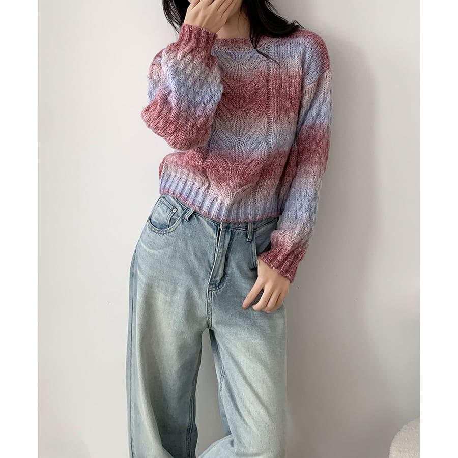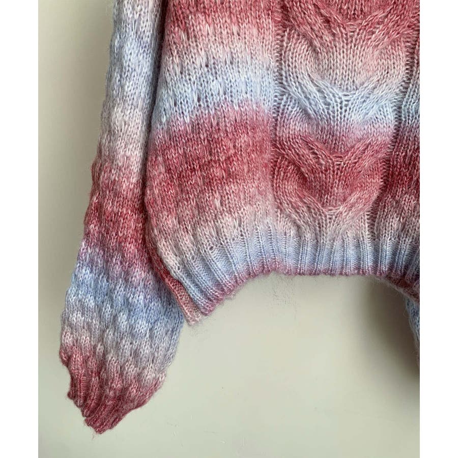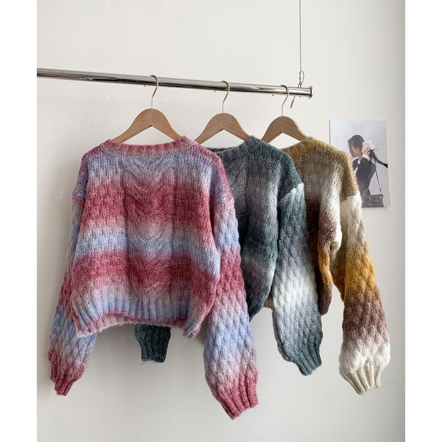 グラデーションケーブル編みニットプルオーバー