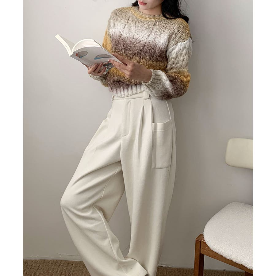 トレンドの“グラデーション×ケーブル編み”は、この冬の注目コンビ。
