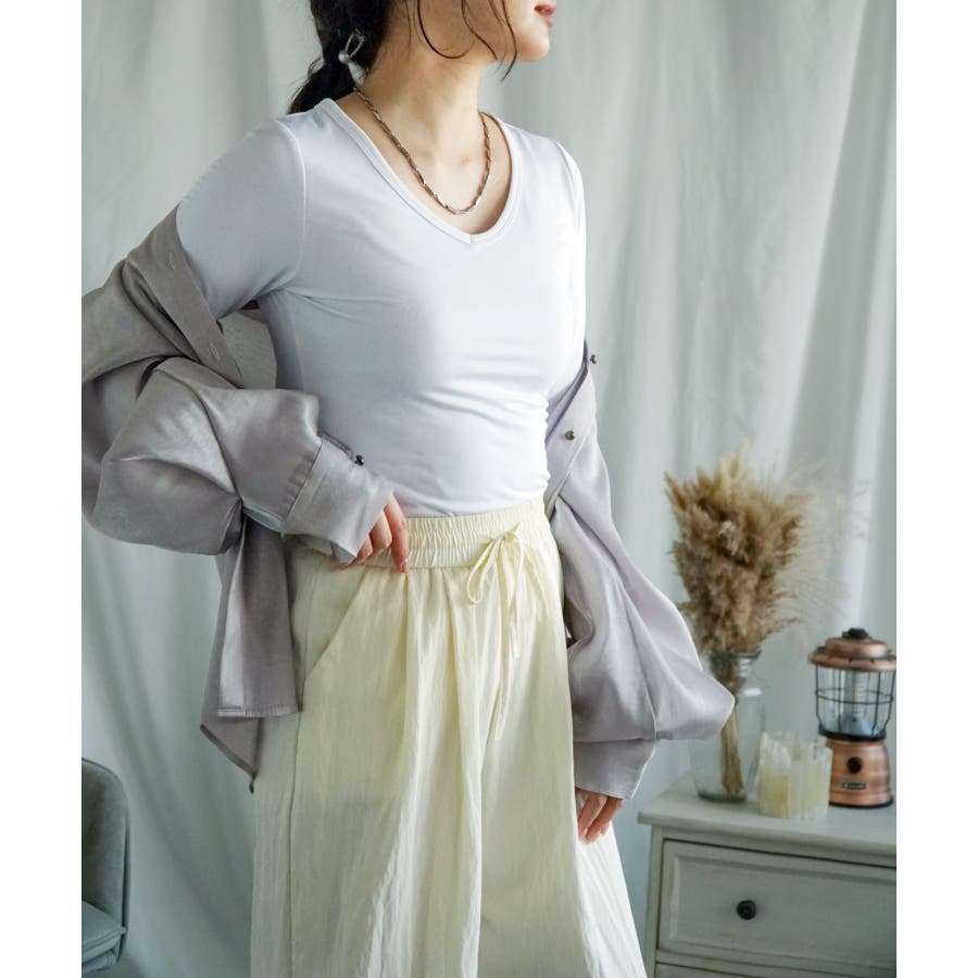 投稿日:2025.01.13肌触りがとても良くて、すごく伸びます。白は少し透けますが着心地良いです。Vネックを探していたので良かったです。