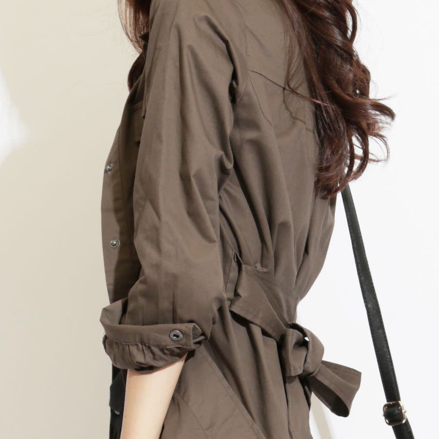 存在感のある大きな胸ポケットと肩のエポーレットがミリタリー感満載!付属のリボンベルトでブラウジングすれば細身に見えるので、カジュアルだけど女の子らしさも♪