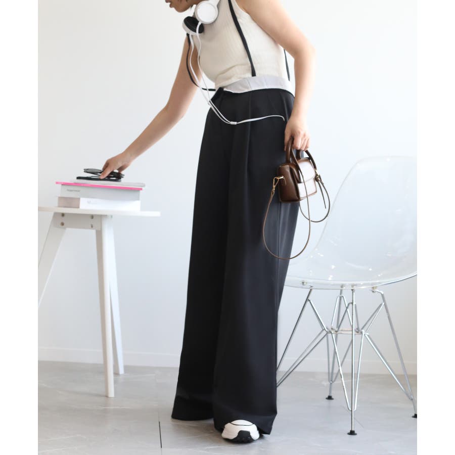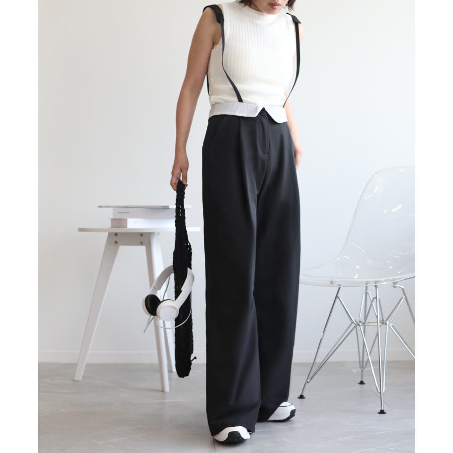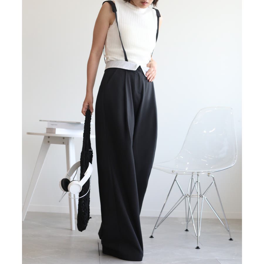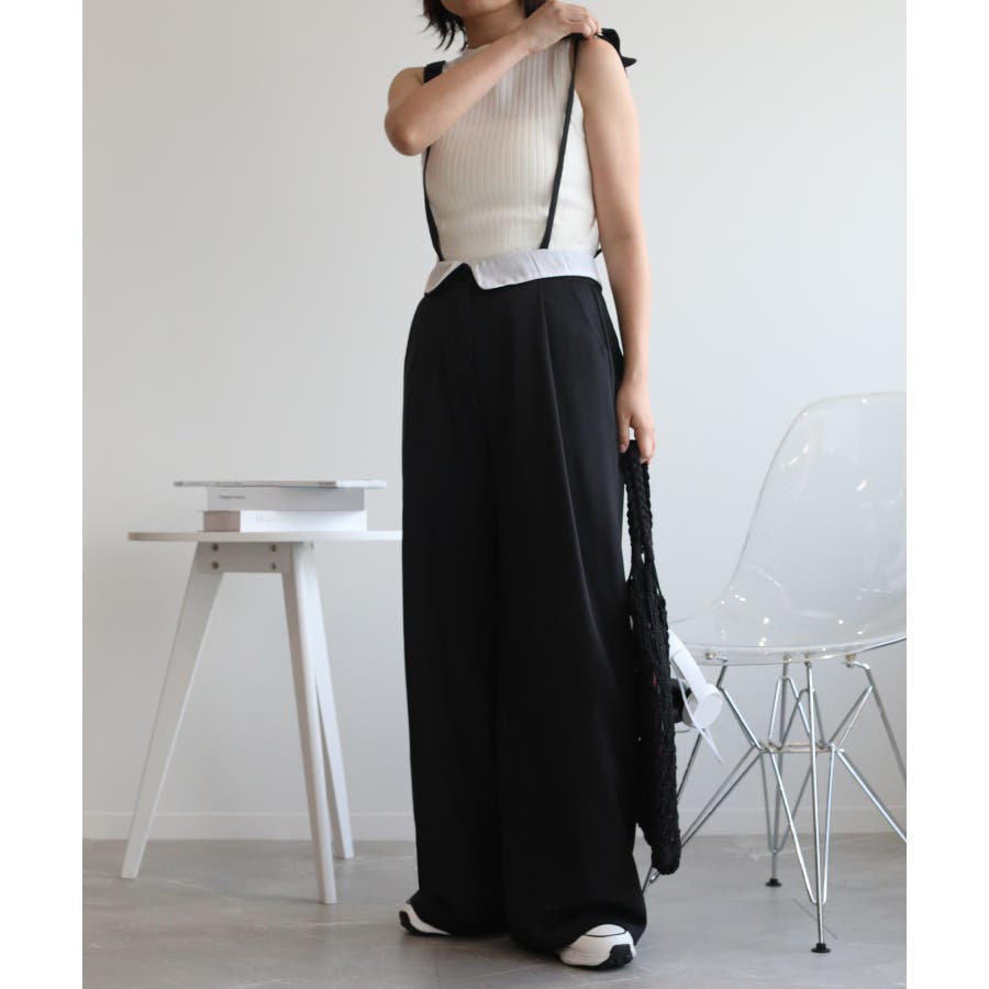 【aimohaオリジナル】3WAYサロペット タック入りワイドスラックス