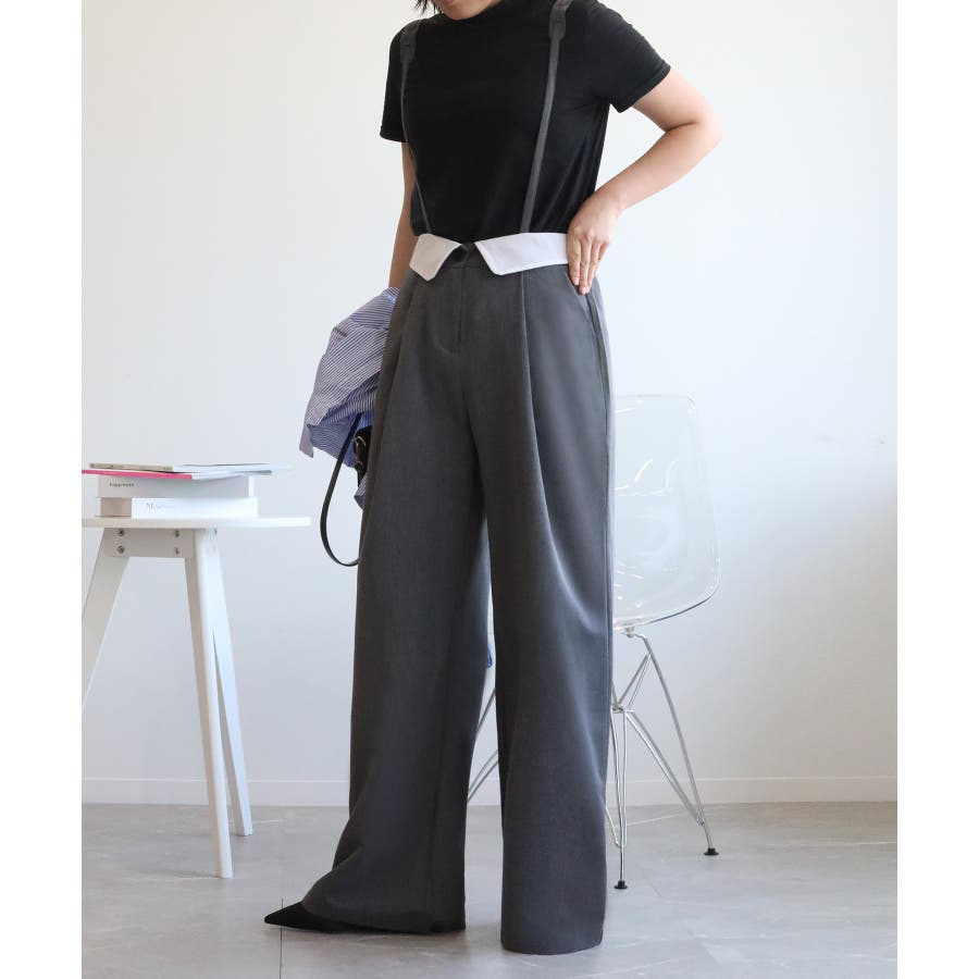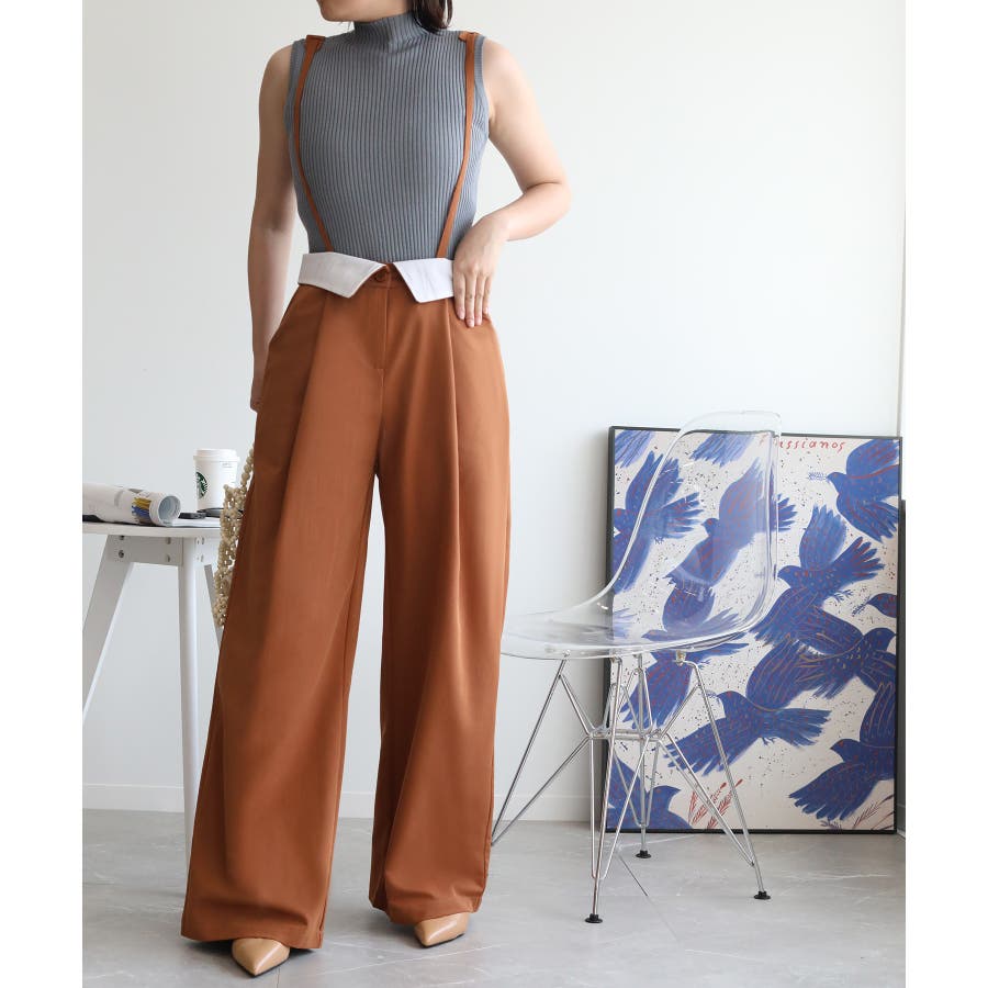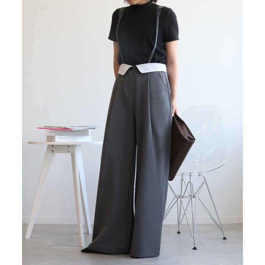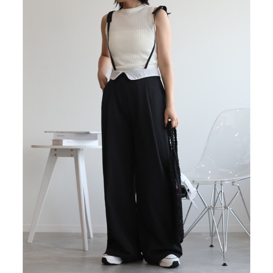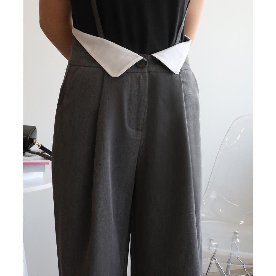 【aimohaオリジナル】3WAYサロペット タック入りワイドスラックス