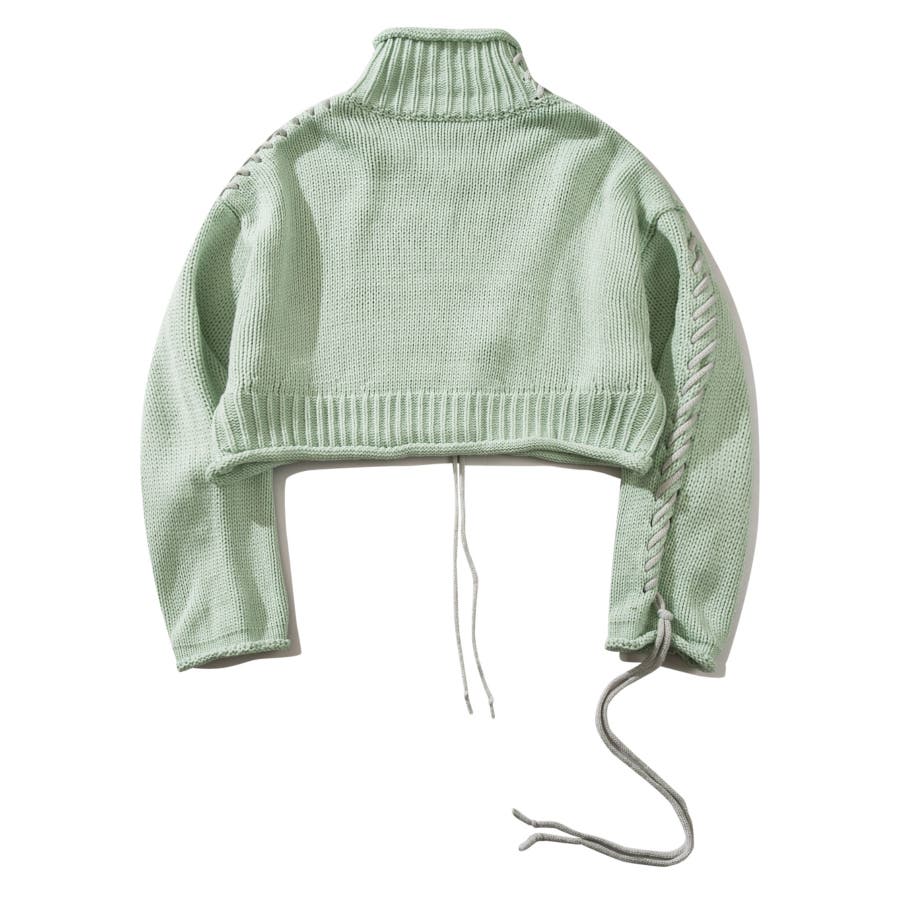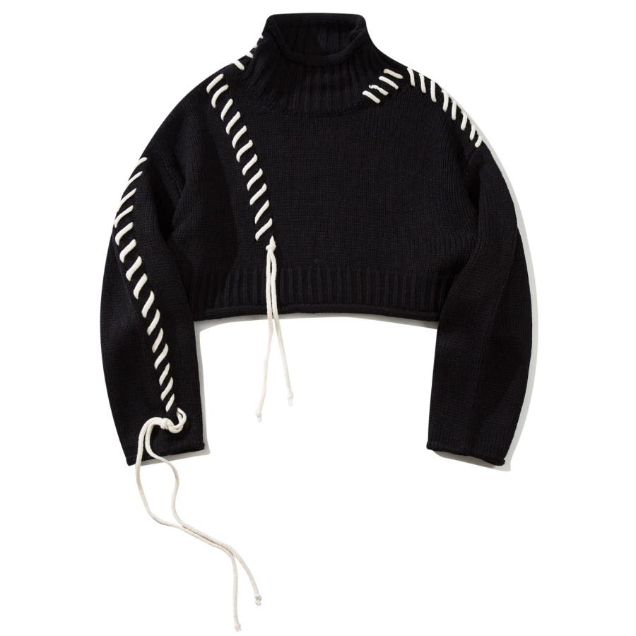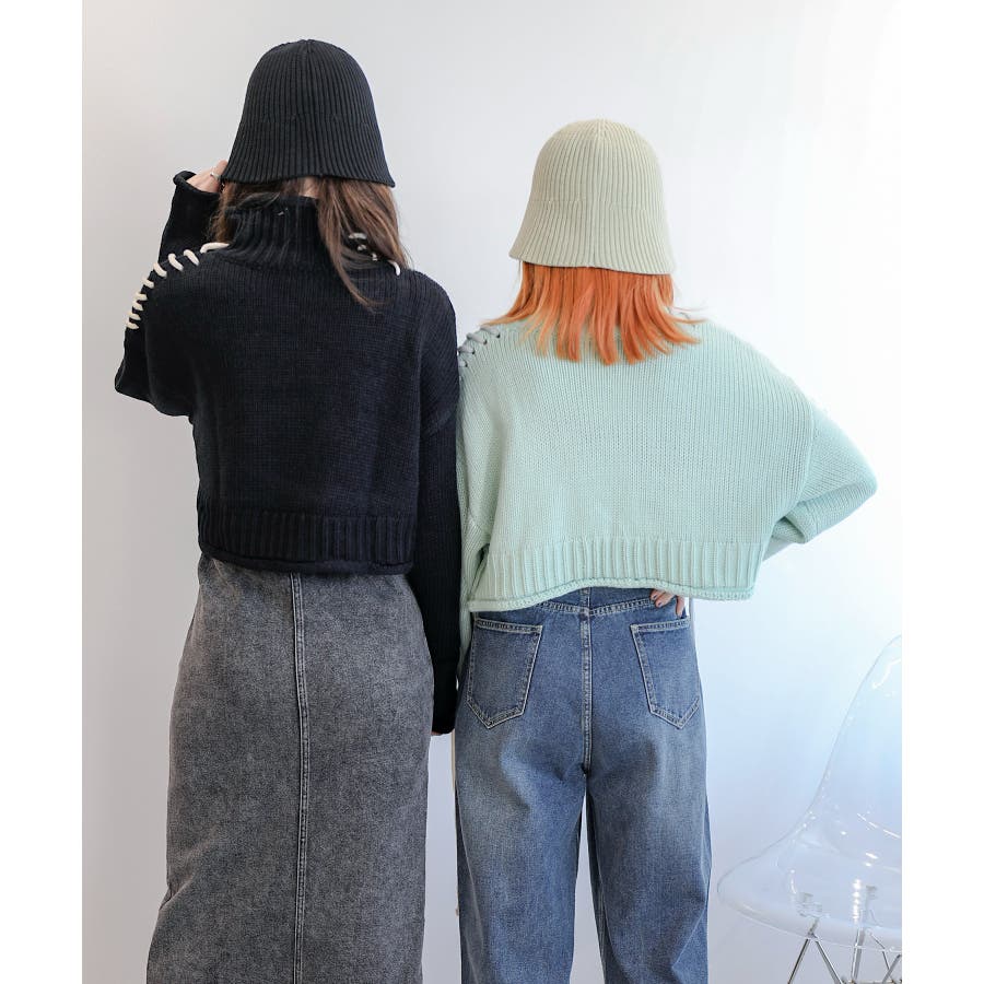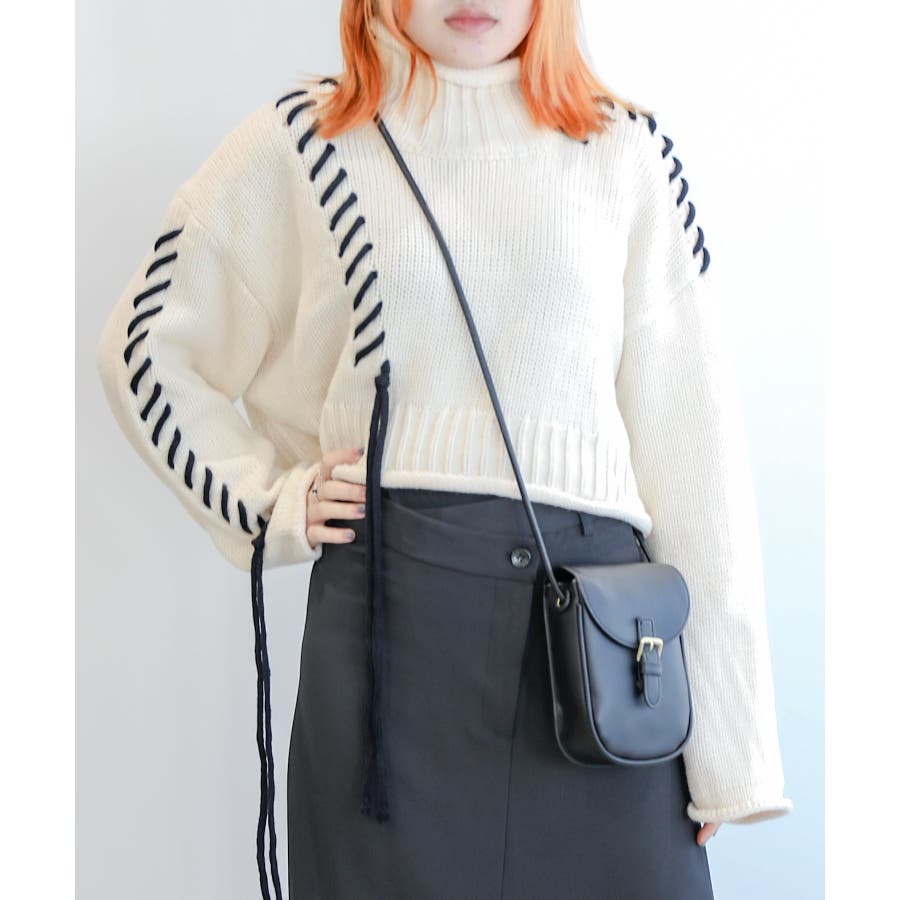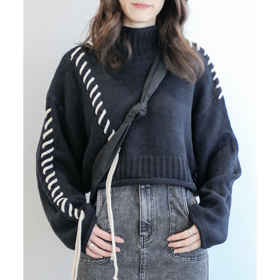 大きめのステッチがおしゃれなニットトップスの登場!!手縫いステッチがアクセントになっていて、紐の揺れ感もかわいいです!丈感はショート丈なので、ボトムスにインせずにスッキリ着ていただけます。ゆったりとしたサイズ感にキレイなボリューム感が出て、コーディネートのワンポイントになります。温かみのあるデザインなので、ボトムスもチノパンやシンプルなスカートなどと合わせるとコーディネートがまとまります。