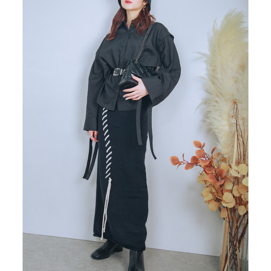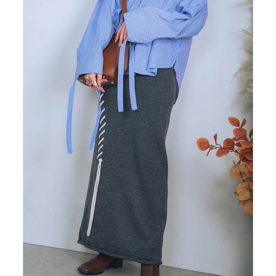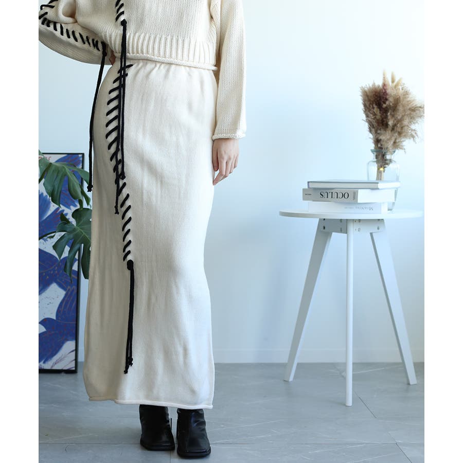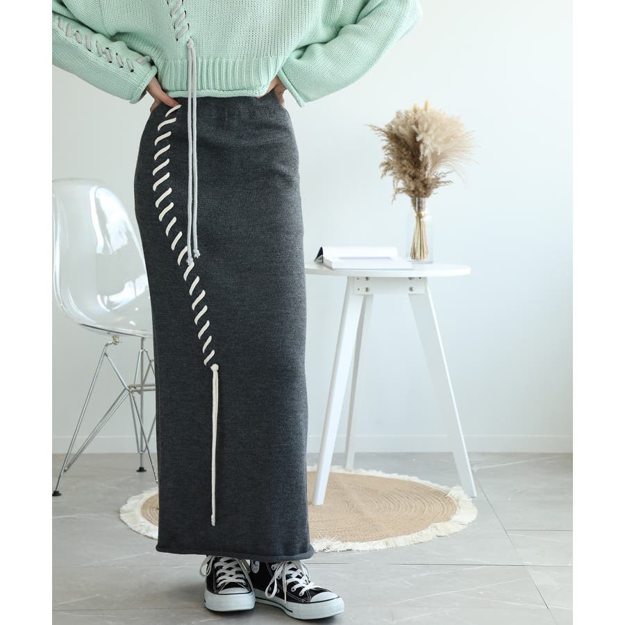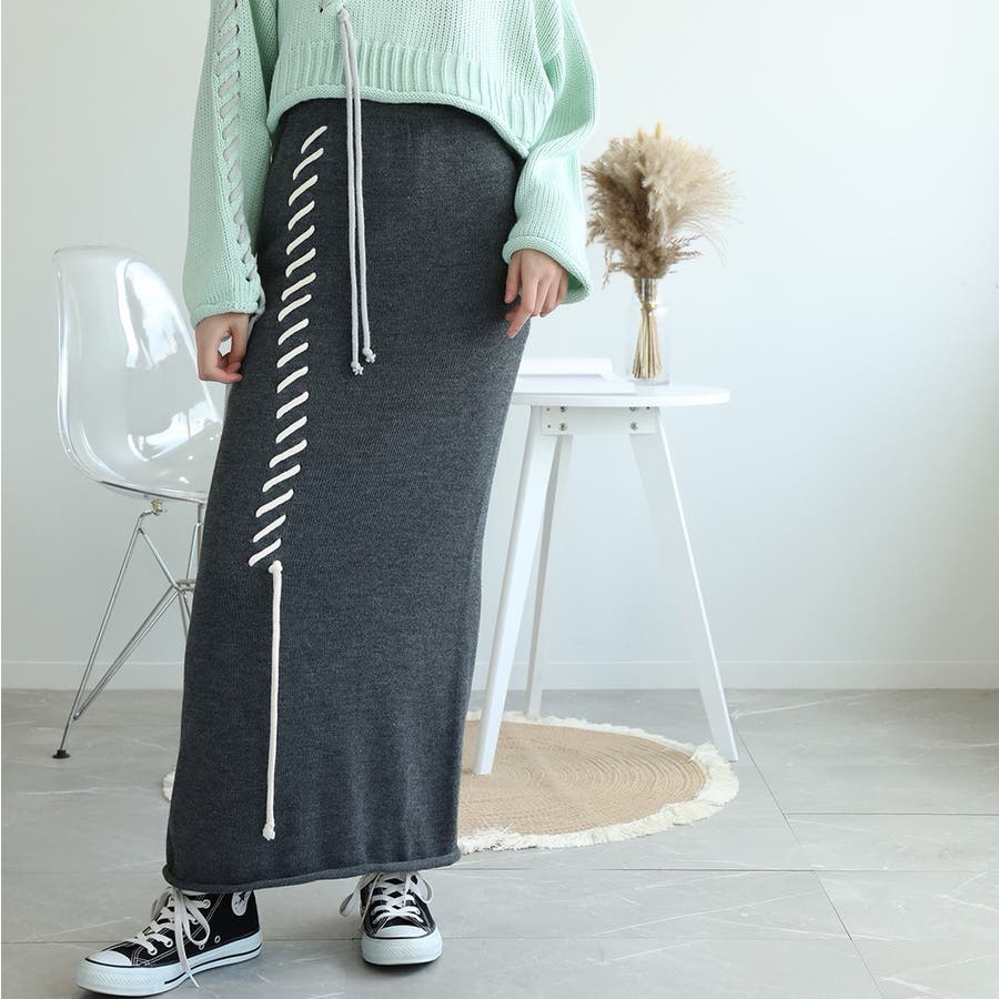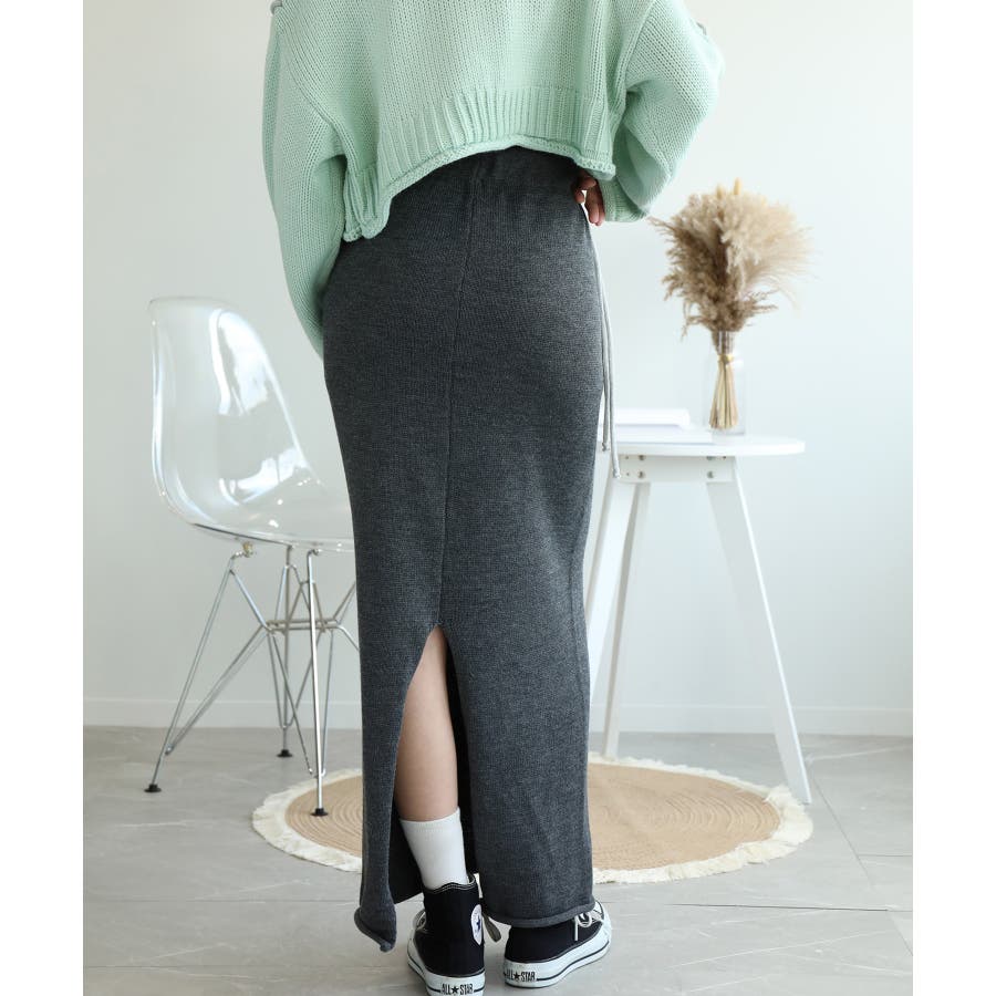 aimohaオリジナルステッチデザインの入ったハイウエストニットスカートの登場です!肌触りが良いストレートラインのニットスカート。上はオーバーサイズのセーターやスウェット、シャツなどと合わせてもいいですし、ハイウエストなのでタイトなカットソーなどをインして着てもかわいいです!大きな手編みステッチがラインで入っているので脚のラインを綺麗に見せ、脚長効果も期待できます。デザインのあるスカートなのでシンプルなトップスを合わせるだけでも簡単にコーディネートが決まります。後ろにはスリットが入っているので歩きやすい!裾がロールされているのでカジュアルな印象ですが、綺麗めシルエットなのでブーツやパンプスなどと合わせてもかわいいので秋冬のコーディネートに大活躍の予感!
