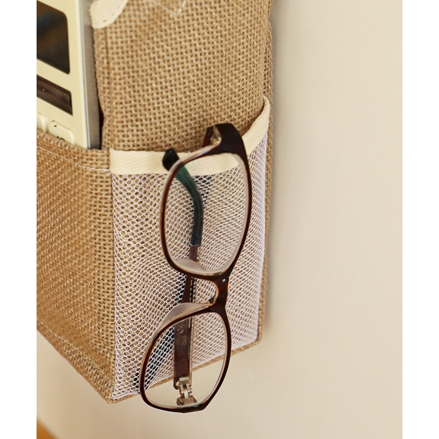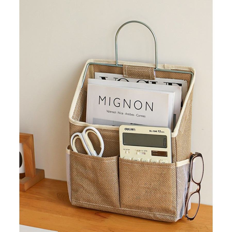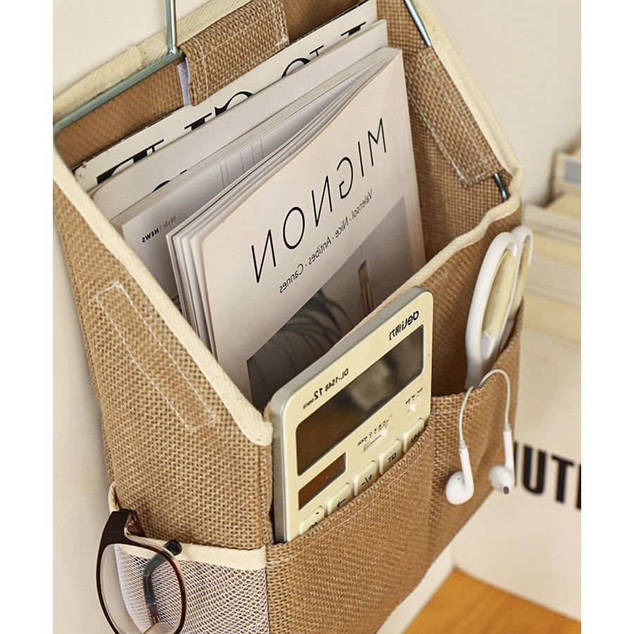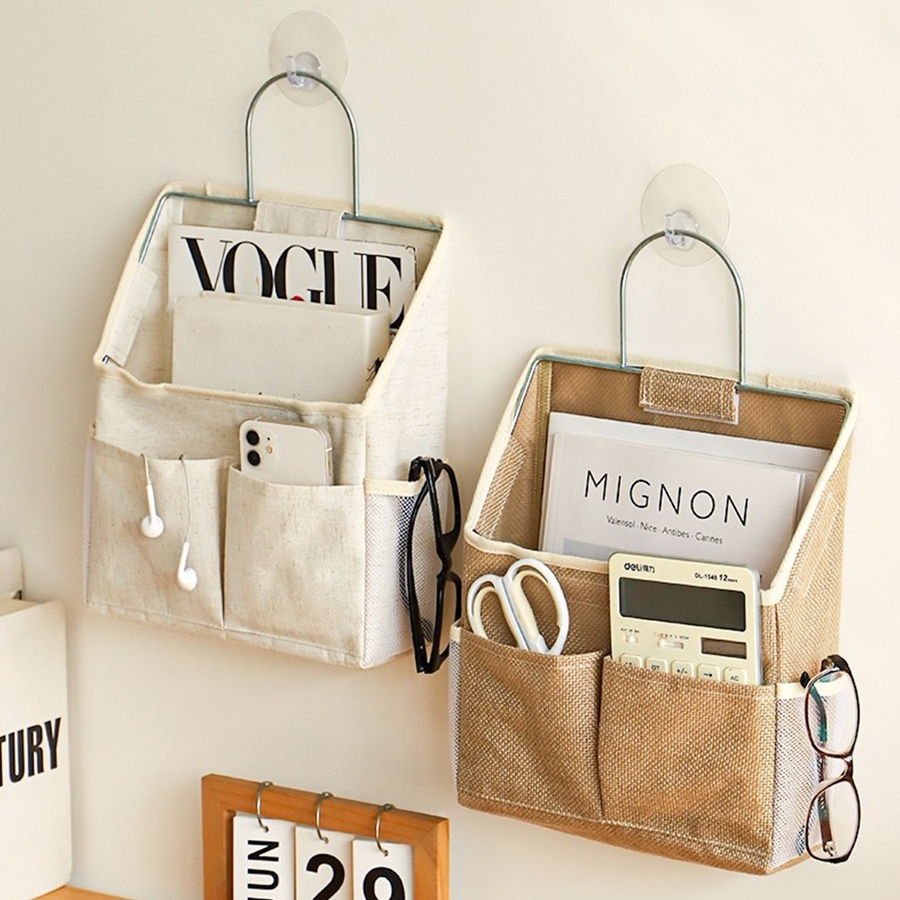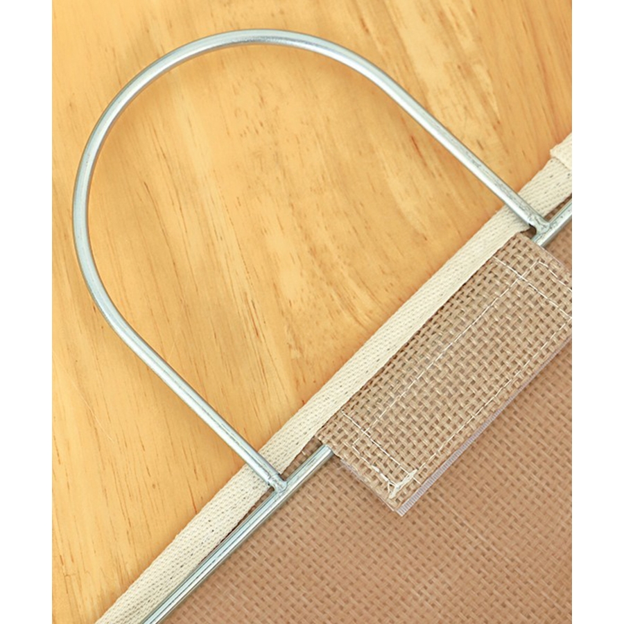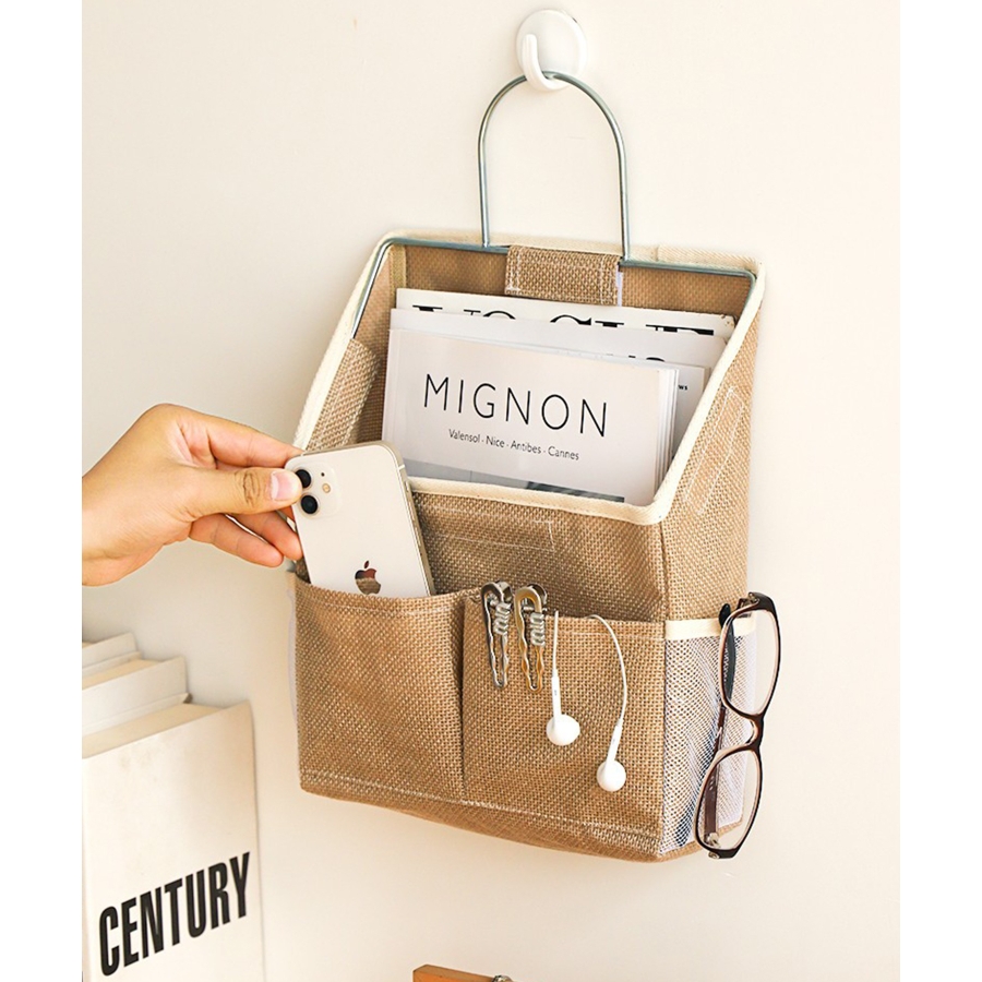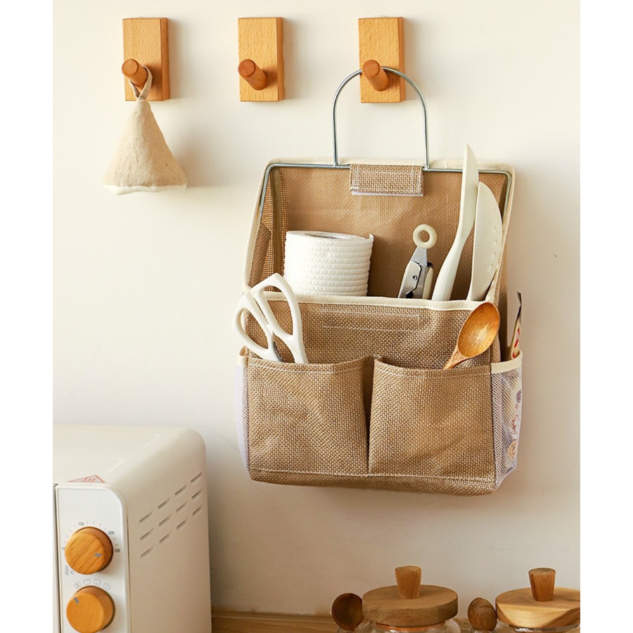 壁やラックなどにかけて使用できる収納グッズです。収納口にワイヤーが入っているので型崩れせず、取り出しやすい◎大きな収納部分に加え、ポケットとサイドにメッシュポケットが付いているのでしっかり収納できます。ワイヤーは強力なマジックテープで固定されているので取り外しができ、本体は撥水加工が施されているのでお手入れも簡単です。デスク周りで使用する時は、大きな収納部分には本やメモ帳などを収納して、外側のポケットには文具を収納するとデスクまわりをスッキリでき、取り出しやすいので便利!クローゼットや玄関などで使用する場合、服用ブラシや消臭スプレーなどケア用品を入れておくと、お洋服のケアが楽になりオススメです。また、キッチンではキッチンペーパーなどのストック用でもお使いいただけ、調理用品をポケットに収納すれば取り出しやすいです。様々な場所で活用できるので1つあると便利です!