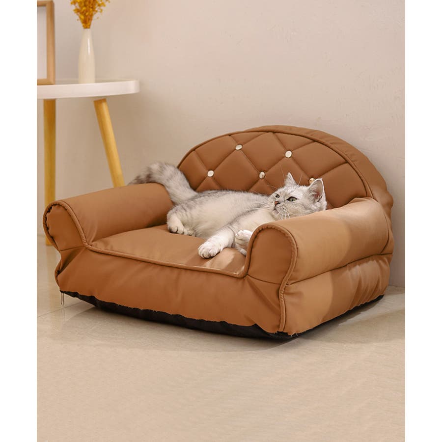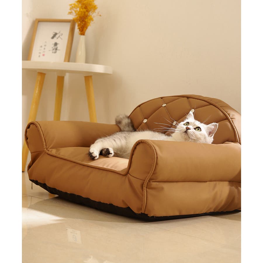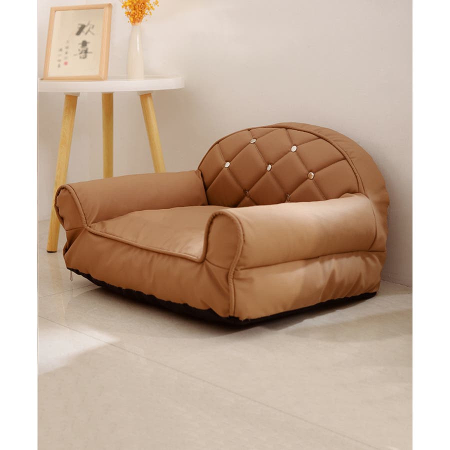 ラグジュアリー感あふれるPUソファー型ペットソファー破壊し難い合皮素材なので丈夫で長持ち防水性があり、ペットが粗相をしても簡単にお手入れできます。中身を取り出して洗えるので清潔を保てます少し高さのあるソファー型で高級感のあるデザイン3方向囲まれていてペットに安心感を与えます落ち着く色味が家のインテリアともマッチするペットソファーです