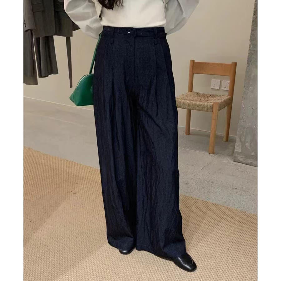 ベルト付きワイドパンツ