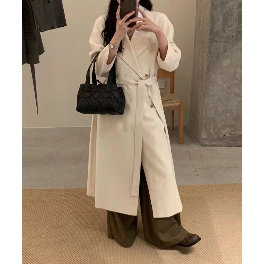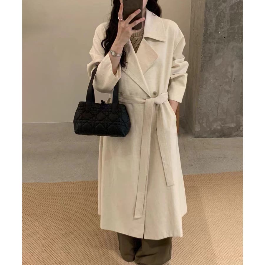 【Banico】リネンブレンドロングトレンチコート